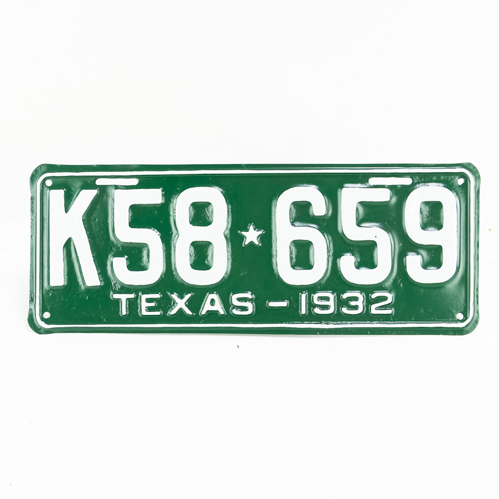 Texas. 1932 repaint on pitted plate. Poor to fair condition, but presents well. See pics.