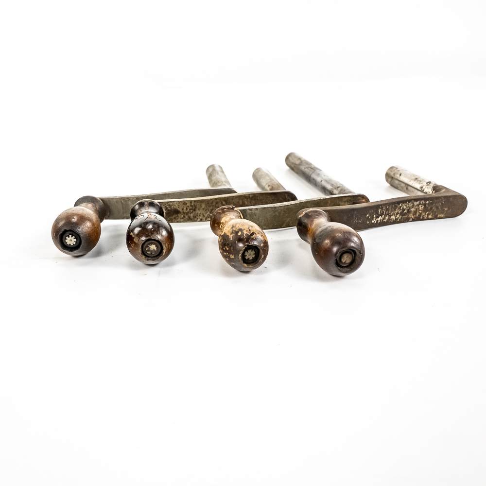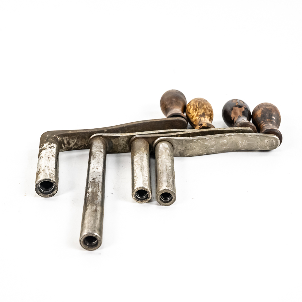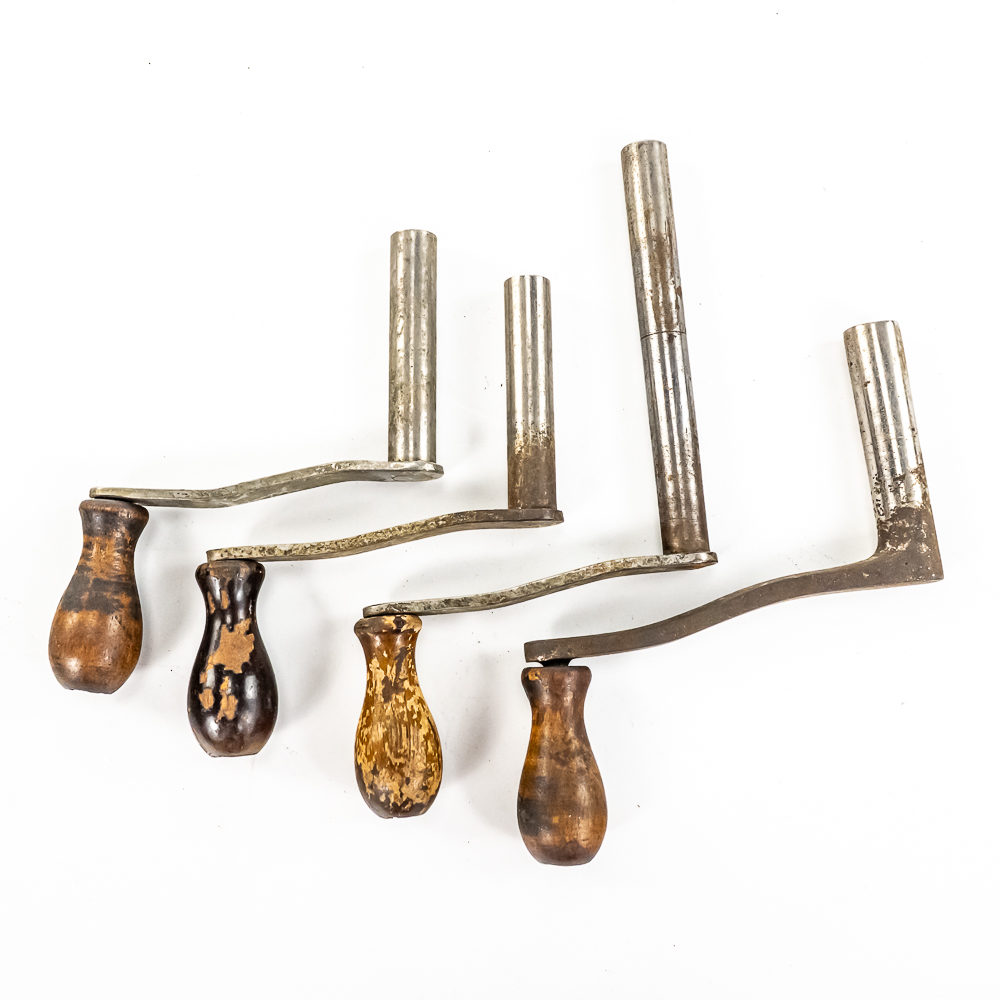 This lot consists of 4 original threaded Edison cylinder phonograph cranks, three are steel and one is cast iron. All in as found condition with the usual wear and some rust. A useful lot.