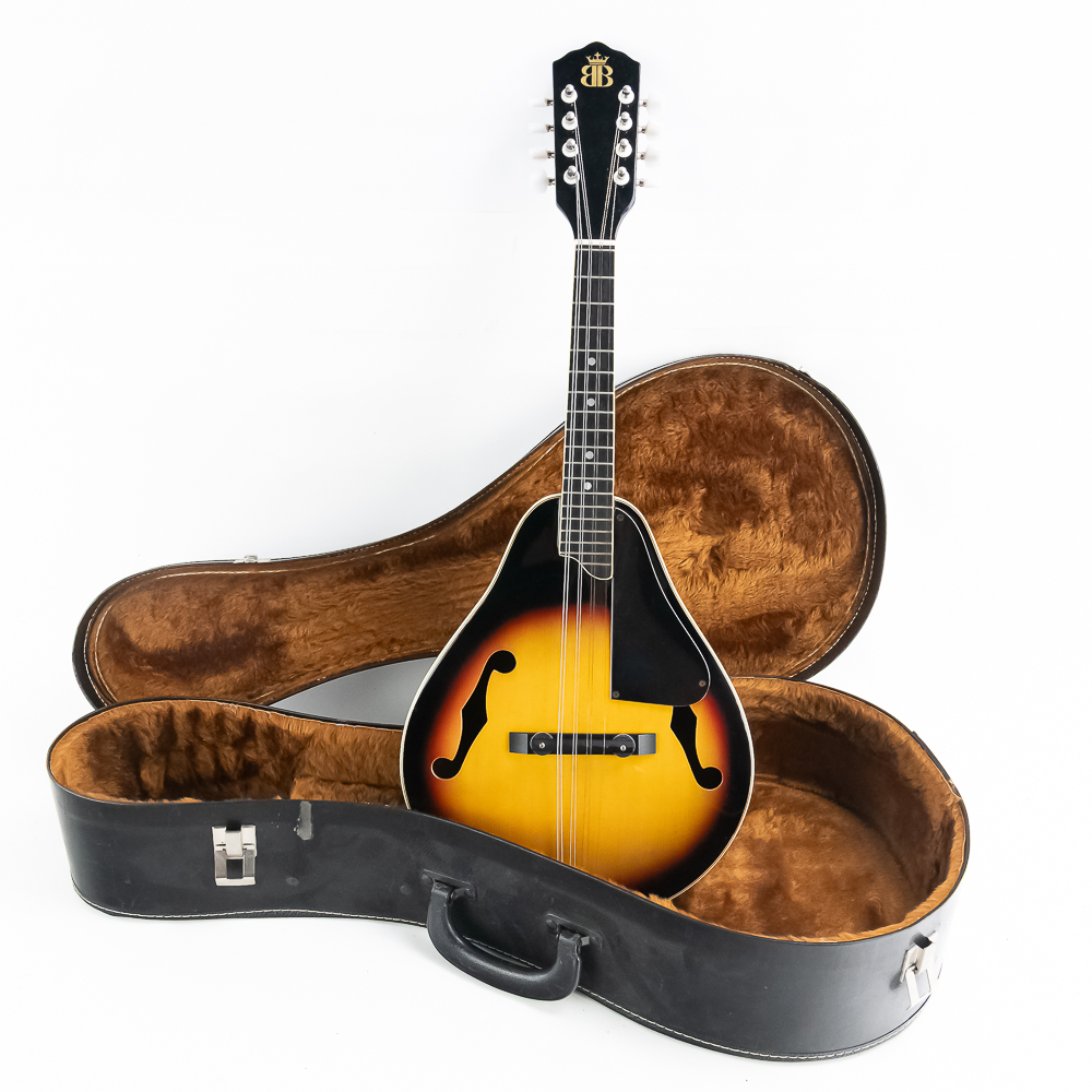 Contemporary mad BB brand mandolin in like new condition. Could use a re stringing or at the very least 1 new A string. Comes with case.