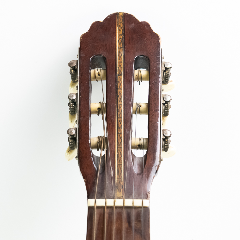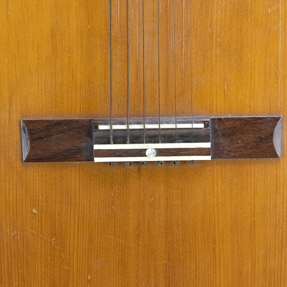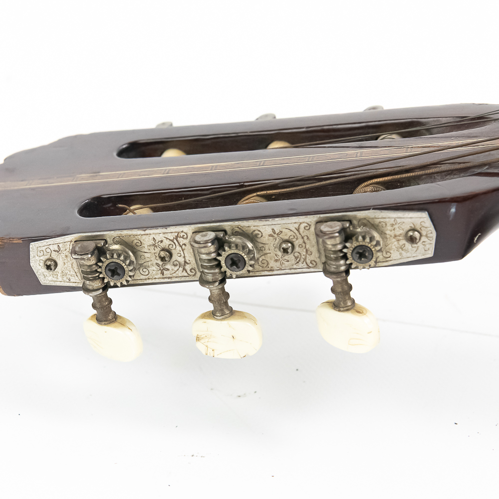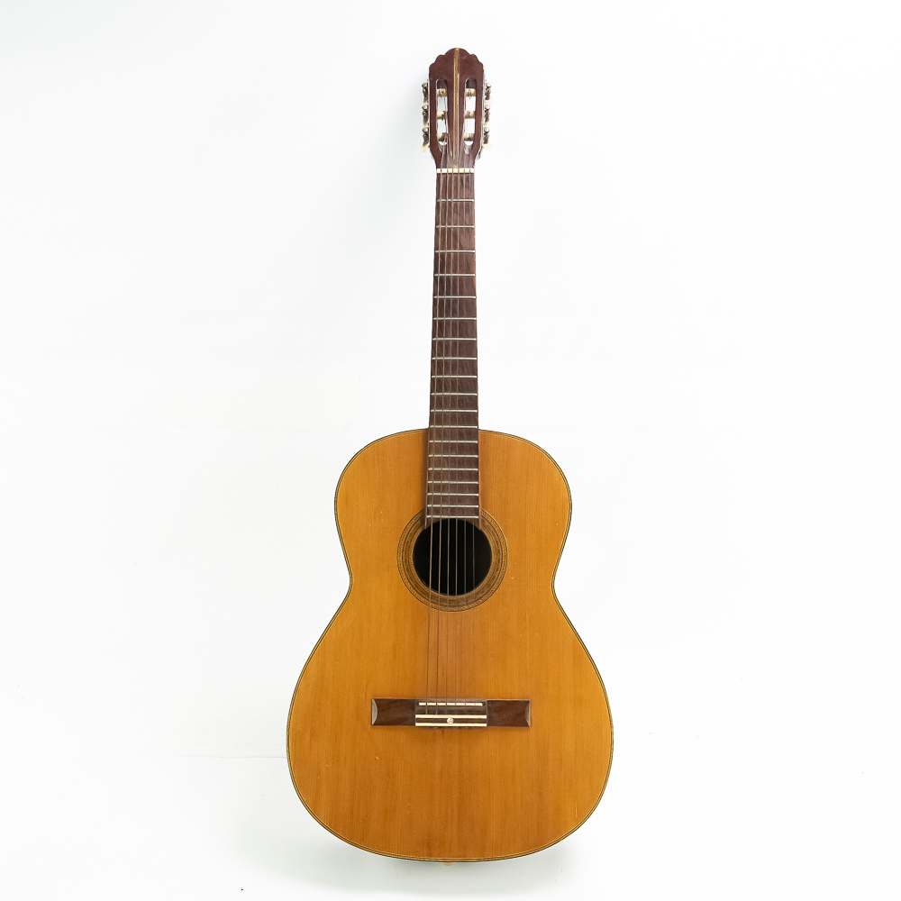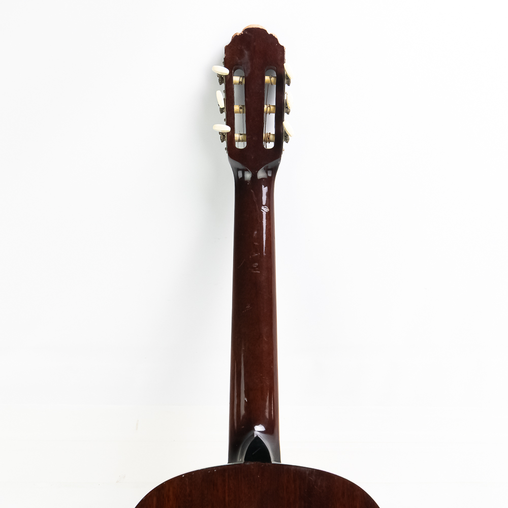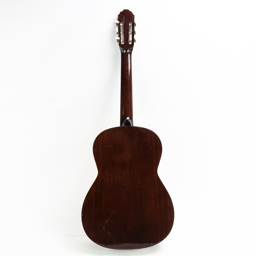 Unknown maker acoustic guitar in good condition. Original finish spruce top with maple sides and back in good condition with no splits or cracks. Bottom has strap lug. A good beginner guitar. No case.
