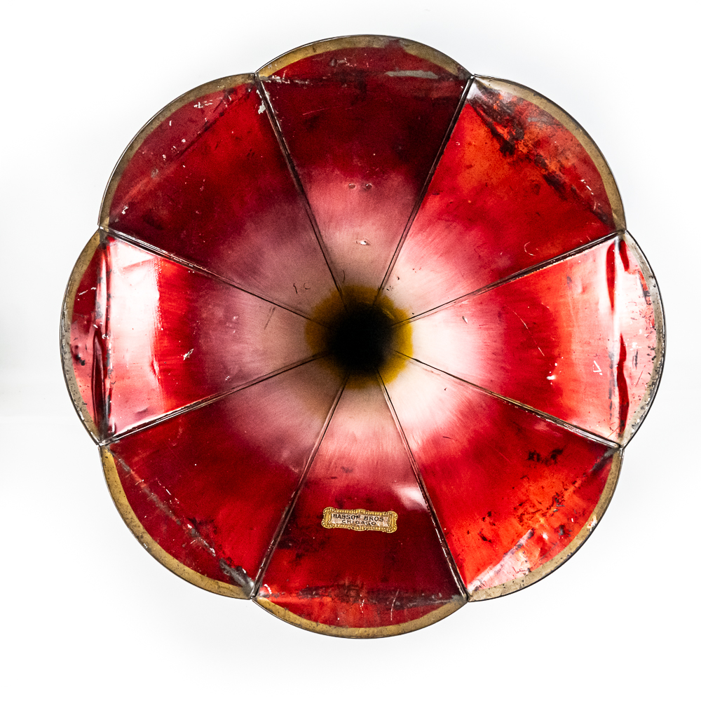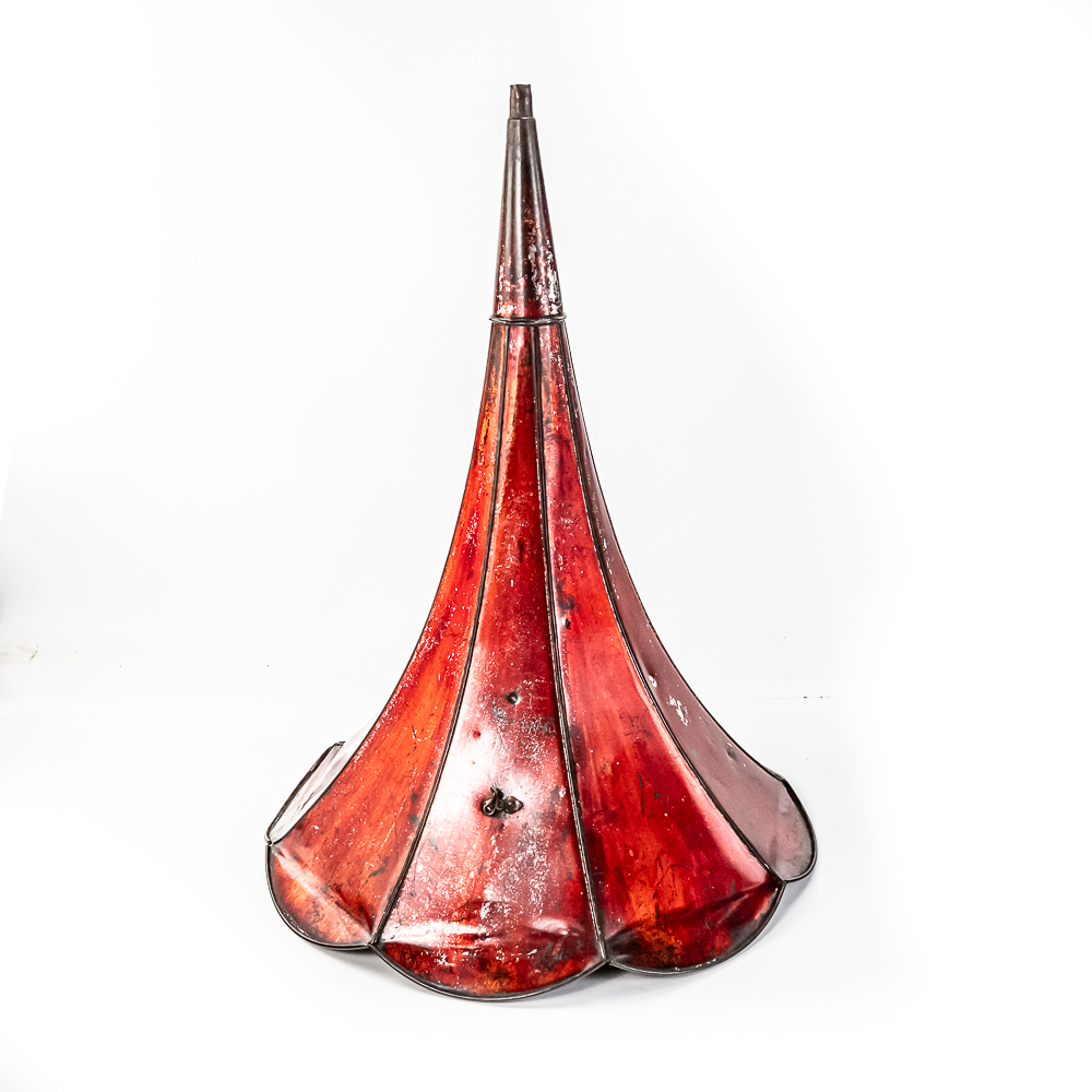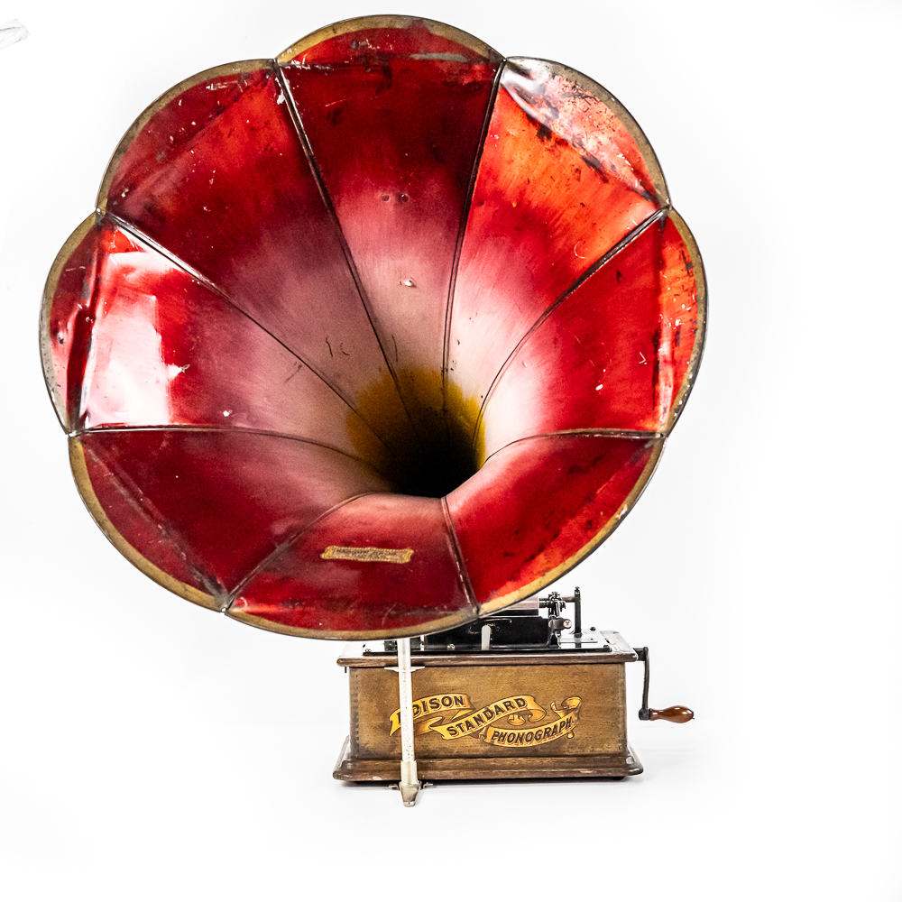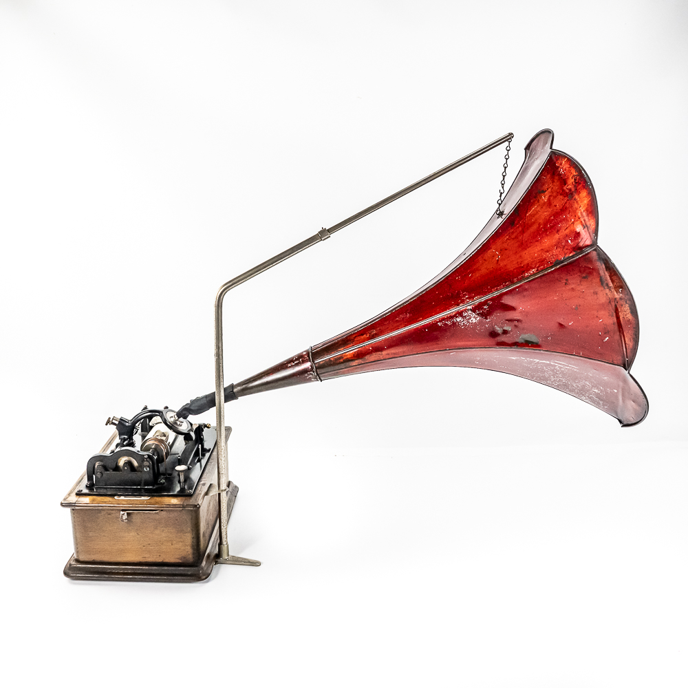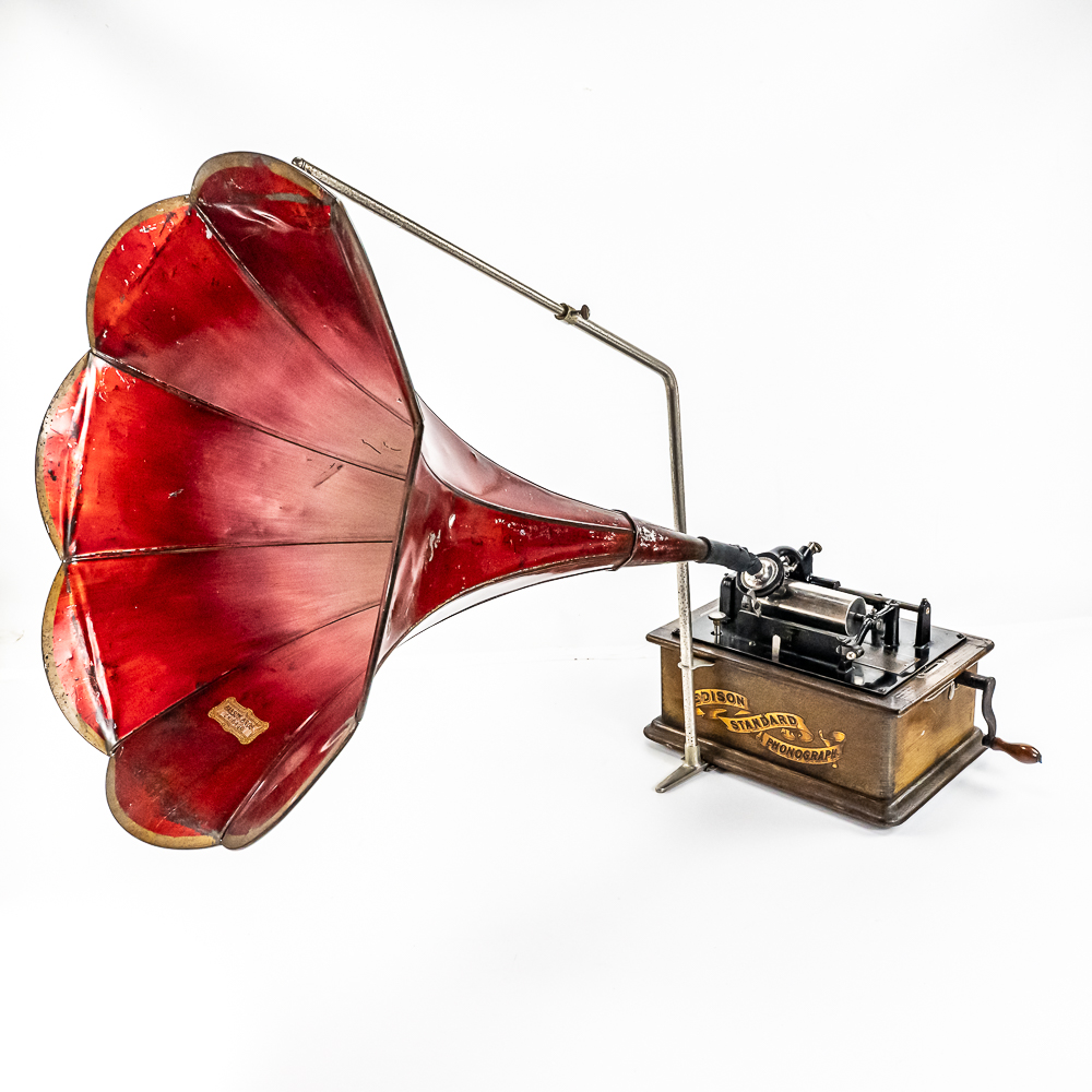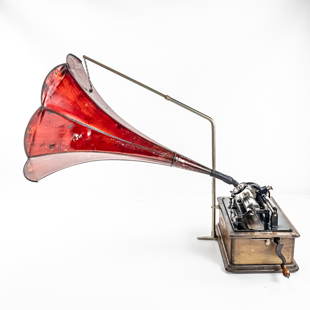 This machine with its oak cabinet and cover has been refinished and redecaled and is in otherwise good condition. This 2/4 minute machine has 2 original reproducers – model C and H with good stylus. Carriage and mandrill move freely. The upper mech and bed plate have their original paint and pinstripes in good condition. Has its original winding crank and the motor winds and runs. Also included is an older high quality reproduction horn support assembly in good condition. Also included is a 32″L ten panel Edison Standard steel horn. The horn has its original paint, pinstripes and decals all of which are in good condition. The horn appears to have been clear coated inside and out There are a few minor abrasions as well as some paint loss near the small end. Cabinet and cover measure 13″ X 9-1/2″ X 11″ T.