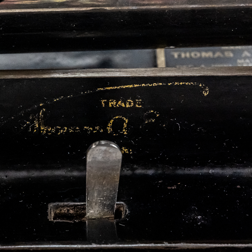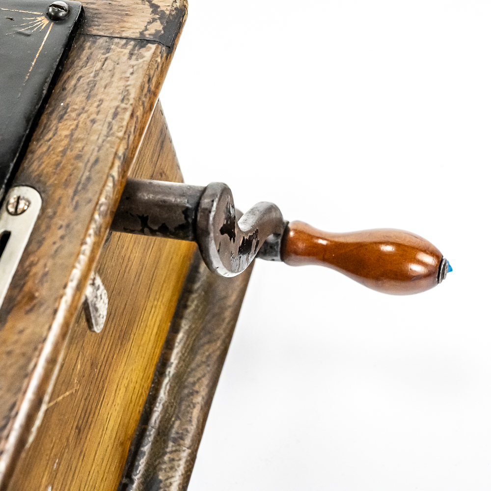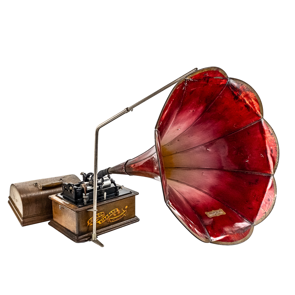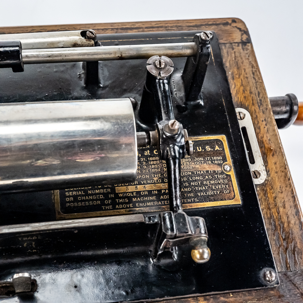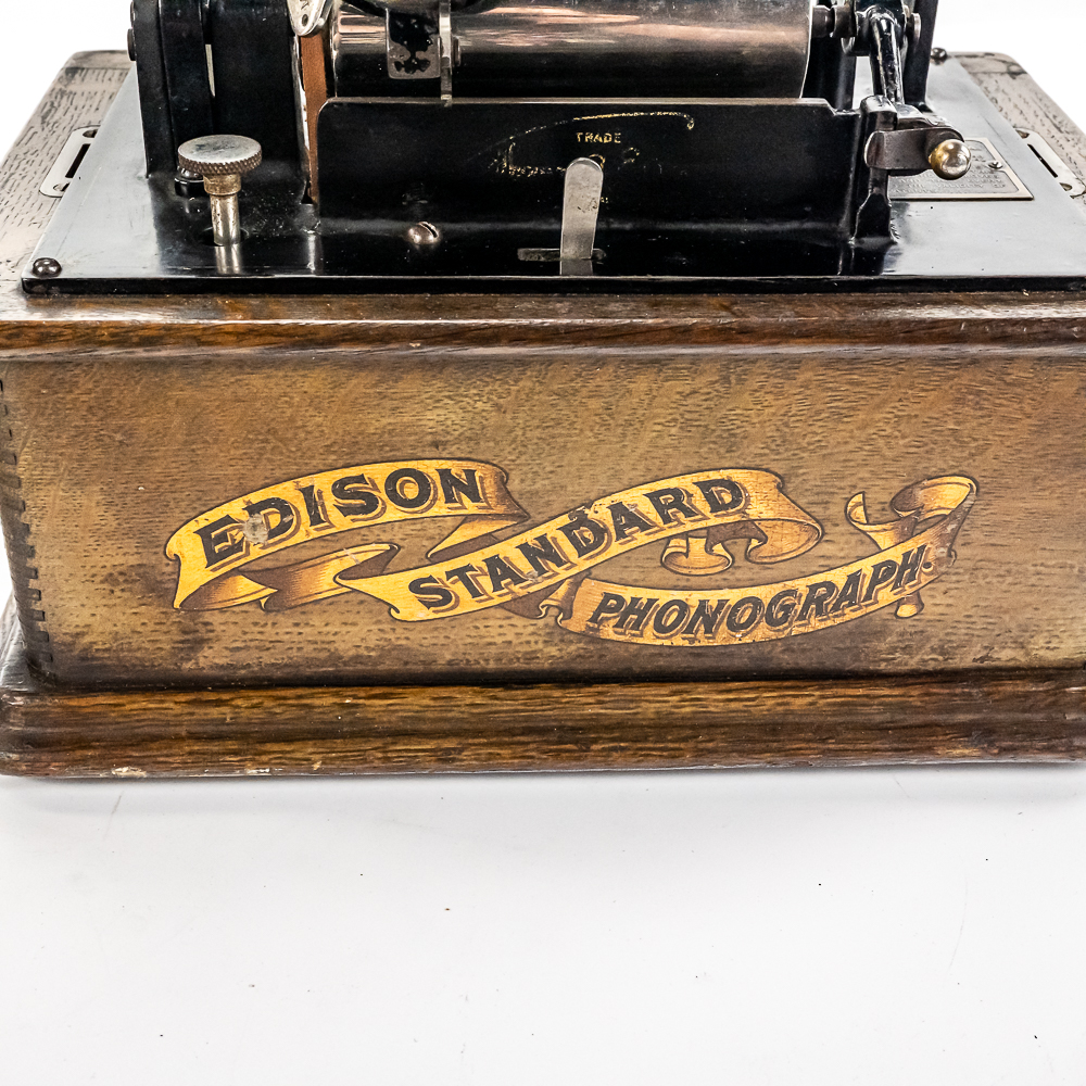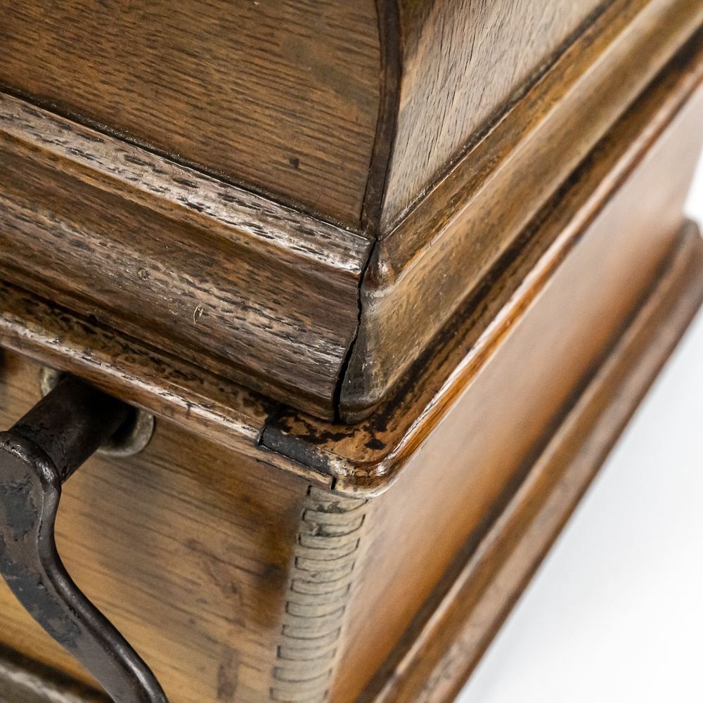 This machine with its oak cabinet and cover has been refinished and redecaled and is in otherwise good condition. This 2/4 minute machine has 2 original reproducers – model C and H with good stylus. Carriage and mandrill move freely. The upper mech and bed plate have their original paint and pinstripes in good condition. Has its original winding crank and the motor winds and runs. Also included is an older high quality reproduction horn support assembly in good condition. Also included is a 32″L ten panel Edison Standard steel horn. The horn has its original paint, pinstripes and decals all of which are in good condition. The horn appears to have been clear coated inside and out There are a few minor abrasions as well as some paint loss near the small end. Cabinet and cover measure 13″ X 9-1/2″ X 11″ T.