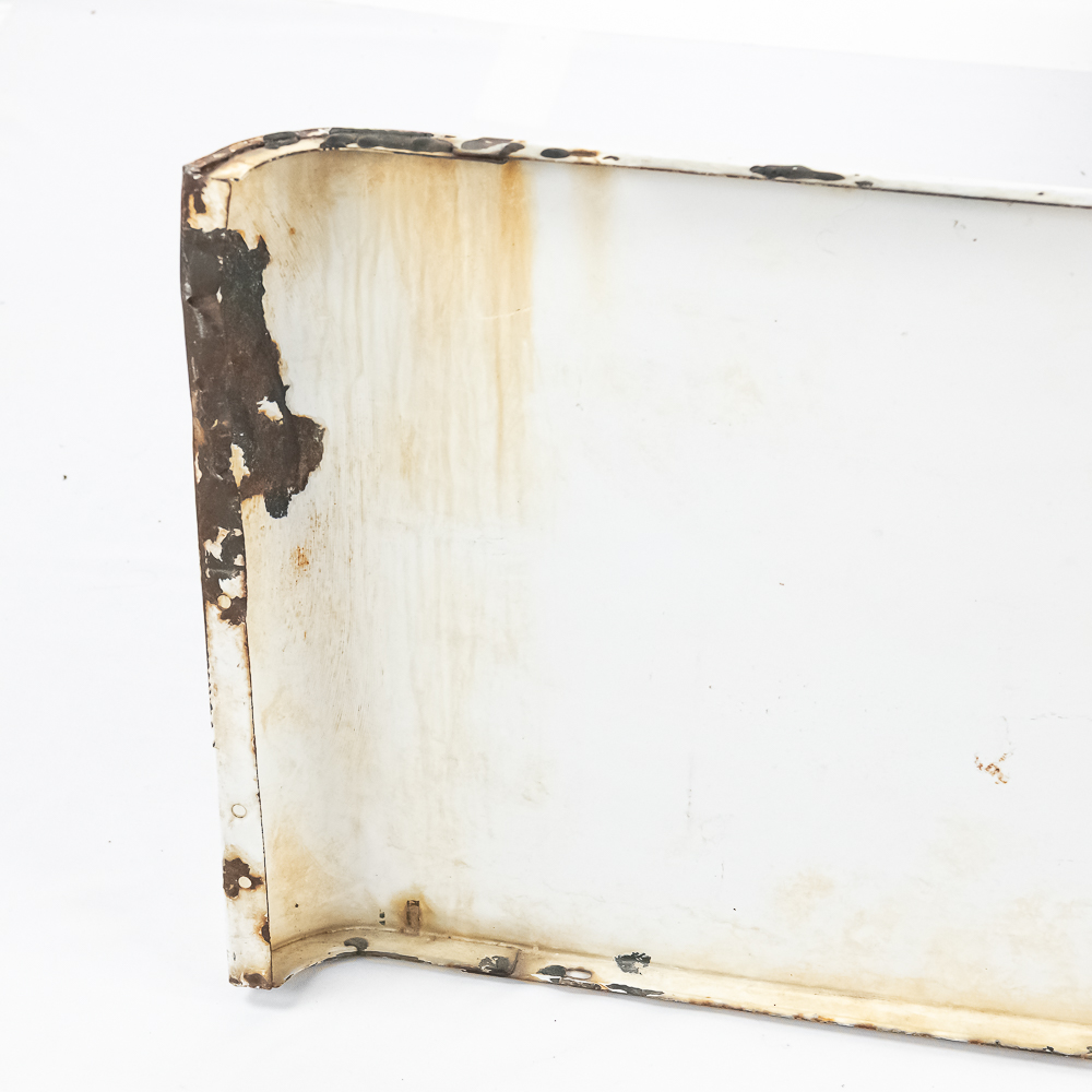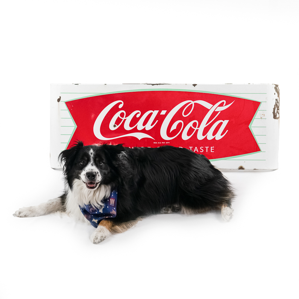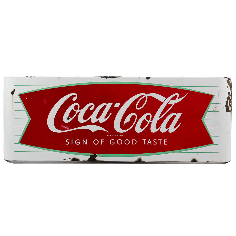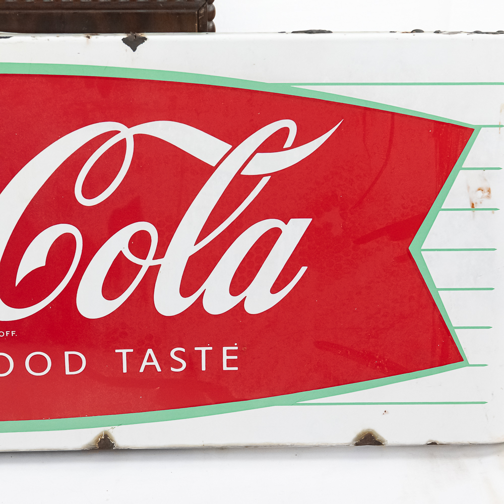 Nice bright colors. A little damage on upper right side at bend. Some porcelain chips and a surface rust spot around edge. A few small (nickel size) spots with rust on face of sign. The sign shows nicely with a vintage look.