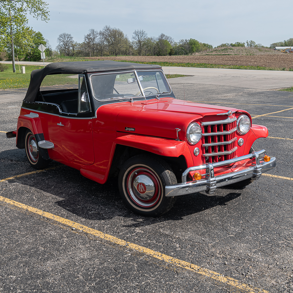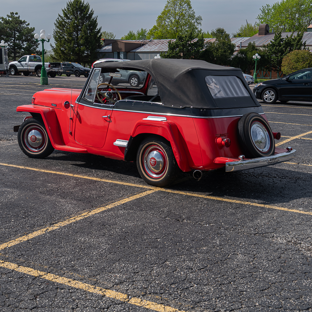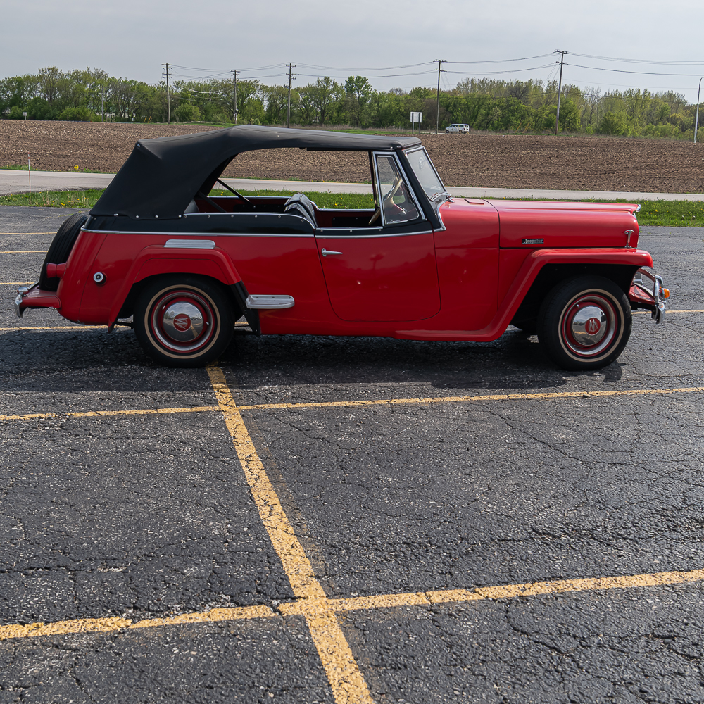 You are looking at a 1950 Willys-Overland Jeepster, a 4-cylinder model designed by famed industrial designer Brooks Stevens. The Jeepster’s brief three-year run (1948-1950) as the last true Phaeton automobile. The Phaeton style, from its carriage roots to its automotive zenith, embodied open air freedom and luxury. Its decline by the 1950s, capped by Brooks stevens Jeepster, marked the end of an era. Featuring an older amateur restoration on bodywork and refinishing. The convertible top is in good condition with the rear plastic window in fair to good condition with a few light scuffs. The glass is good all-around with a light wiper scuff in the right-front plate glass. Good tires, original wheel covers and trim rings including spare. All of the exterior chrome including bumpers are bright and in good condition, with just a few light scuffs and scratches. The vehicle appears to have all of the exterior trim. The interior looks original or an older recover but in good condition. The engine compartment is clean with a new battery, new master cylinder, new overdrive solenoid and the 4-cylinder engine has been rebuilt. Several new gauges have been installed to go with the rebuild. Some of the wiring has been replaced and the suspension shocks were replaced several years back. The underside indicates some body rust has been repaired with some rust still existing. Please look at photos and inspect vehicle. Remember, this is a 1950 Jeepster, making the vehicle 75 years old. It is in much better condition than a lot of vehicles driving on the road every day. Today, surviving Phaetons are cherished relics, celebrated for their design purity and connection to motoring’s early days. This is fun vehicle to enjoy!