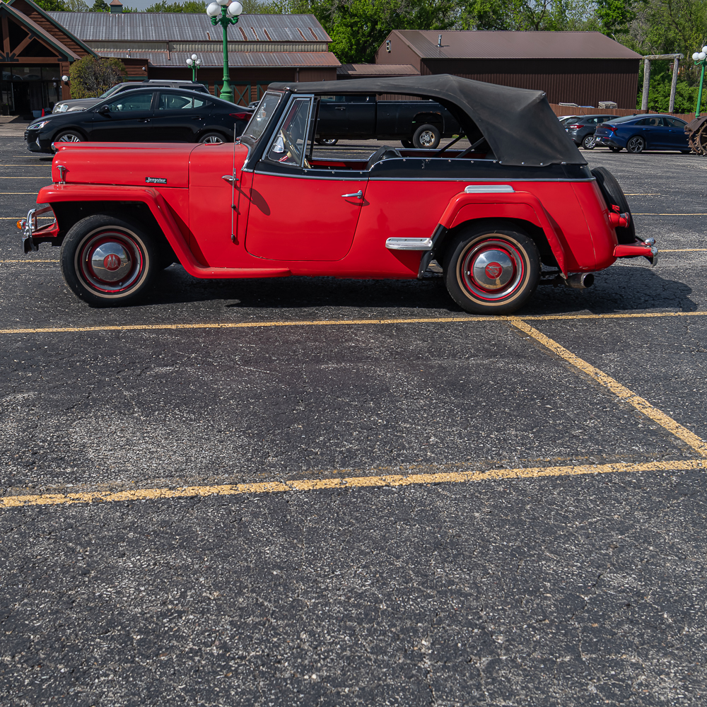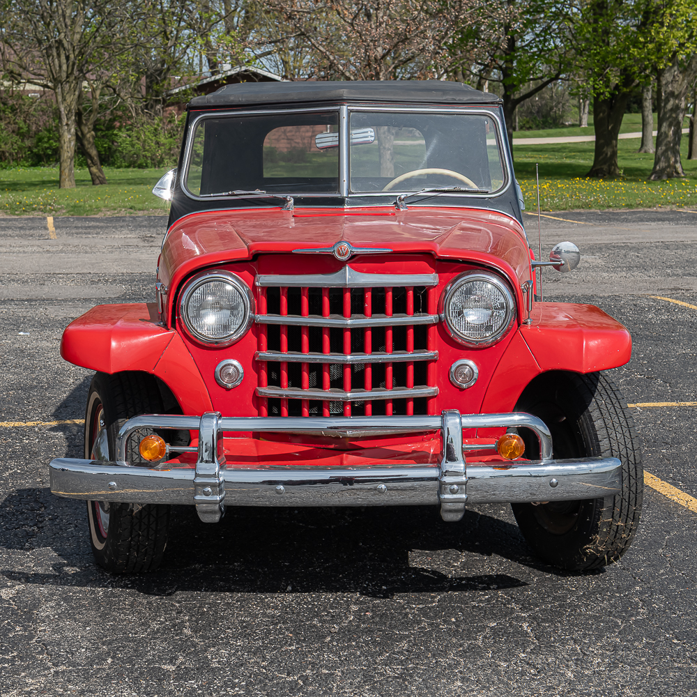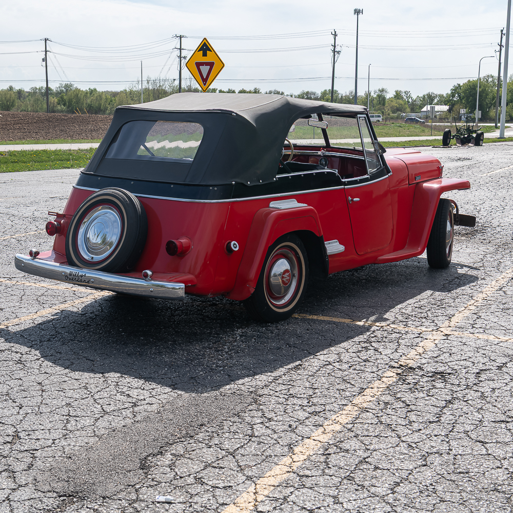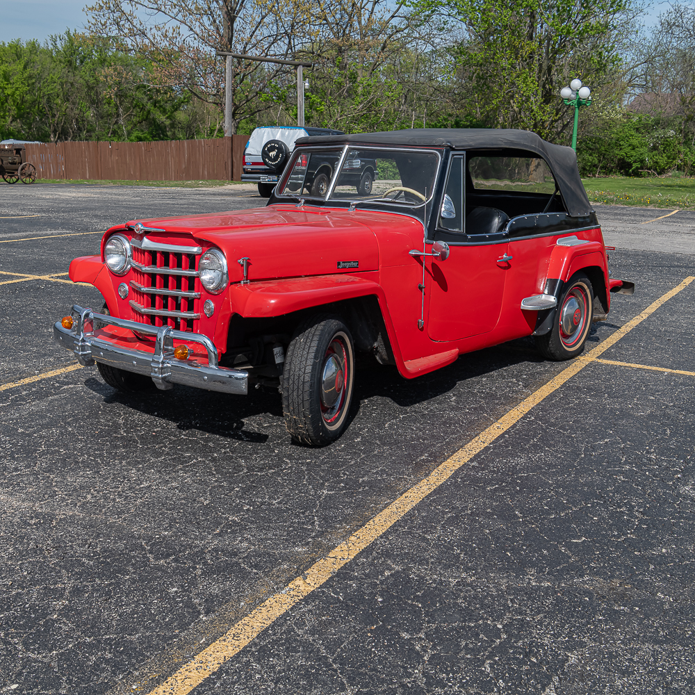 You are looking at a 1950 Willys-Overland Jeepster, a 4-cylinder model designed by famed industrial designer Brooks Stevens. The Jeepster’s brief three-year run (1948-1950) as the last true Phaeton automobile. The Phaeton style, from its carriage roots to its automotive zenith, embodied open air freedom and luxury. Its decline by the 1950s, capped by Brooks stevens Jeepster, marked the end of an era. Featuring an older amateur restoration on bodywork and refinishing. The convertible top is in good condition with the rear plastic window in fair to good condition with a few light scuffs. The glass is good all-around with a light wiper scuff in the right-front plate glass. Good tires, original wheel covers and trim rings including spare. All of the exterior chrome including bumpers are bright and in good condition, with just a few light scuffs and scratches. The vehicle appears to have all of the exterior trim. The interior looks original or an older recover but in good condition. The engine compartment is clean with a new battery, new master cylinder, new overdrive solenoid and the 4-cylinder engine has been rebuilt. Several new gauges have been installed to go with the rebuild. Some of the wiring has been replaced and the suspension shocks were replaced several years back. The underside indicates some body rust has been repaired with some rust still existing. Please look at photos and inspect vehicle. Remember, this is a 1950 Jeepster, making the vehicle 75 years old. It is in much better condition than a lot of vehicles driving on the road every day. Today, surviving Phaetons are cherished relics, celebrated for their design purity and connection to motoring’s early days. This is fun vehicle to enjoy!