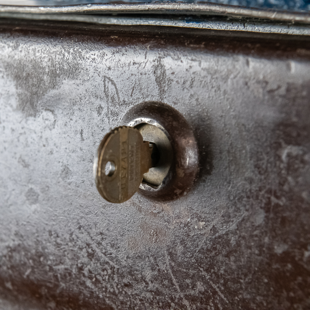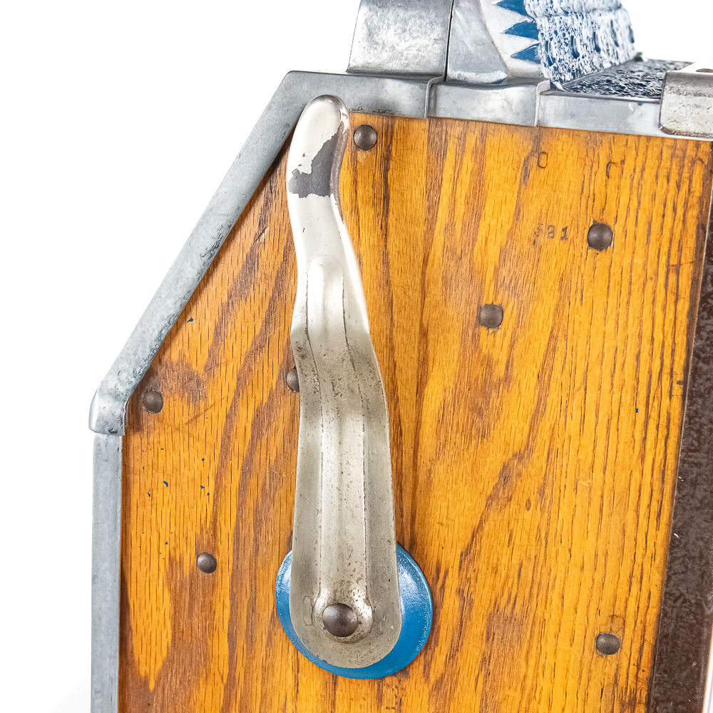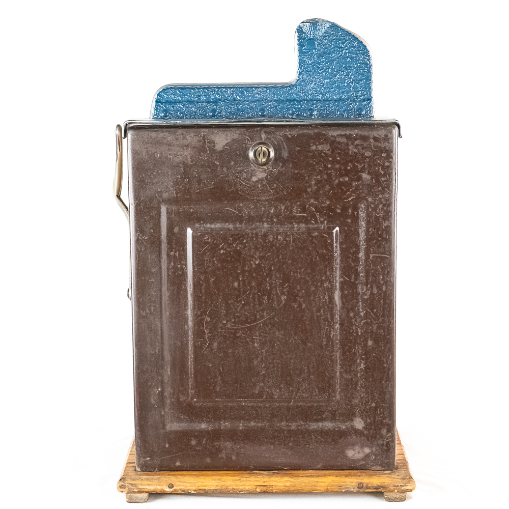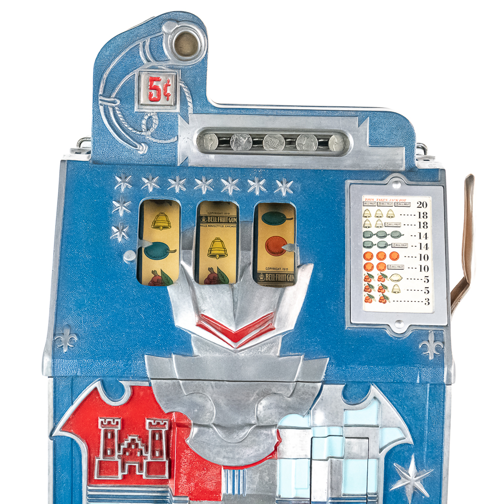 Looks to be an original or older restoration. A good looking, 3-reel, front jackpot slot that comes with key and works like it should. Overall good condition, with a few small scuffs and nicks.