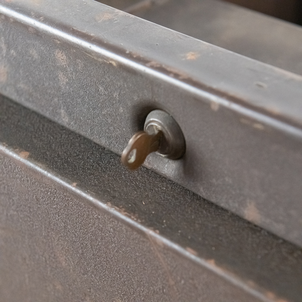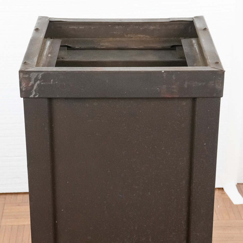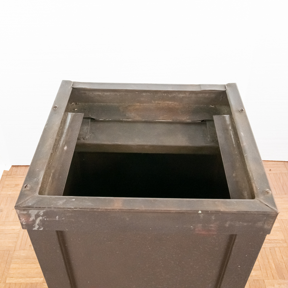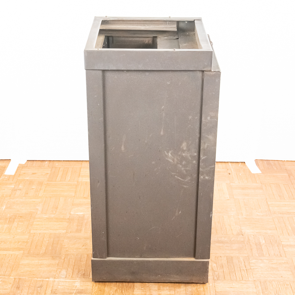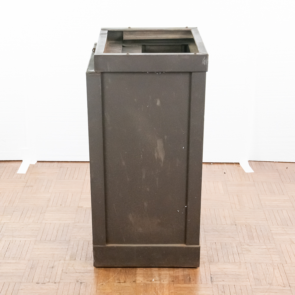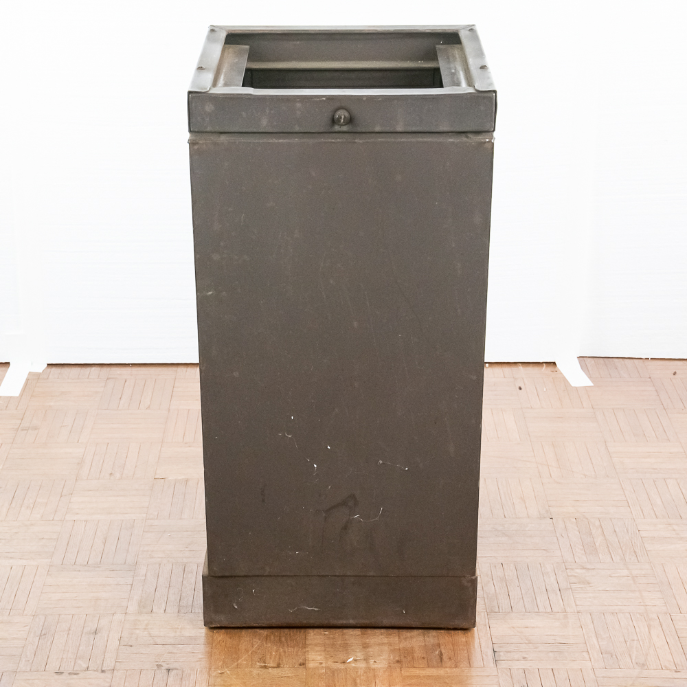 Original metal slot stand with original paint that will lock the slot to the top of the stand. Has lock and key. Overall in good, straight, solid condition with some paint scuffs.