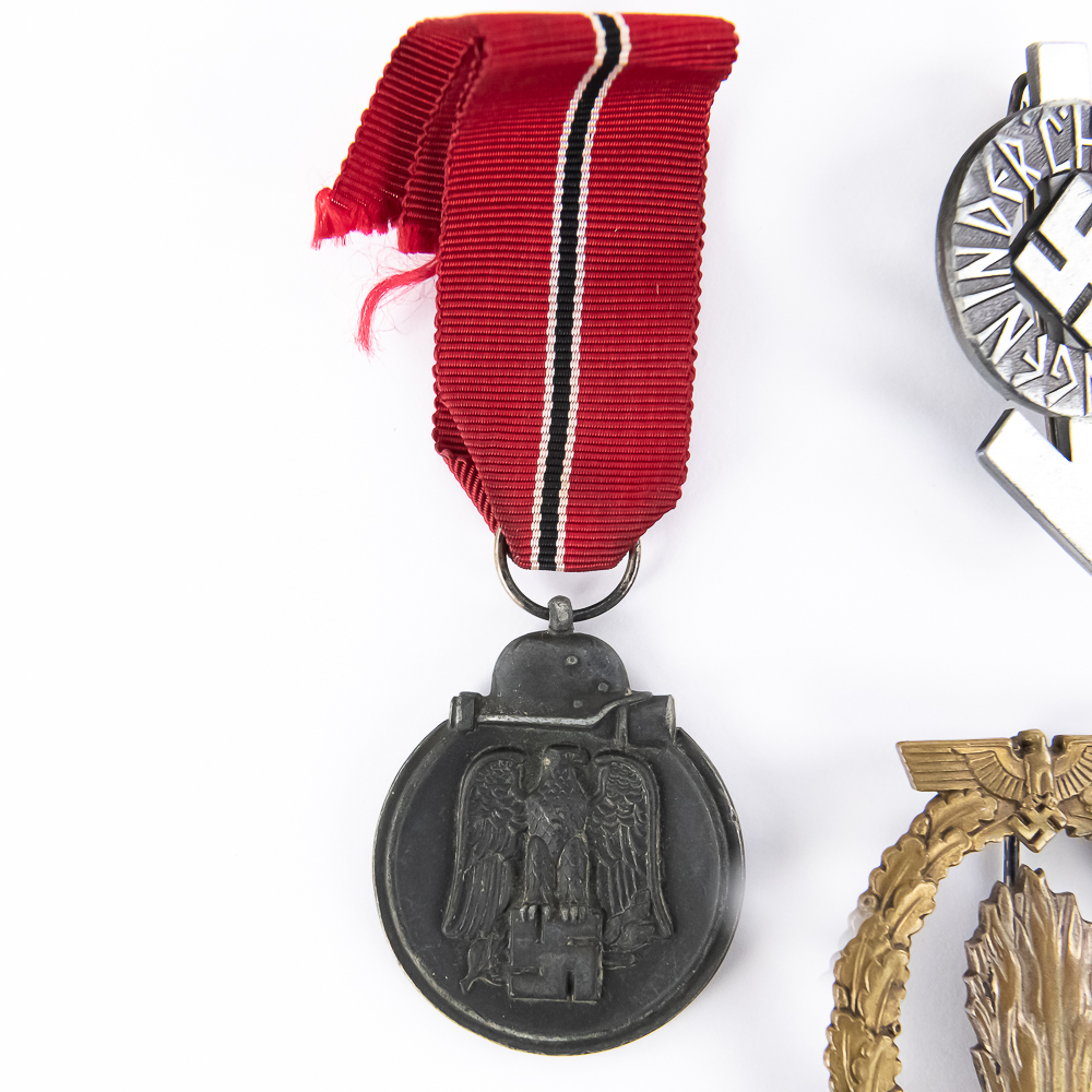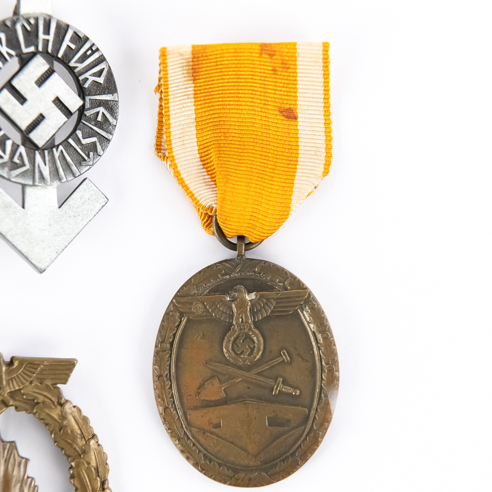 3) German West Wall Medal. Bronze. Original ribbon (no glow under UV light). Dimensions: 3.25”x1.25”.