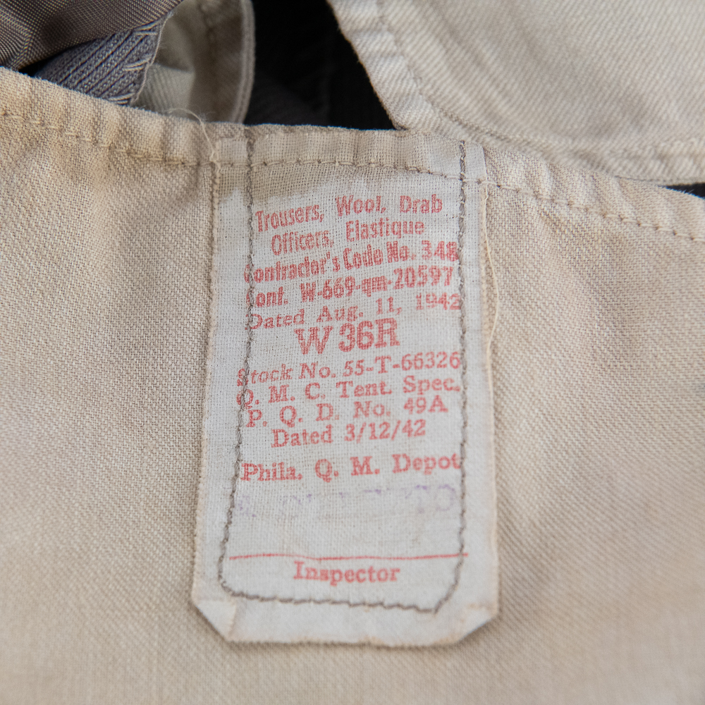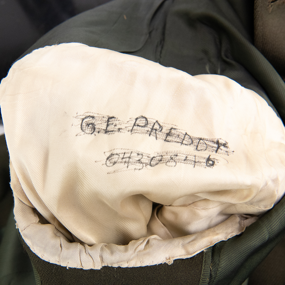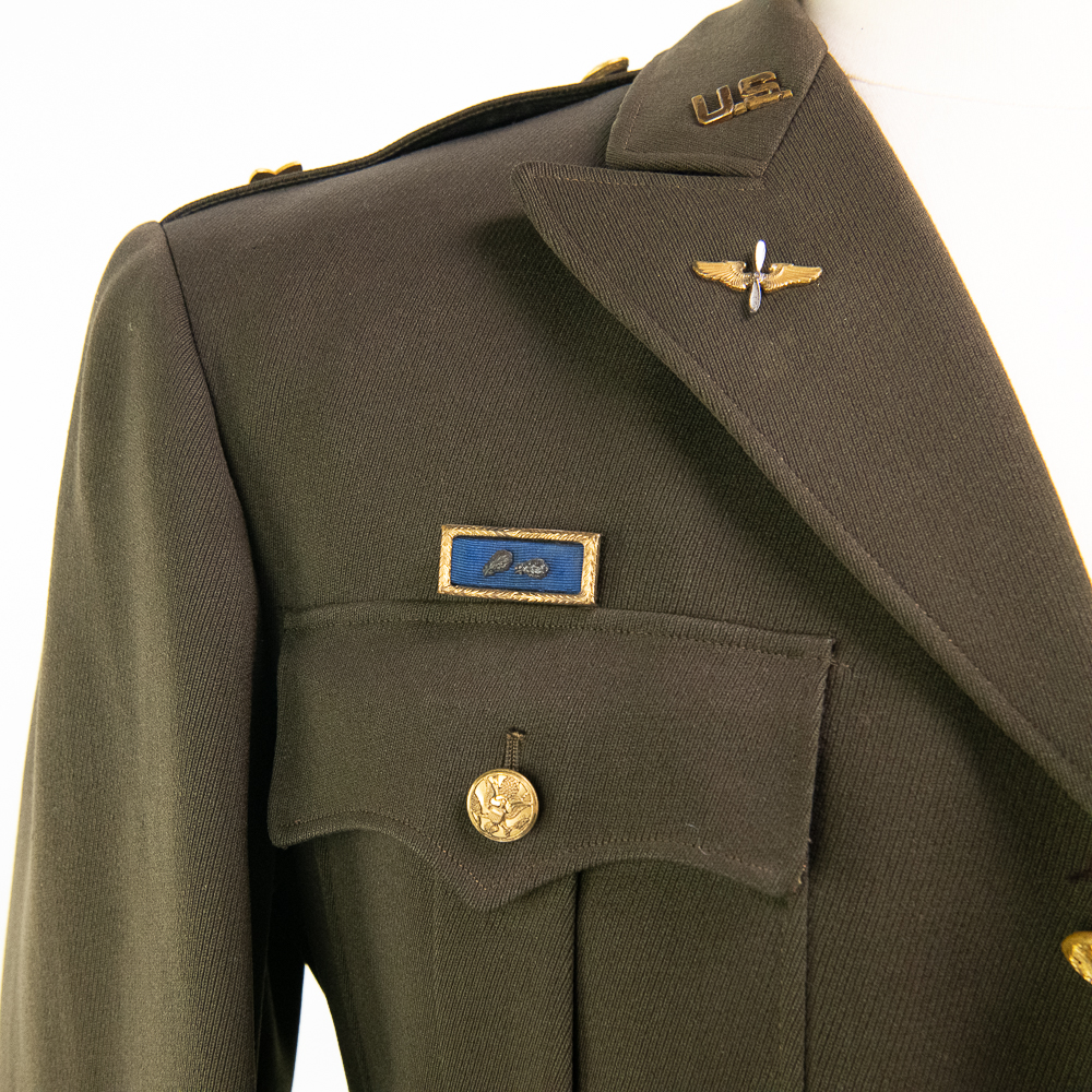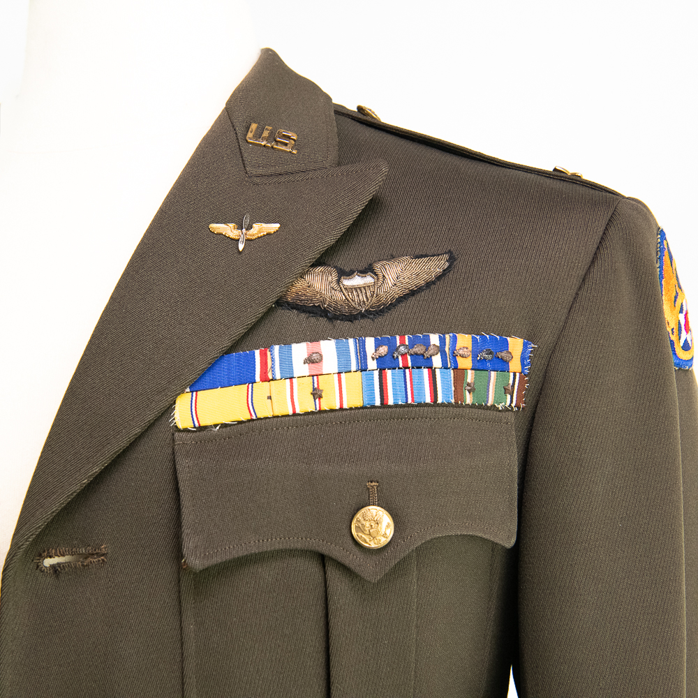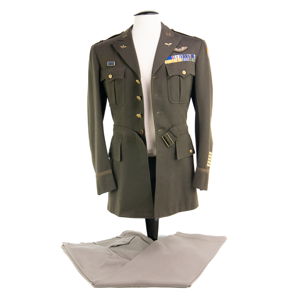 Uniform Coat and trousers attributed to Major George Preddy Jr. “The Complete Fighter Pilot “ as General John C. Meyer was quoted about Preddy. He was considered to be the top Mustang Ace of the War, and was the leading active ace in the European theater of operations at the time of his death (December 25, 1944) during World War II.