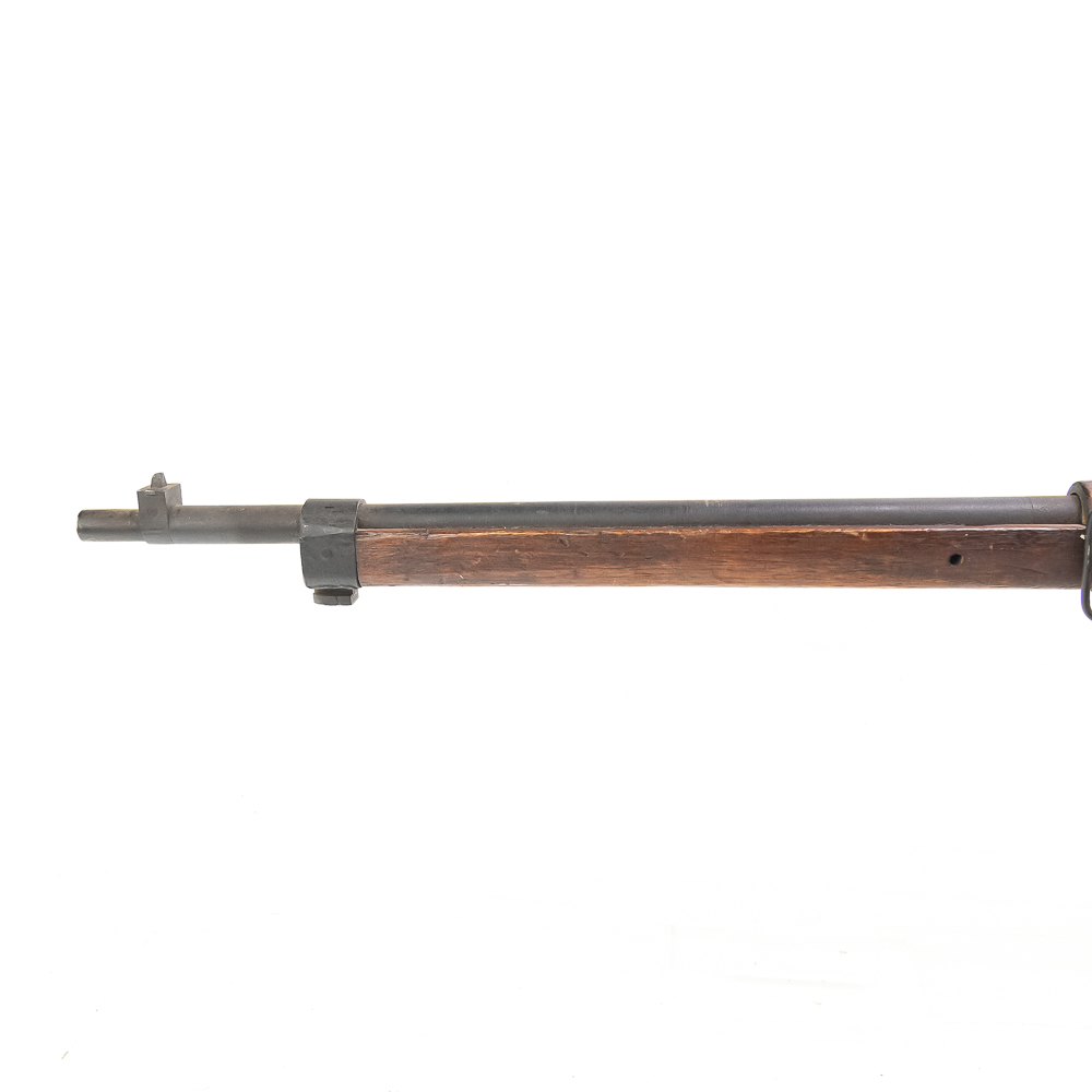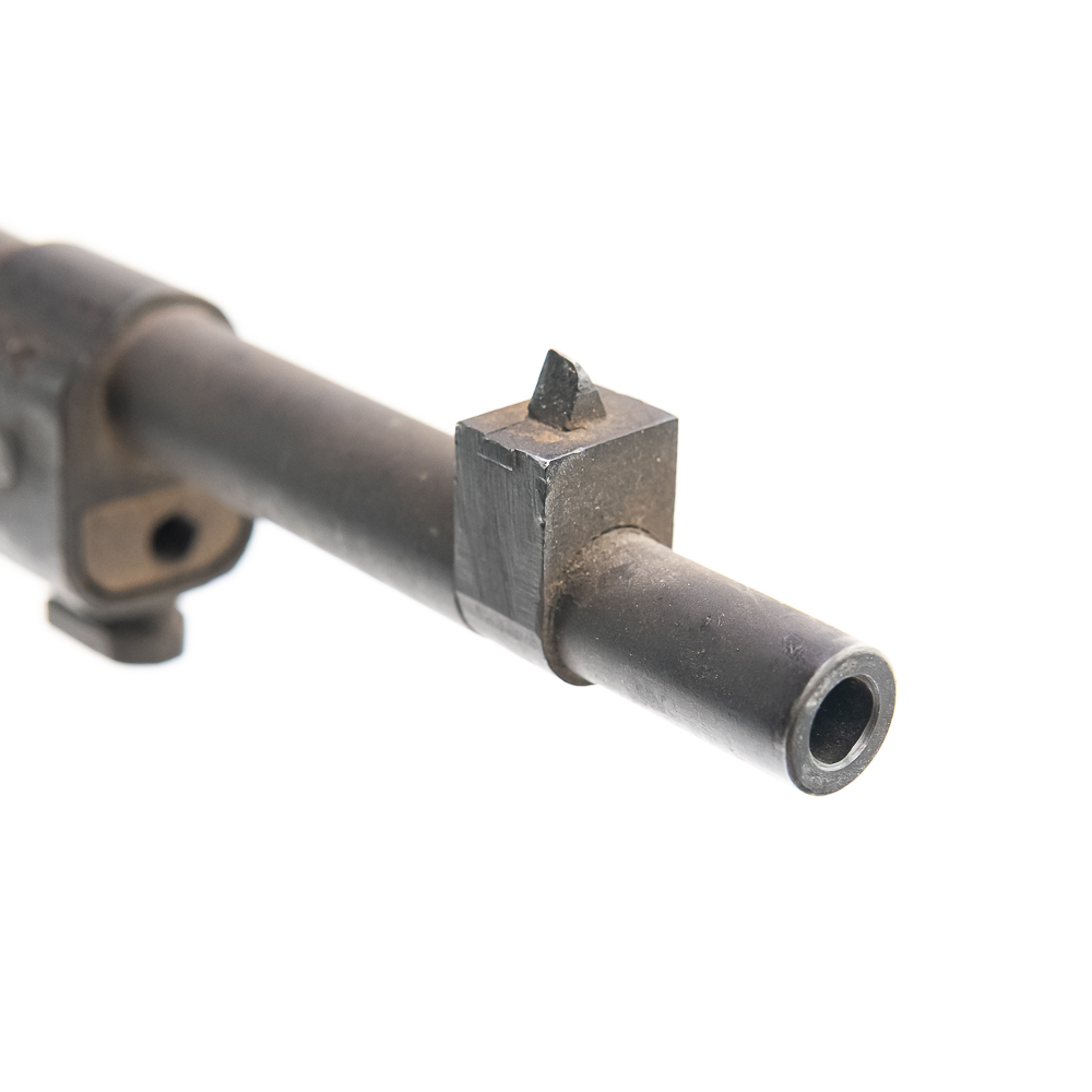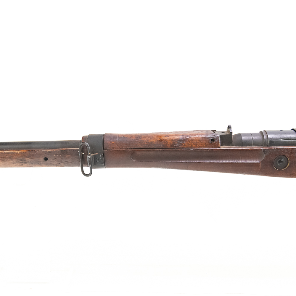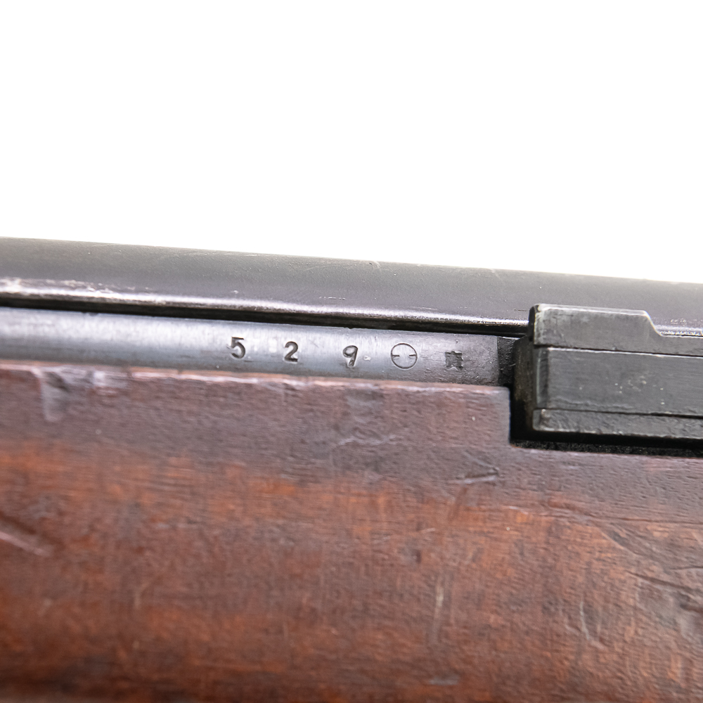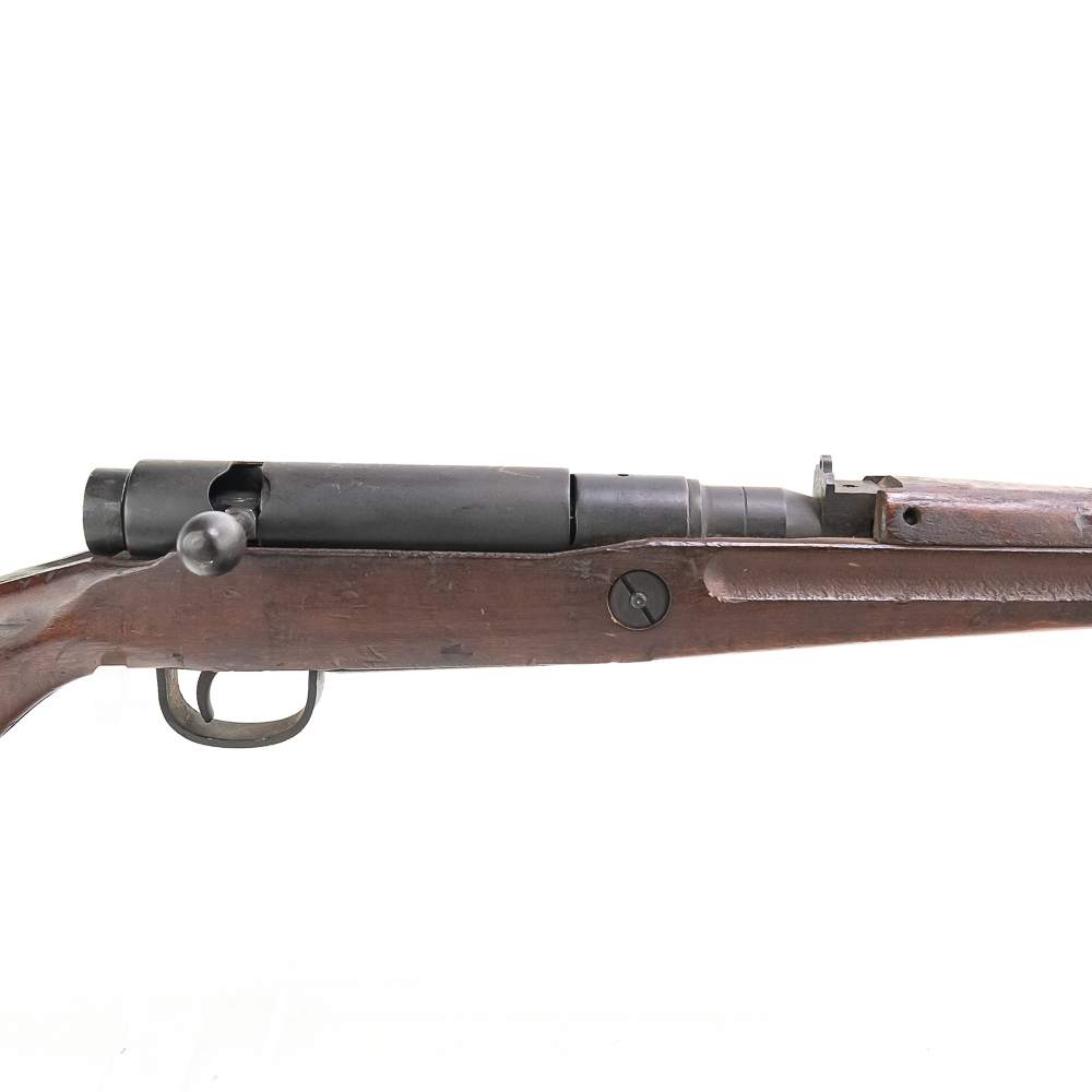 Very rare Kogyo marked last ditch rifle without the Toyo/Tokyo arsenal stamp ( Hiroshima Prefecture ?). It was made without the royal chrysanthemum on the top of the receiver or series mark in front of the serial number. The internal parts do not match the receiver, but it comes with a hard to find dust cover. It has a front sling swivel, but no rear attachment was ever fitted, in addition it has a welded safety; A note attached to the rifle said it’s the second rarest 99 made with less than 1450 made. A very unique rifle with an unusual arsenal mark ! A one-of-kind find.