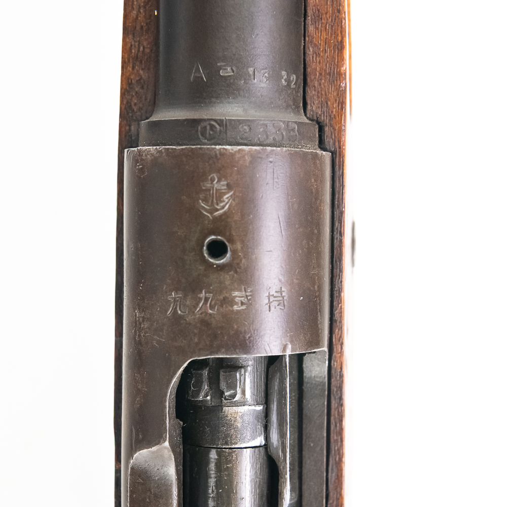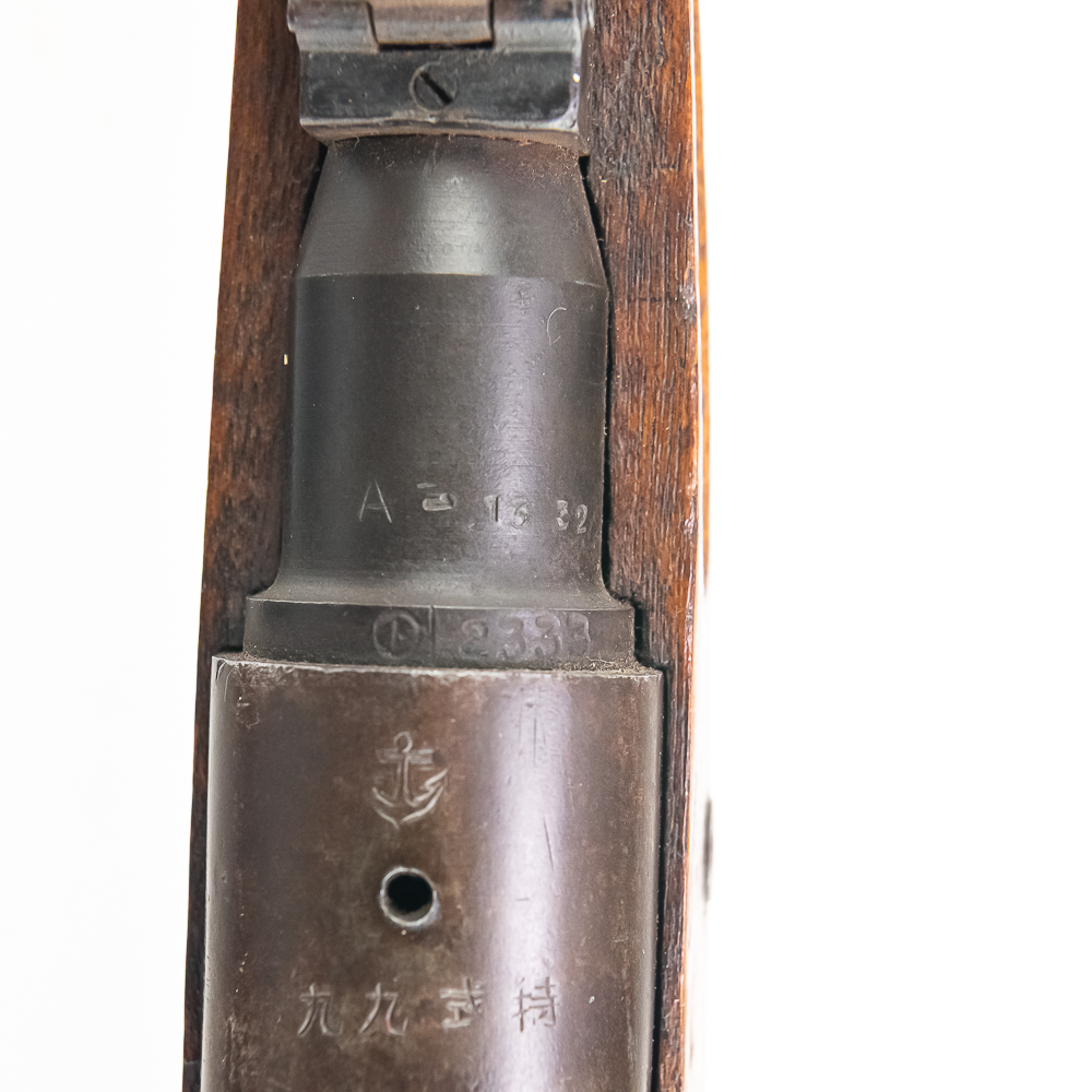 NAVY “Special Type 99” Arisaka Type 99 Rifle in very good condition with almost no wear to the stock, and a very good bore. Anchor and four characters above the chamber. Cleaning. rod intact. A good solid representative of a Navy “Special type 99” rifle.