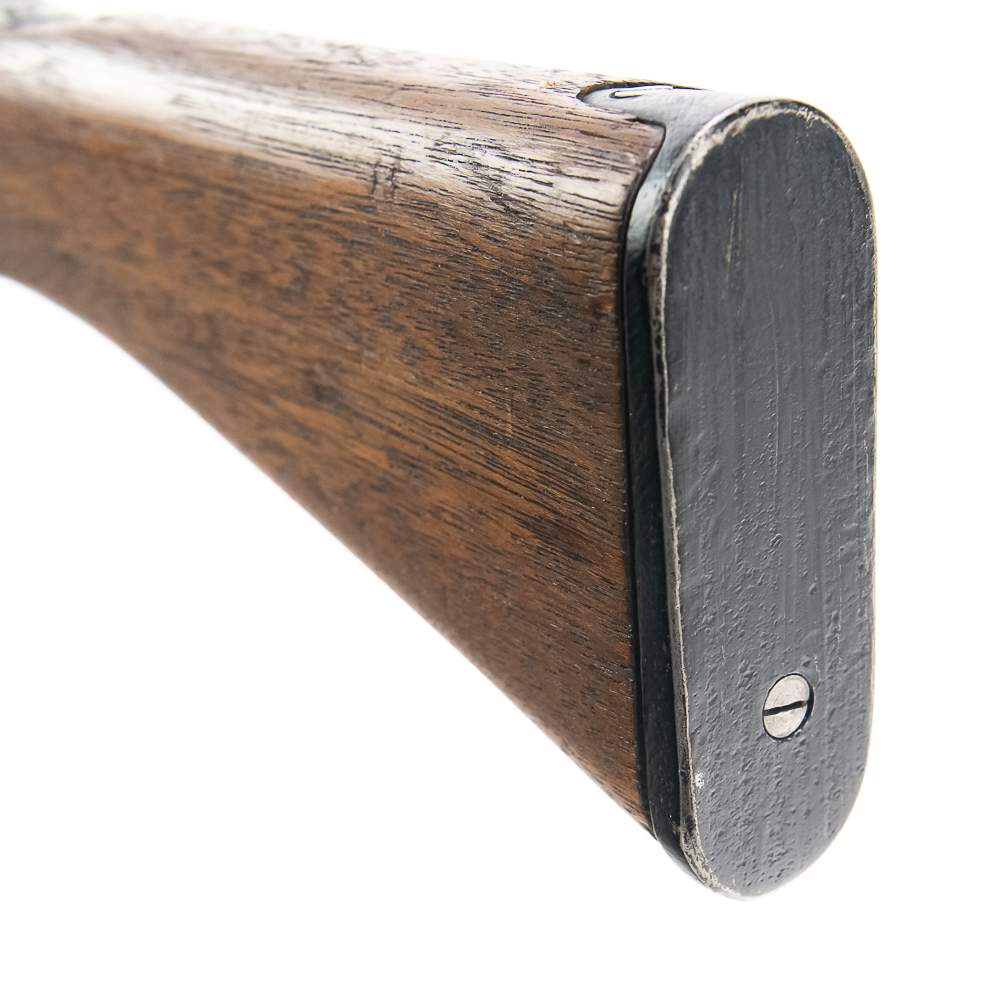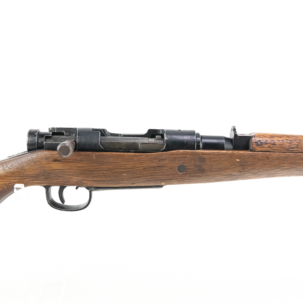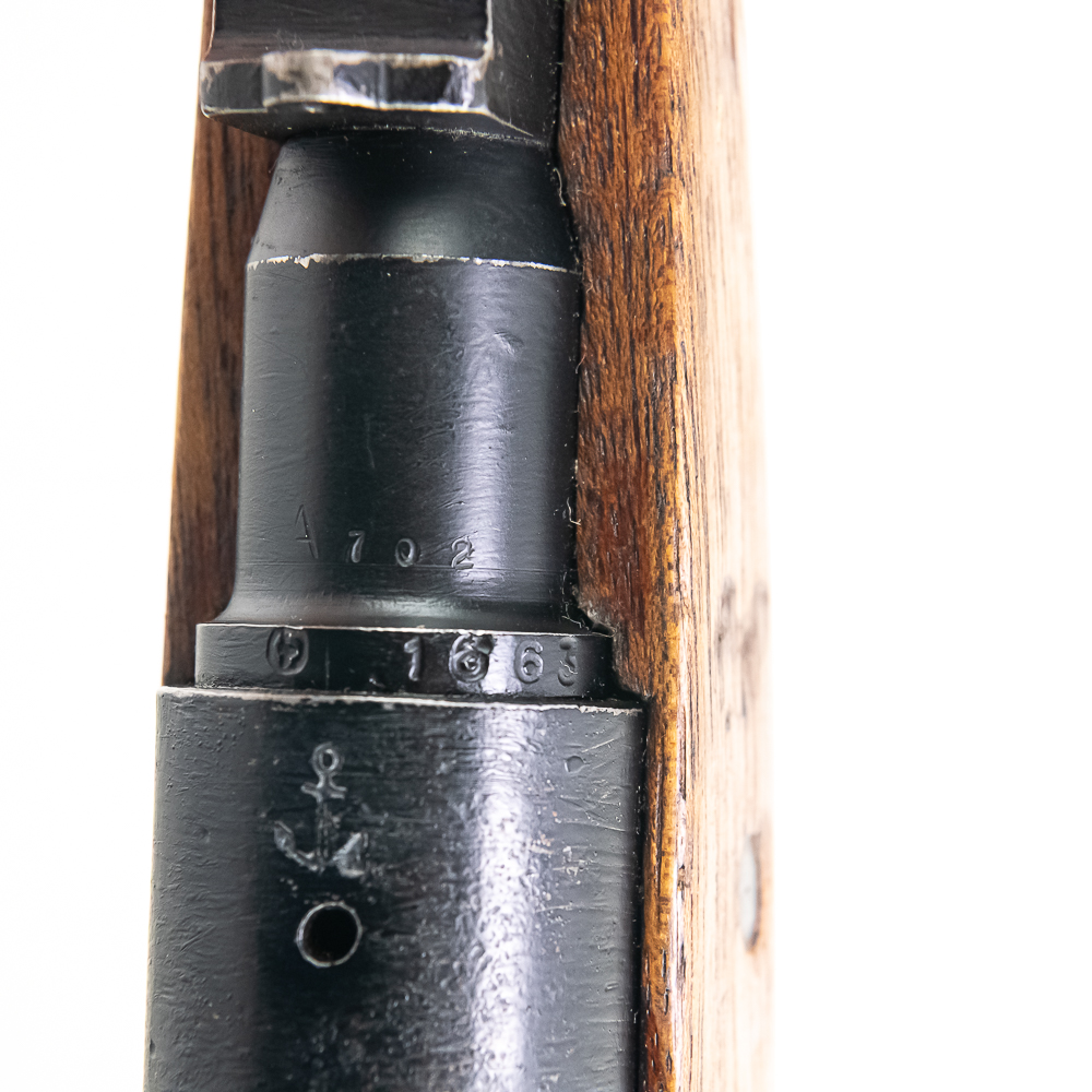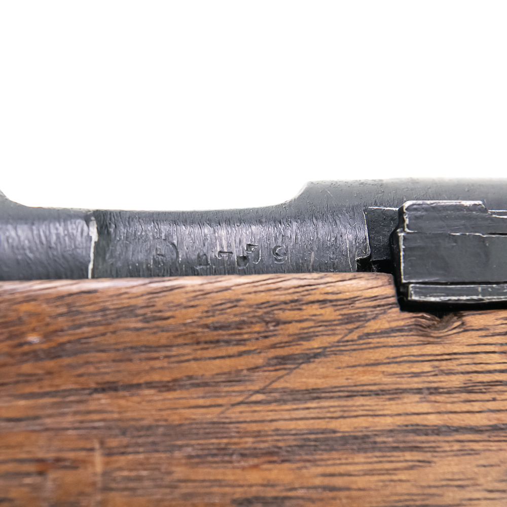 NAVY Arisaka “Special Type 99” 7.7 Rifle in very good condition with some wear and a good bore with some frosting. Anchor on chamber. “JAPAN” pinged into nice condition stock. Unique Japanese installed steel straps at front of gun (they were running out of parts) Nice black paint.