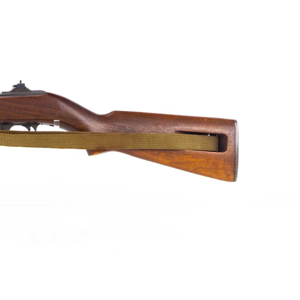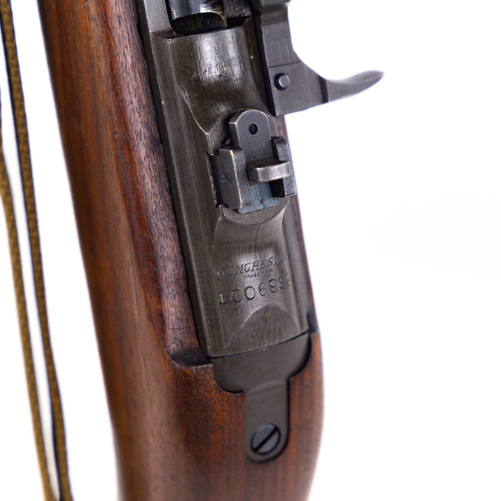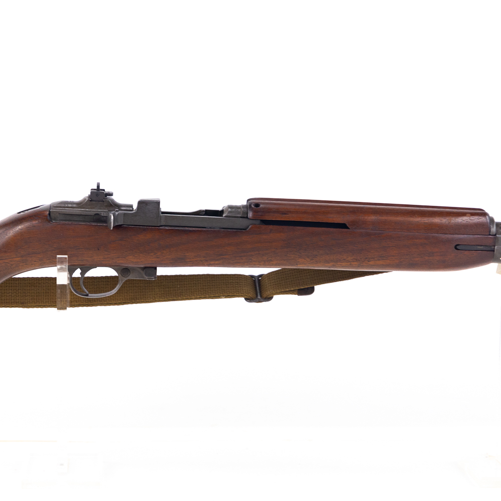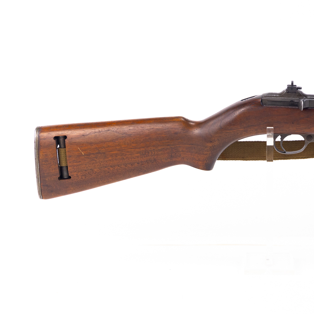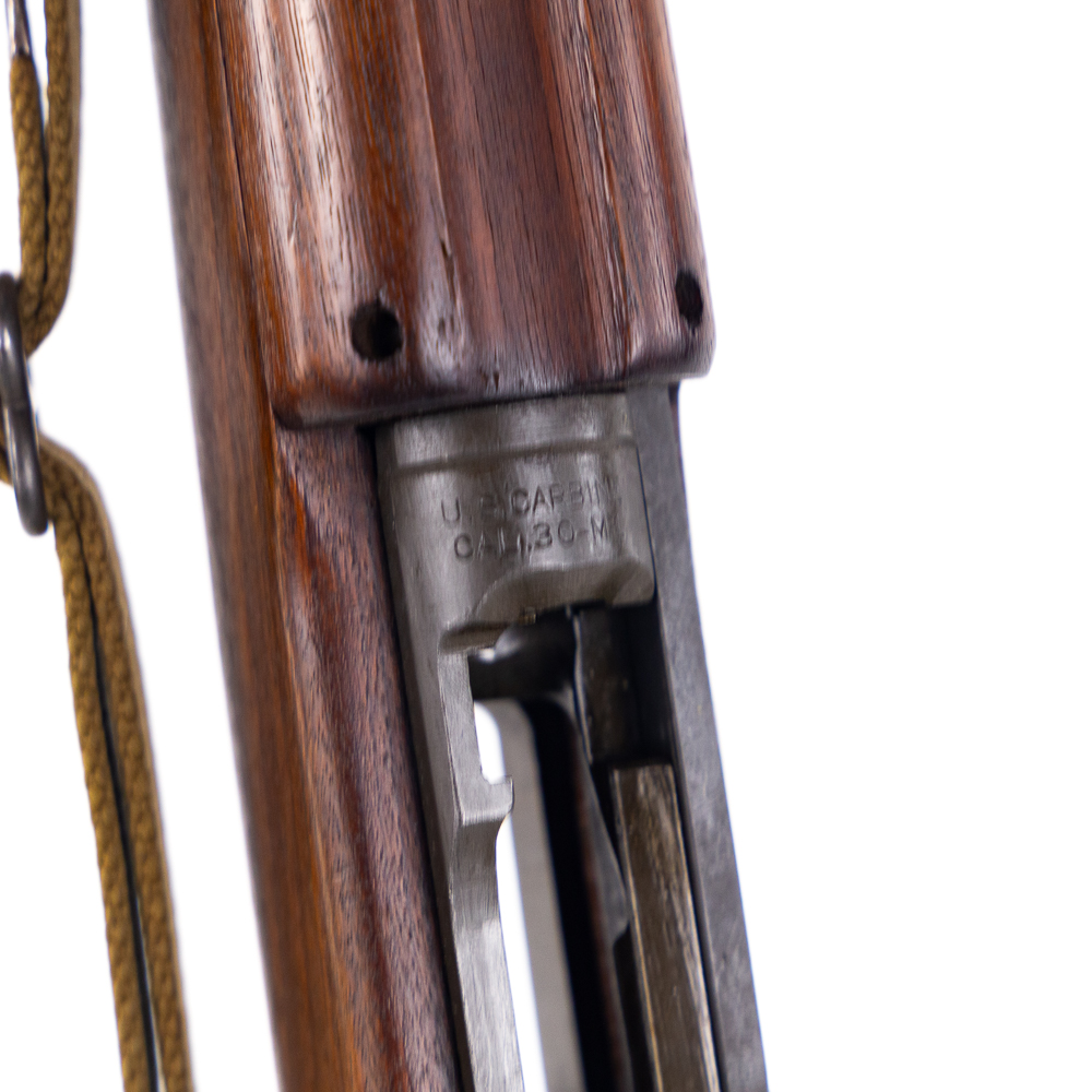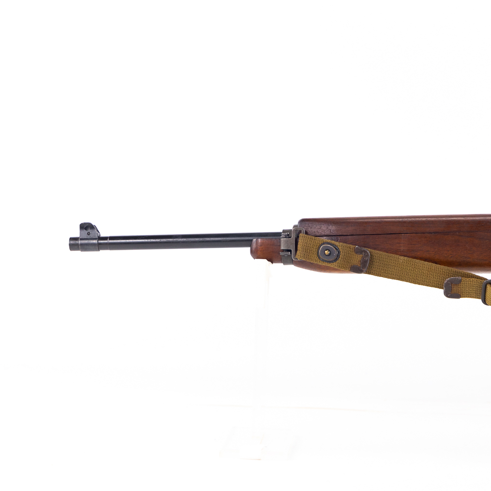 Winchester M1 30 Carbine Rifle in excellent vintage condition and a beautiful bore! Stock has “P” in a circle, “WRA GHD” in a rectangle and crossed cannons cartouches. Type one stock, flip sight and push button safety. No magazine. Canvas sling and oiler. MFG 09/42-02/44 C&R Eligible S/N:1006932