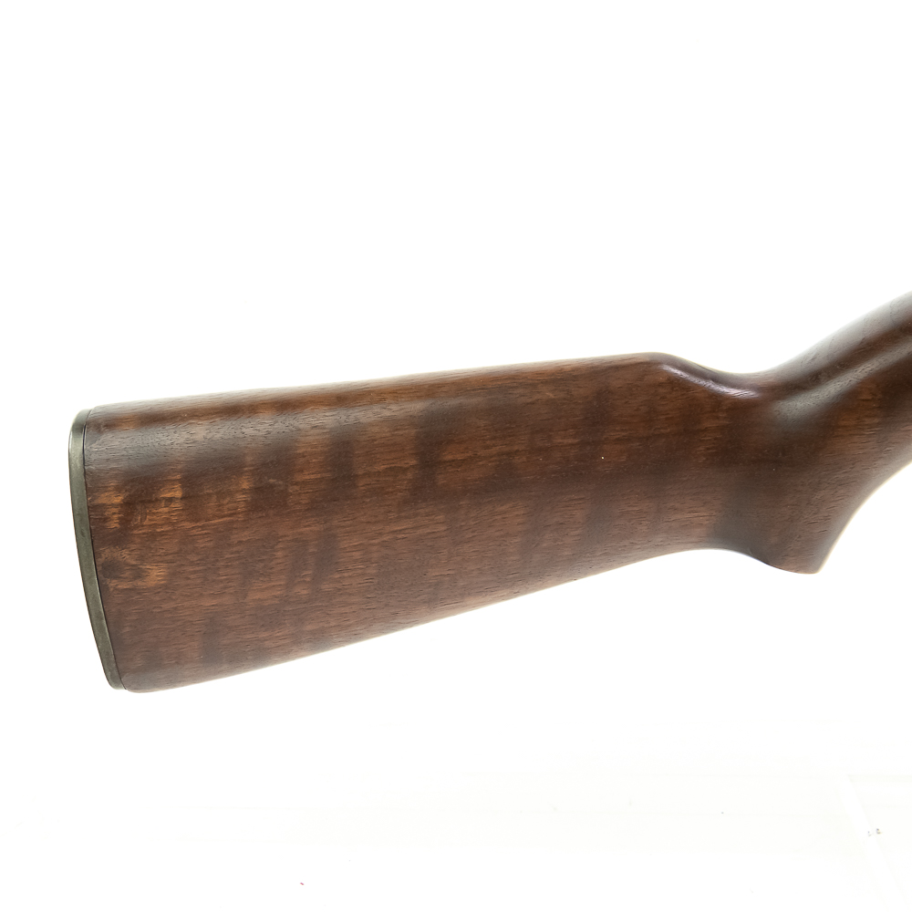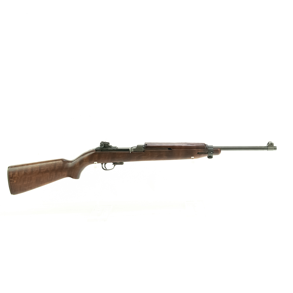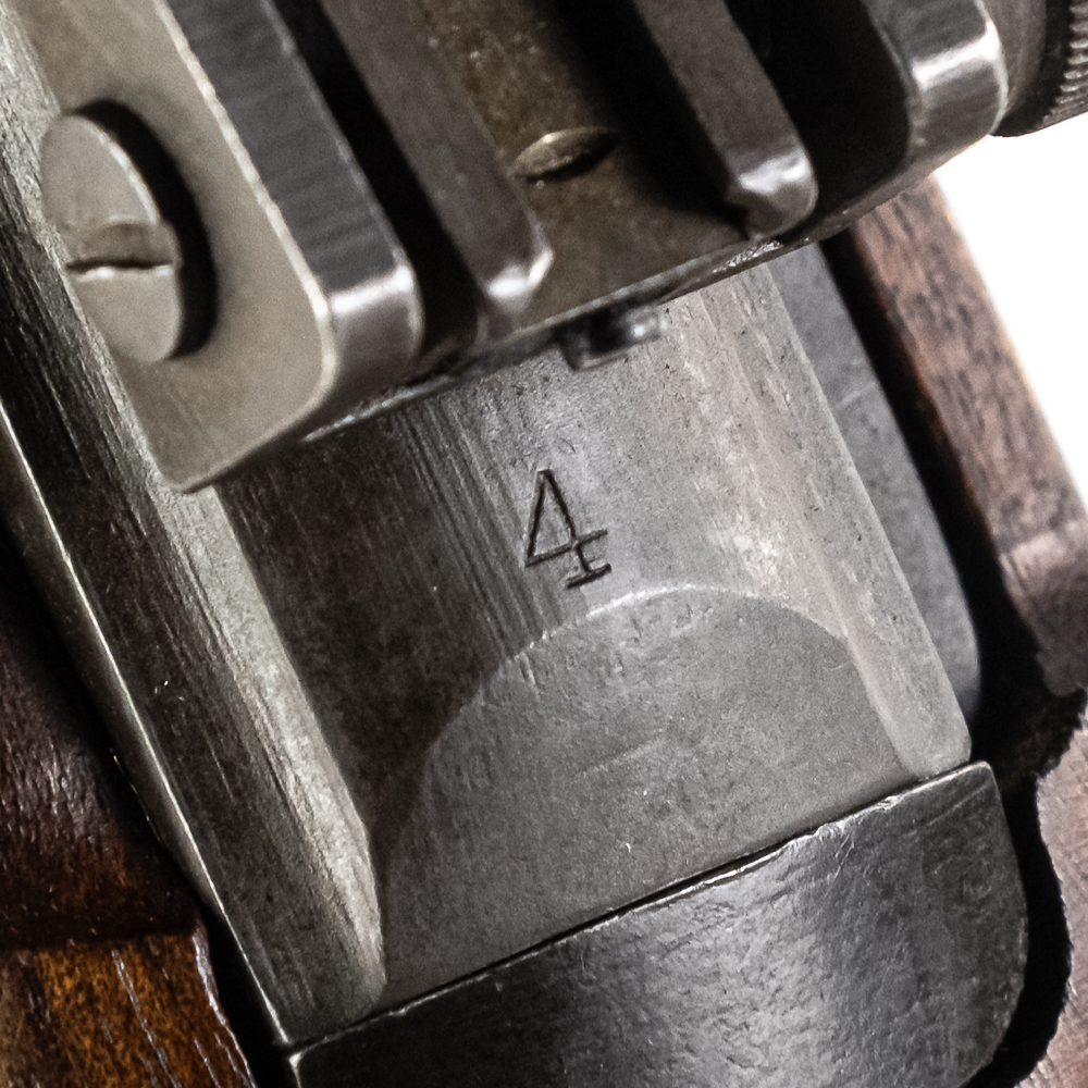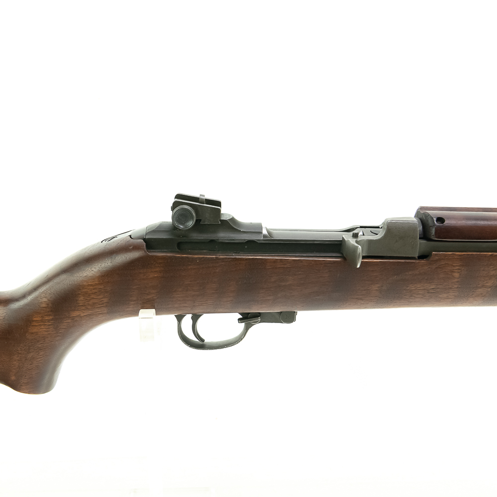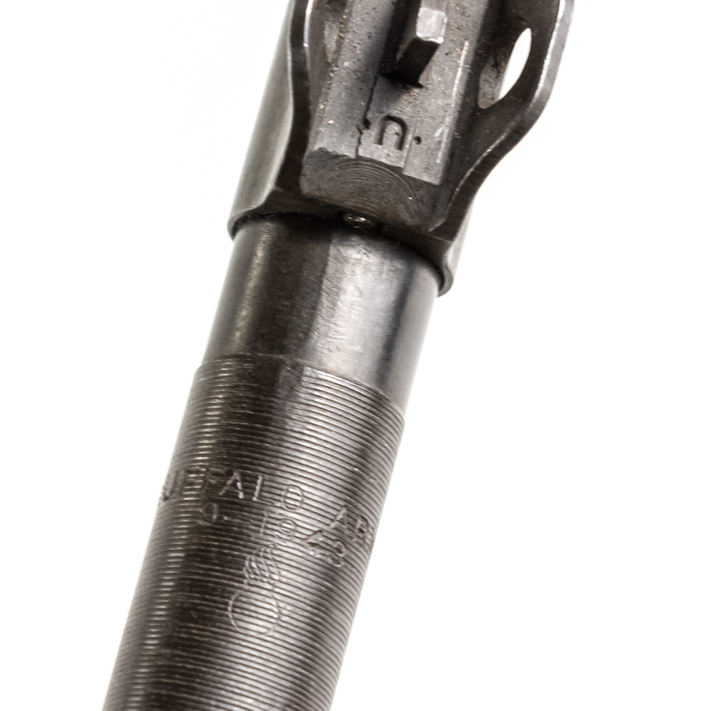 Here is a RARE, Quality Hardware M1 carbine with serial number 4. The rifle features a milled style adjustable peep sight (with crossed canon ordnance stamp) and a Type 2 barrel band. The barrel is marked “Buffalo Arms / 9-1943” with a bomb ordnance stamp and the fixed front site has a “U” proof mark. The two piece, matching stock is a nice quality birds eye maple, which shows minor knicks and scuffs, consistent with storage. The stock does not have any markings and is missing the rear sling cut out. It is speculated by many collectors that this carbine was designated as a “tool room model” or “shop guide gun” for Quality Hardware until their contract was completed. Afterwards, the rife was outfitted with the birds eye maple stock and used as a presentation piece. The barrel is super clean, with no pitting and the rifling is prominent. The trigger and action function properly. All metal parts are in very good condition and do not show any oxidation. The rifle does not come with a magazine. Please see photos for overall condition. Part of the John Bannister Collection.
