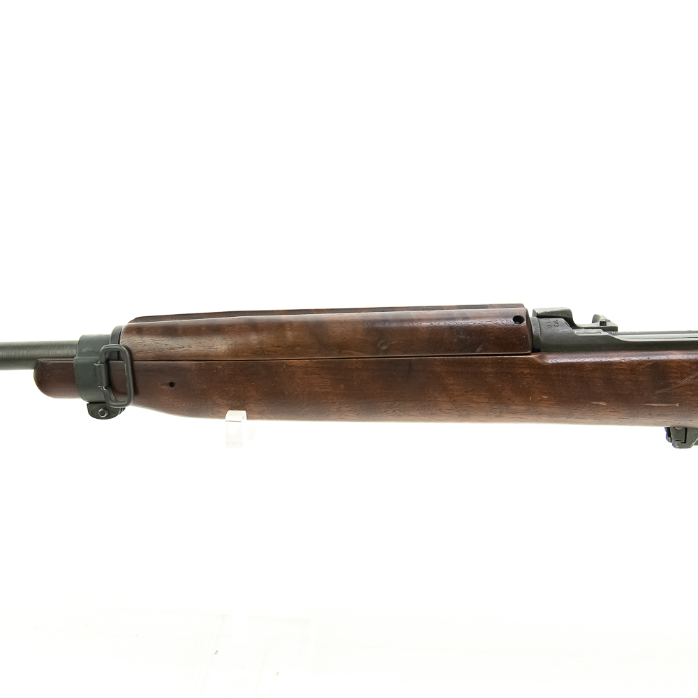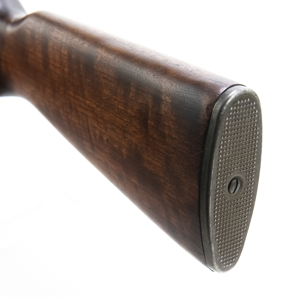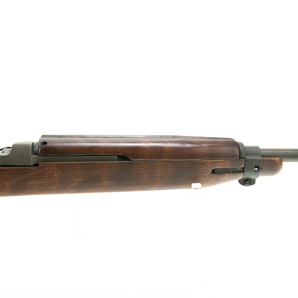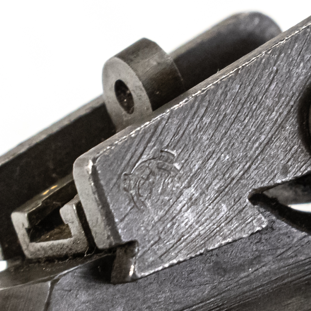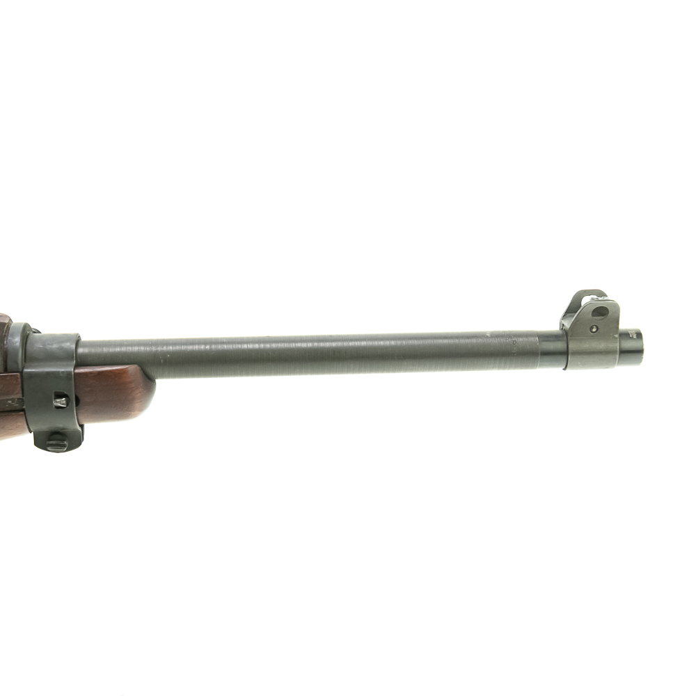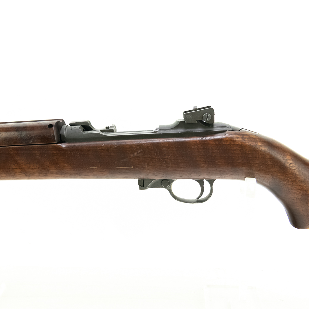 Here is a RARE, Quality Hardware M1 carbine with serial number 4. The rifle features a milled style adjustable peep sight (with crossed canon ordnance stamp) and a Type 2 barrel band. The barrel is marked “Buffalo Arms / 9-1943” with a bomb ordnance stamp and the fixed front site has a “U” proof mark. The two piece, matching stock is a nice quality birds eye maple, which shows minor knicks and scuffs, consistent with storage. The stock does not have any markings and is missing the rear sling cut out. It is speculated by many collectors that this carbine was designated as a “tool room model” or “shop guide gun” for Quality Hardware until their contract was completed. Afterwards, the rife was outfitted with the birds eye maple stock and used as a presentation piece. The barrel is super clean, with no pitting and the rifling is prominent. The trigger and action function properly. All metal parts are in very good condition and do not show any oxidation. The rifle does not come with a magazine. Please see photos for overall condition. Part of the John Bannister Collection.