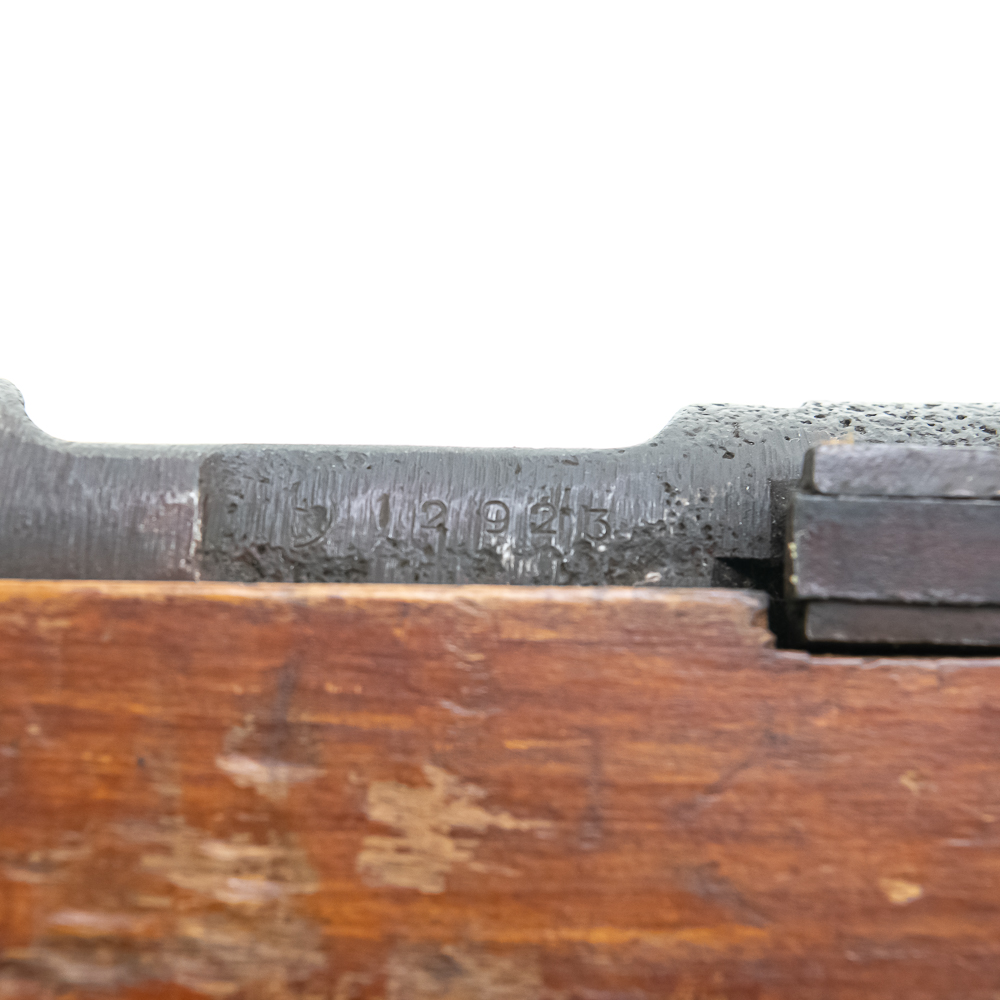 RARE! NAVY “SPECIAL 99″ Arisaka 7.7 22” Carbine in very good condition with wear and some oxidation. No numbers on internal parts, which is normal for this variation rifle. The bore is very good with some frosting. Receiver has crude casting. Small anchor on chamber hood. C&R Eligible S/N:12923