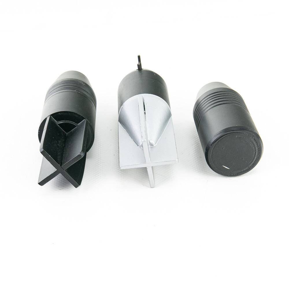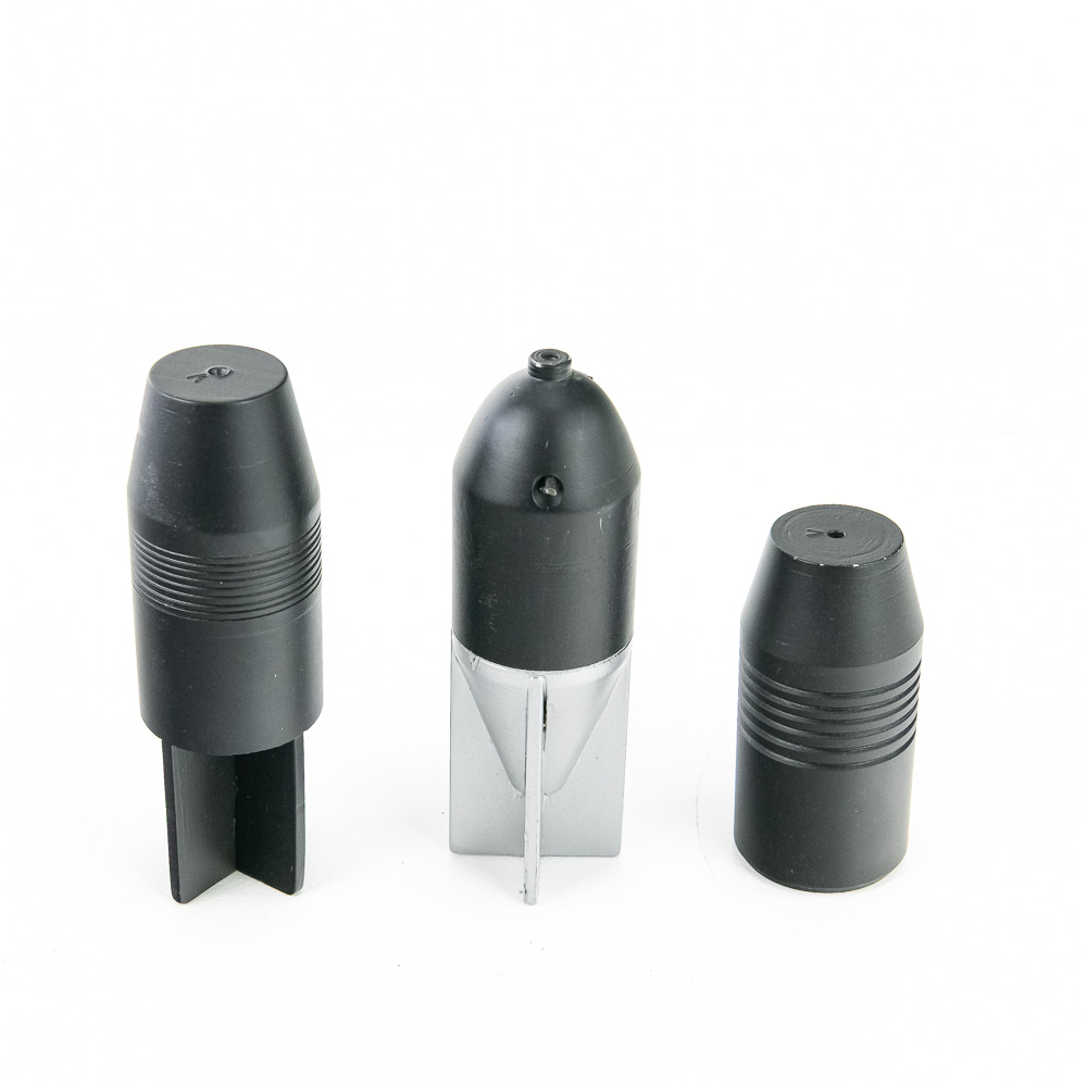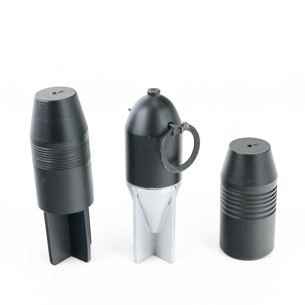 Lot of three (3) reproduction Italian Tromboncino Grenades. These reproductions are of extremely high quality and tight tolerance, matching originals and fitting perfectly in the M28 rifle grenade launcher. Included are examples of the High Explosive S.R. 2 grenade, the Training Round grenade, and Inert practice round of metal and wood filler. These are associated with the Carcano M91TS Rifle with M28 Grenade Launcher up for auction in the John Bannister Collection. (Inv #: 2008265) Please see photos for overall condition. 2 x (L 4.74”, Dia 1.5”) 1x (L 3”, Dia 1.5”)
