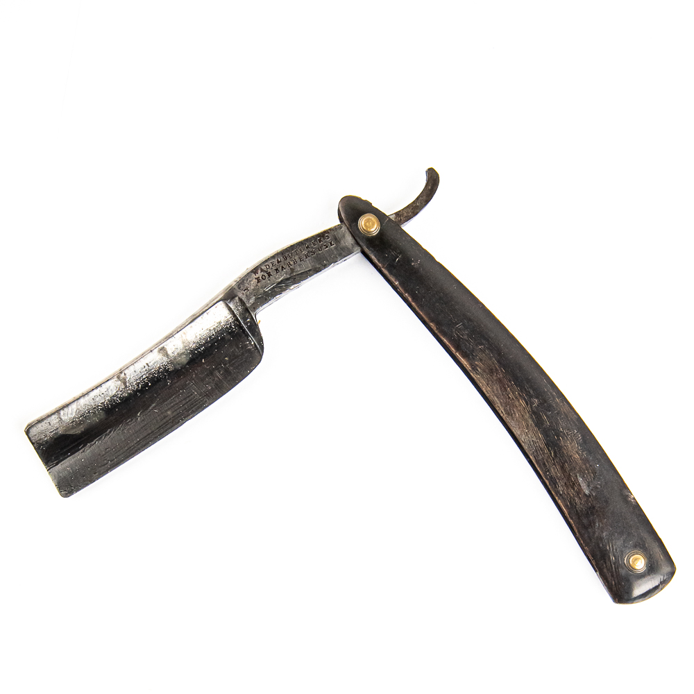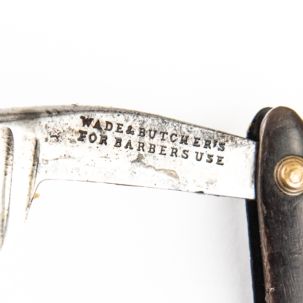 Vintage Straight Razor by Wade & Butcher’s, with black horn scales that exhibit fair signs of use and age, like scratches and small chips. The face is blank, Tang reads “Wade & Butcher’s For Barbers Use”, and reverse is blank. Blade is in overall great condition, with nice luster and minimal tarnish noted, has cosmoline protectant applied. Original Box NOT included. See photos and bid accordingly.