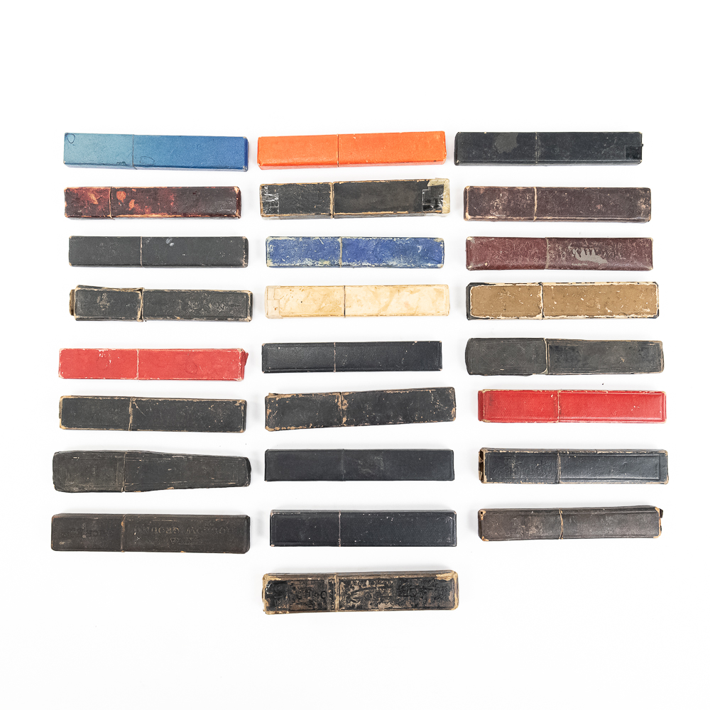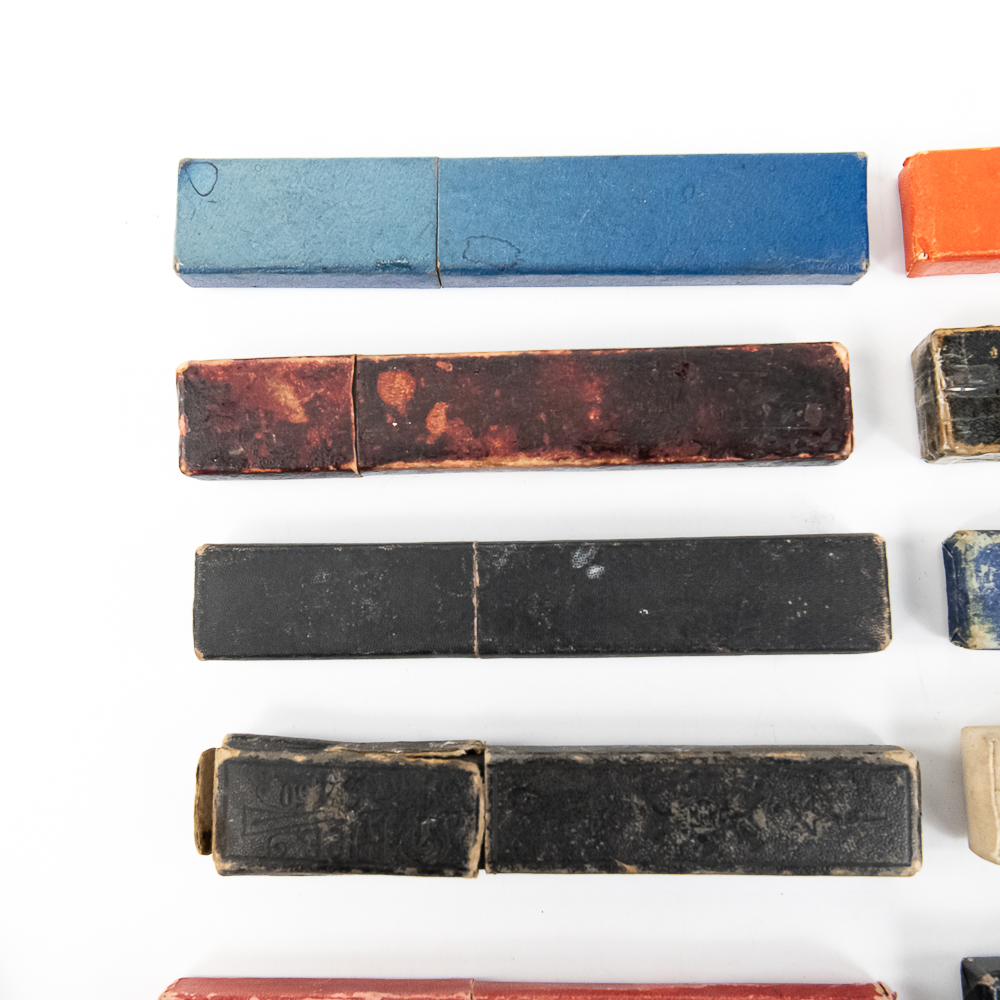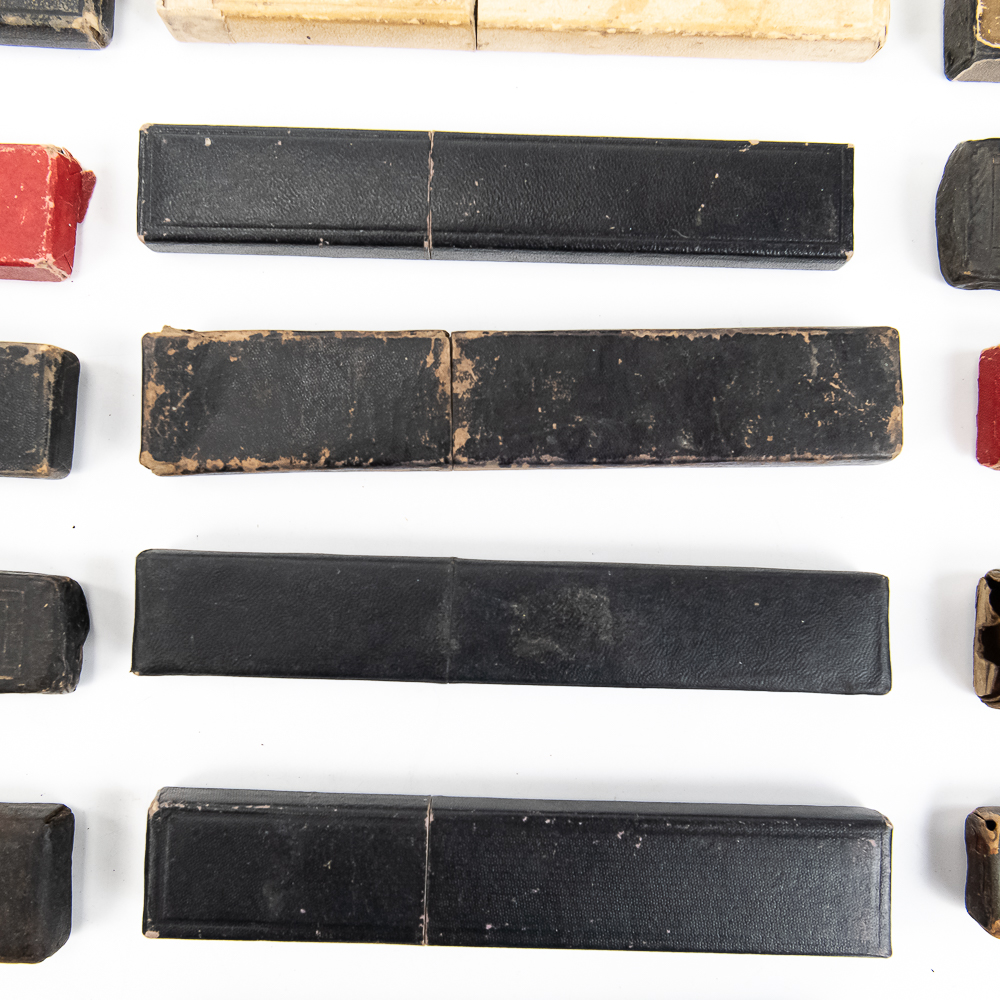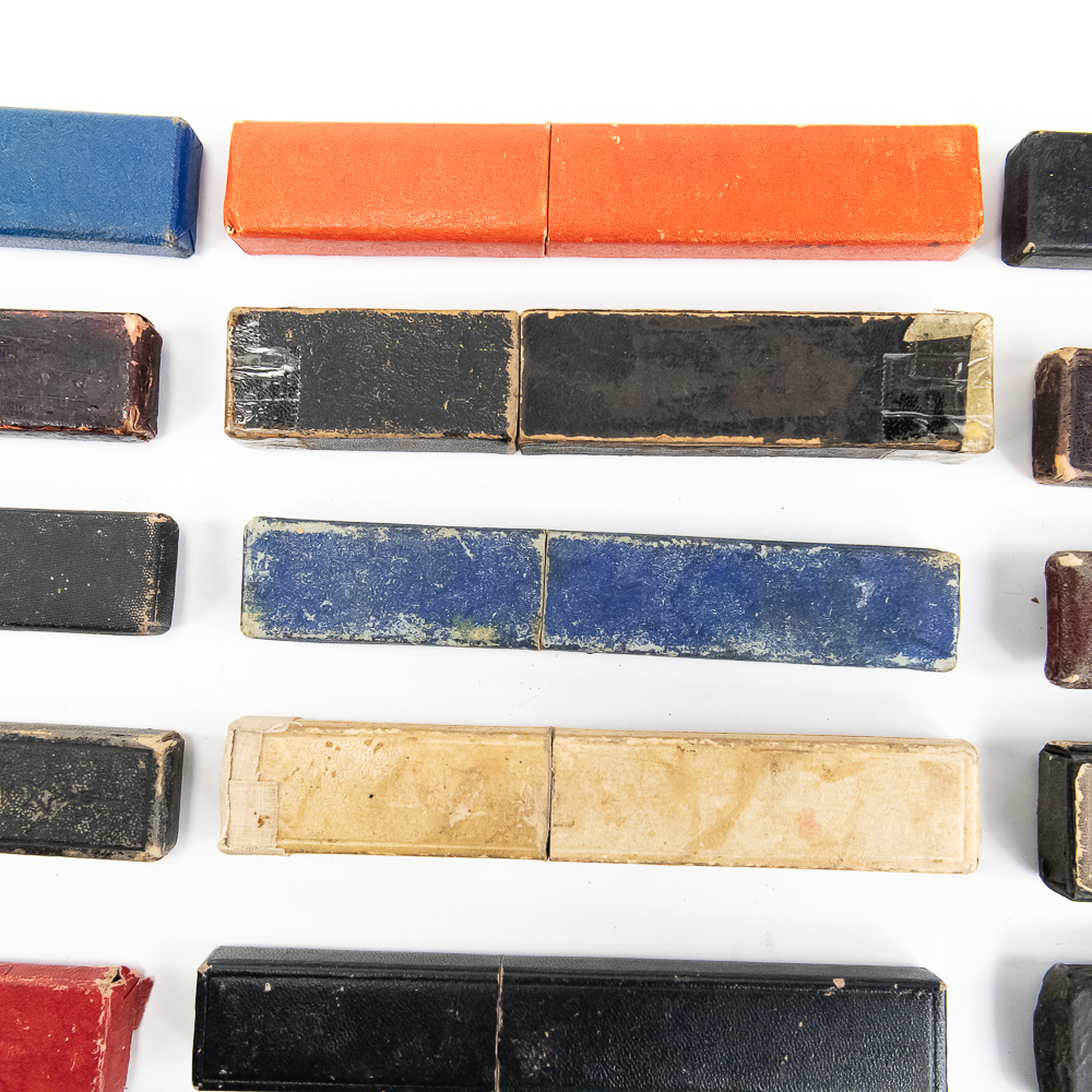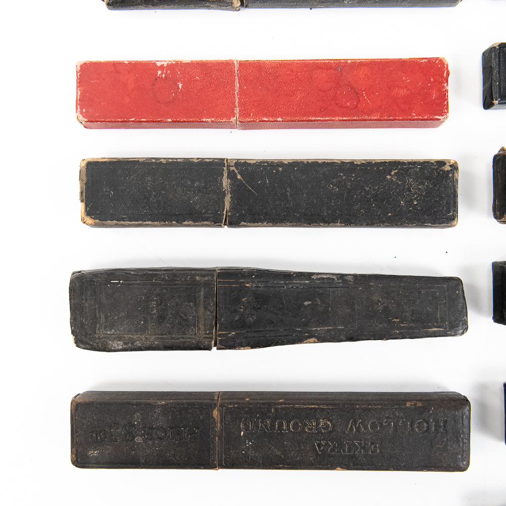 Large lot of miscellaneous Straight Razor boxes, with notable names such as H. Boker & Co, Wade & Butcher, Peter J. Michels, S. R. Droescher Inc, etc. Conditions Vary, see photos and bid accordingly.