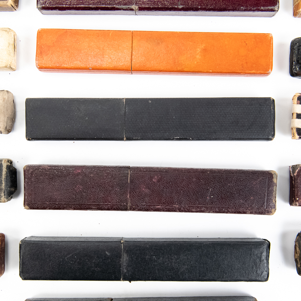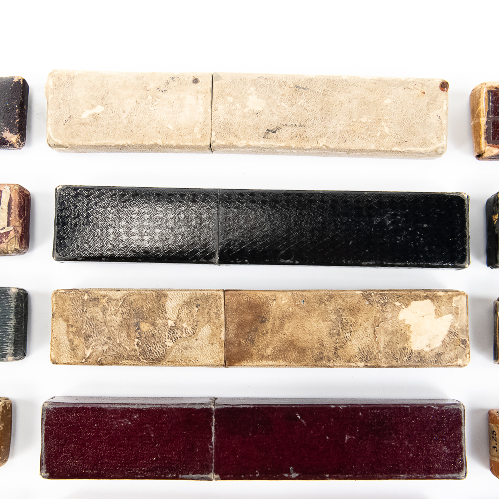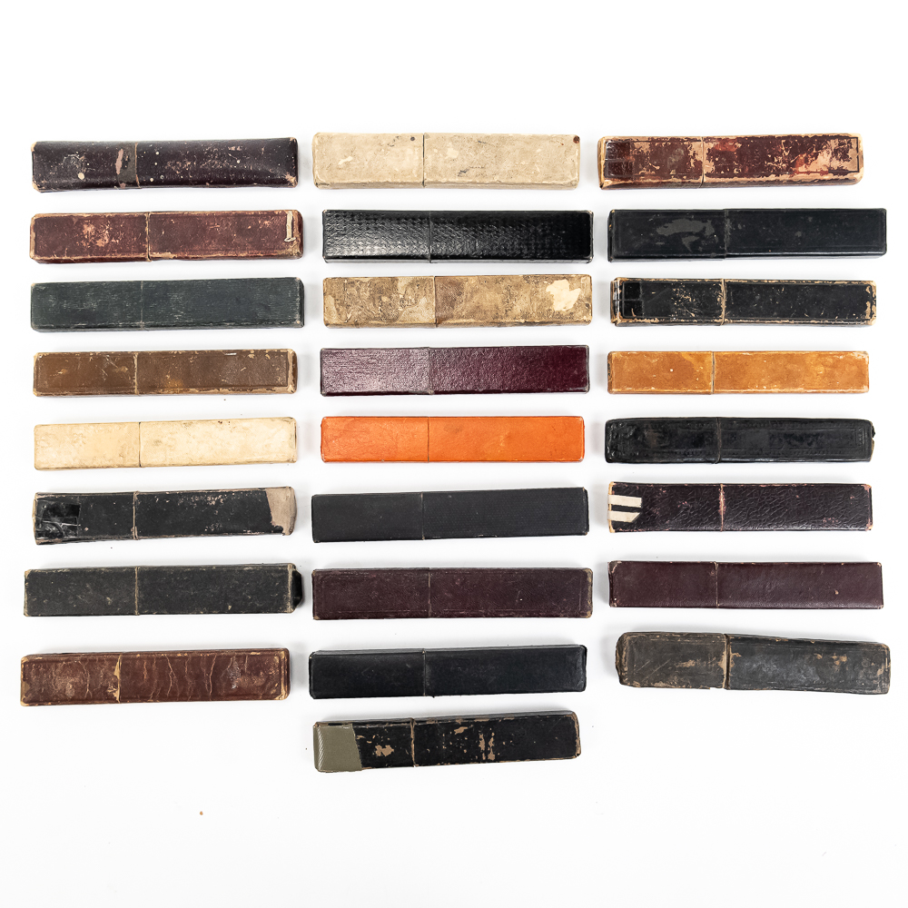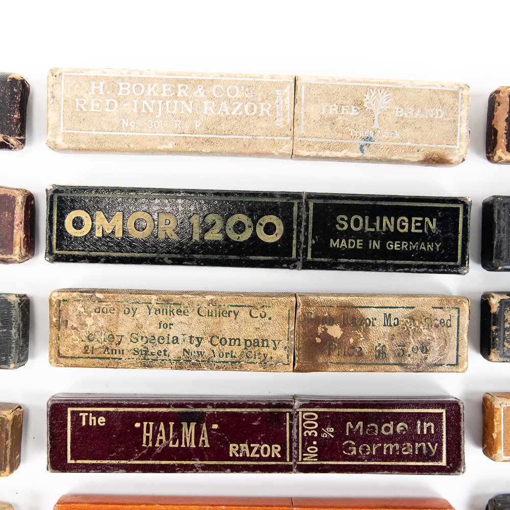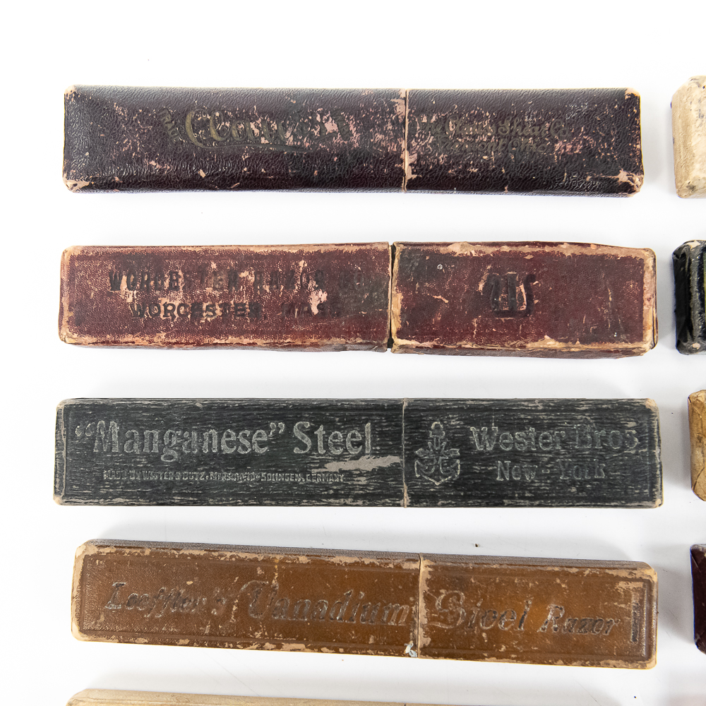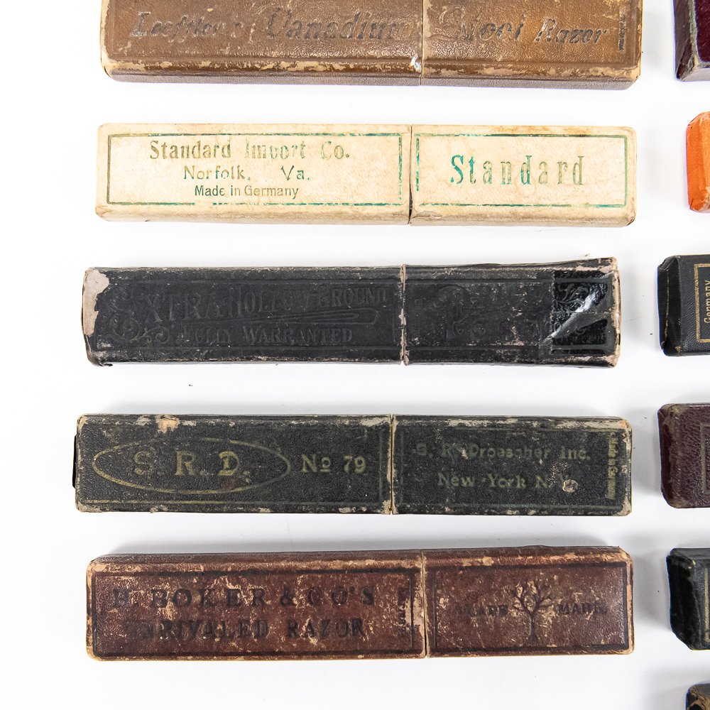 Large lot of miscellaneous Straight Razor boxes, with notable names such as H. Boker & Co, Wade & Butcher, Clauss, Genco, and Case. Conditions Vary, see photos and bid accordingly.