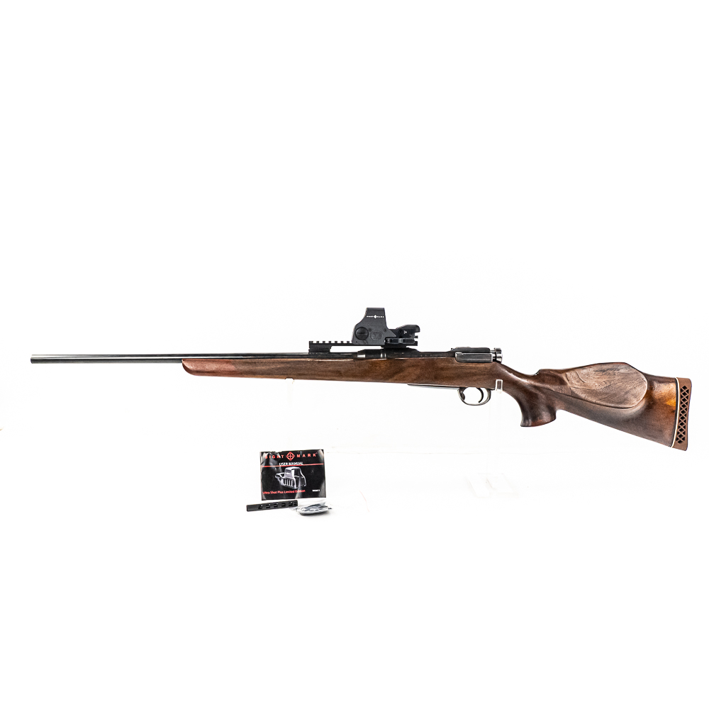 Sporterized Arisaka Type 38 6.5Jap Rifle in very good condition with a good bore. Mounted is a Sightmark red dot sight and a Monte Carlo stock. S/N:71733