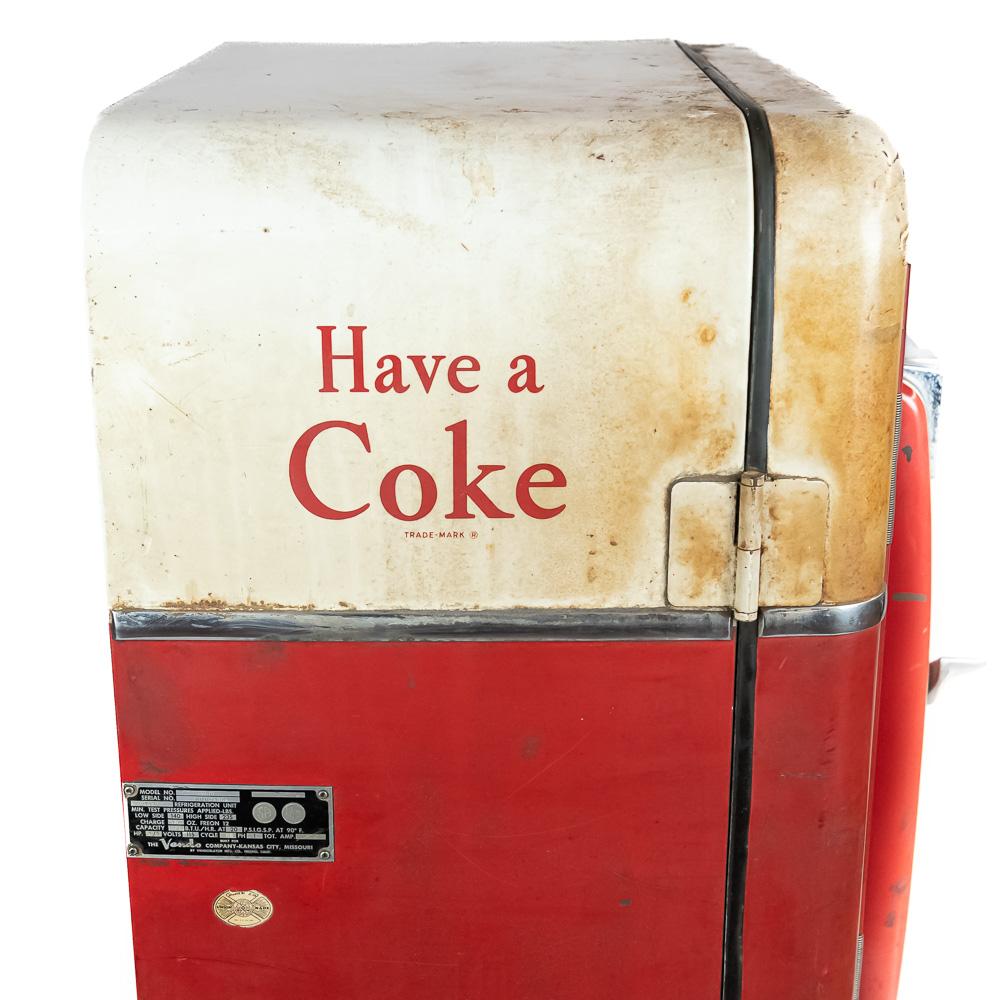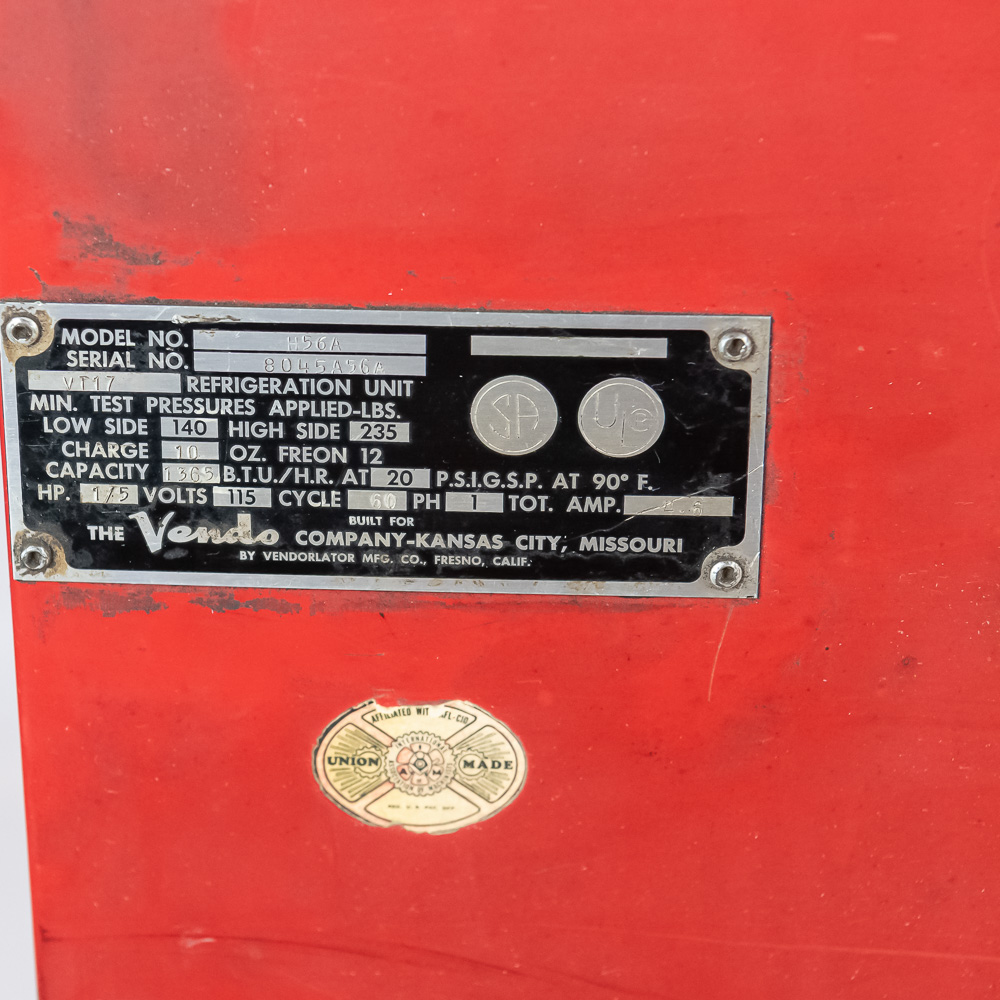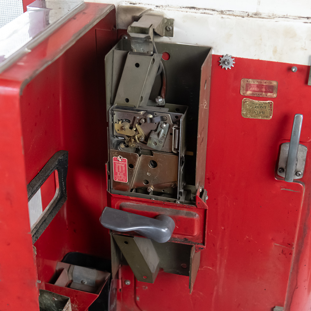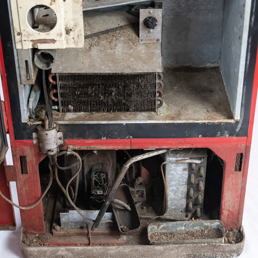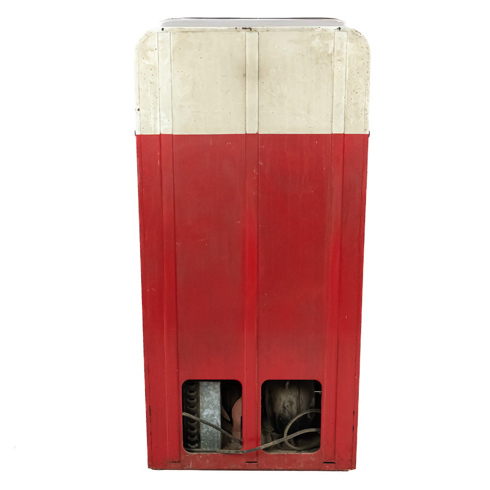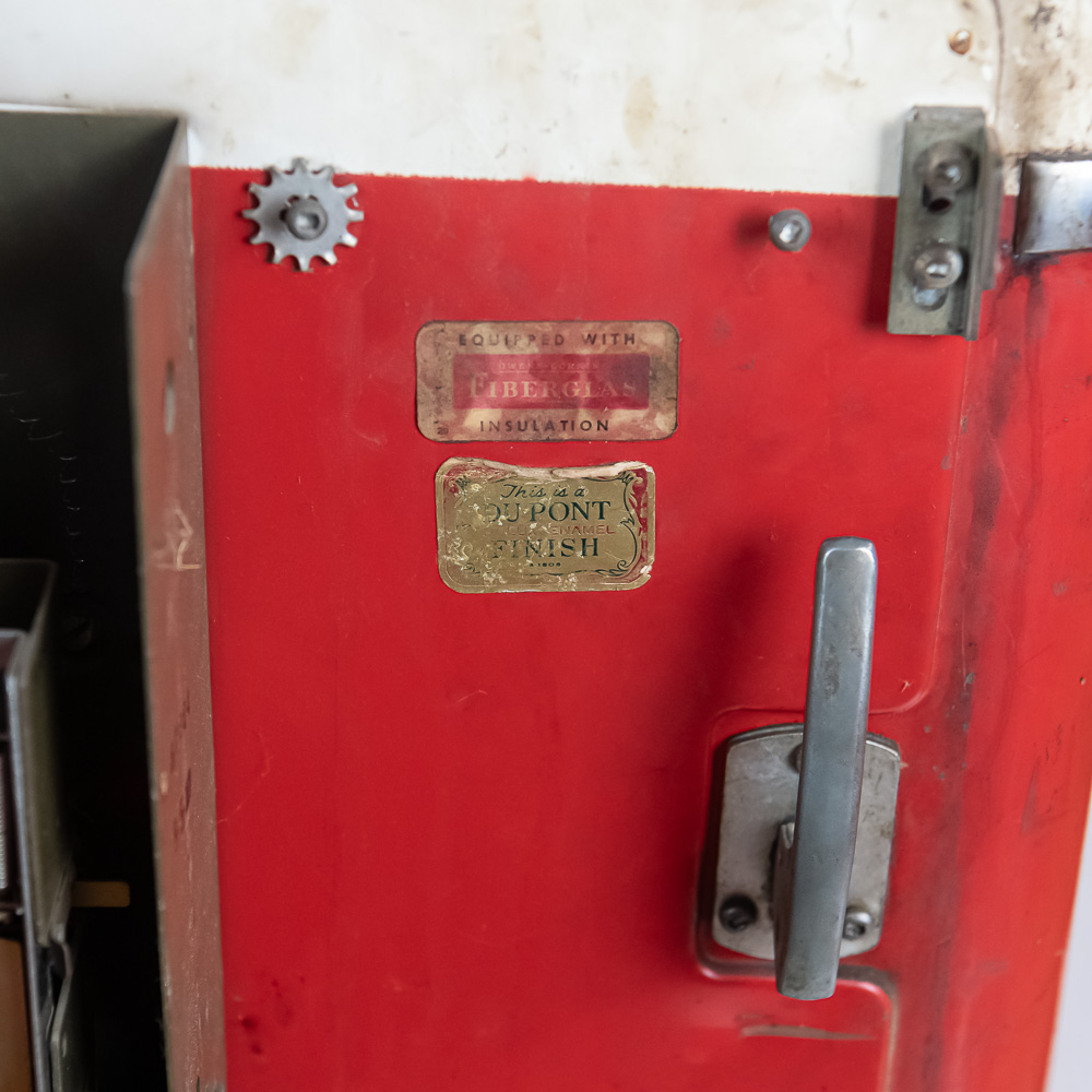 Coin mech, compressor (untested), and interior bottle mech intact. Comes with key for lock. Measures 52″ tall, 26″ wide, 23″ deep.