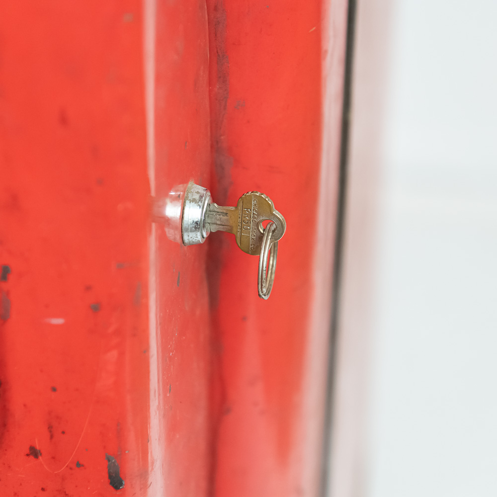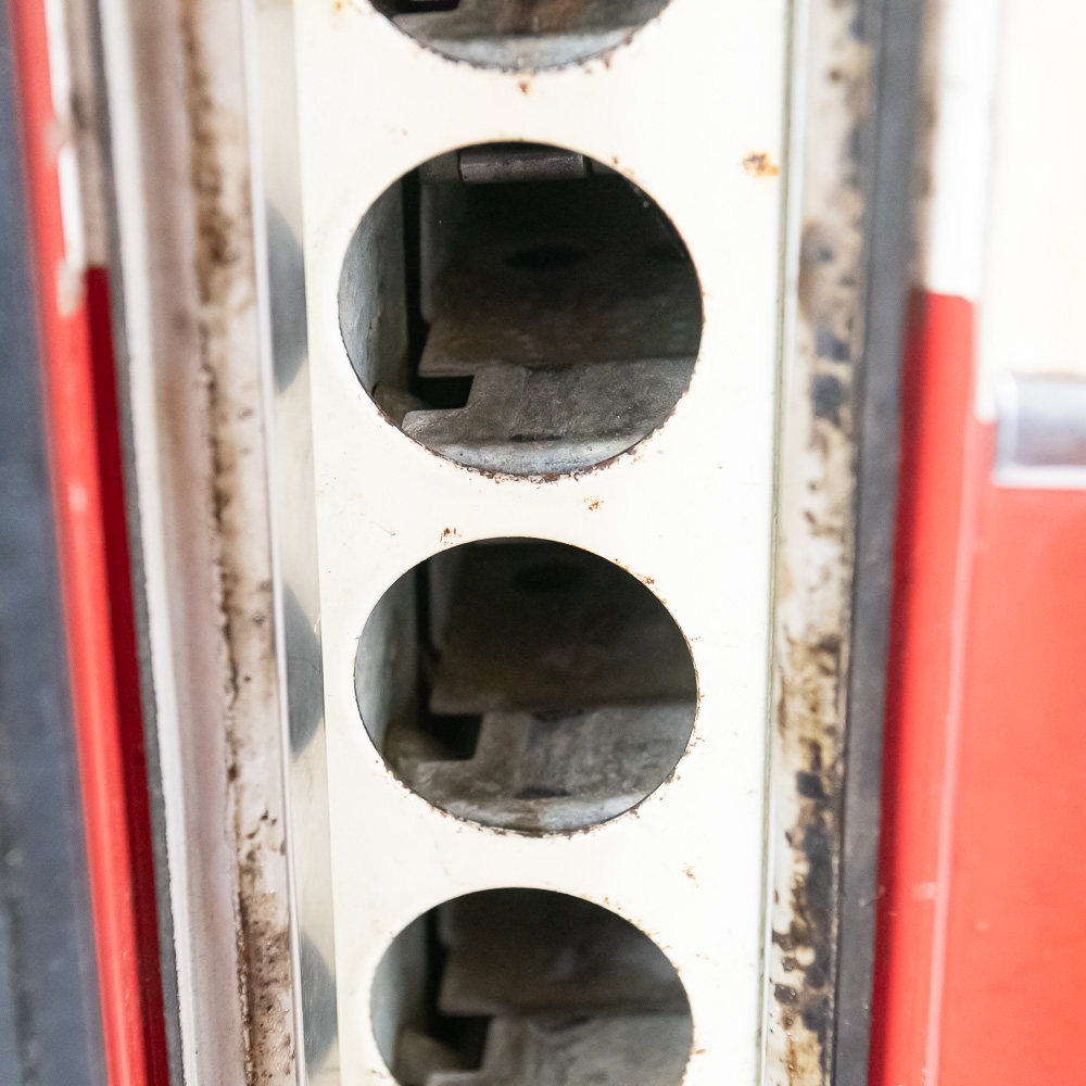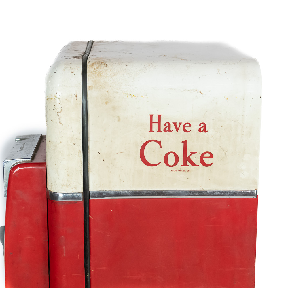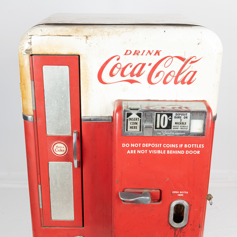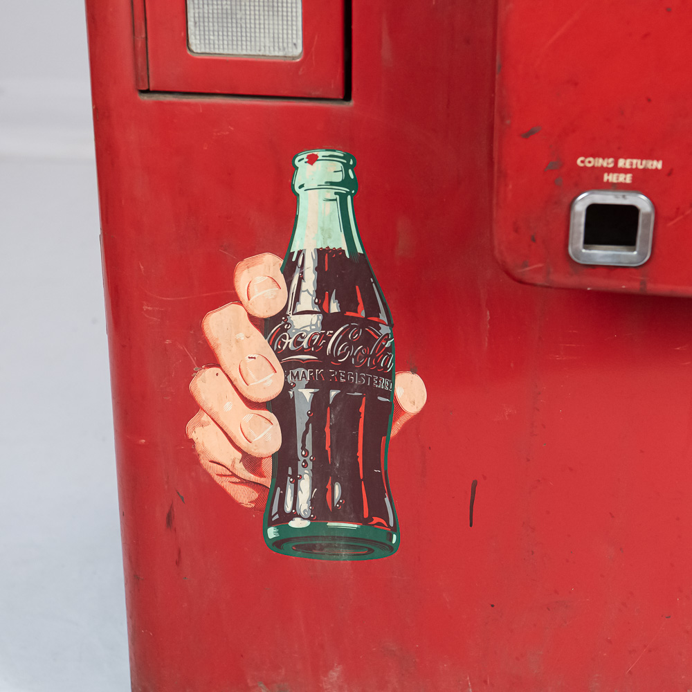 Coin mech, compressor (untested), and interior bottle mech intact. Comes with key for lock. Measures 52″ tall, 26″ wide, 23″ deep.