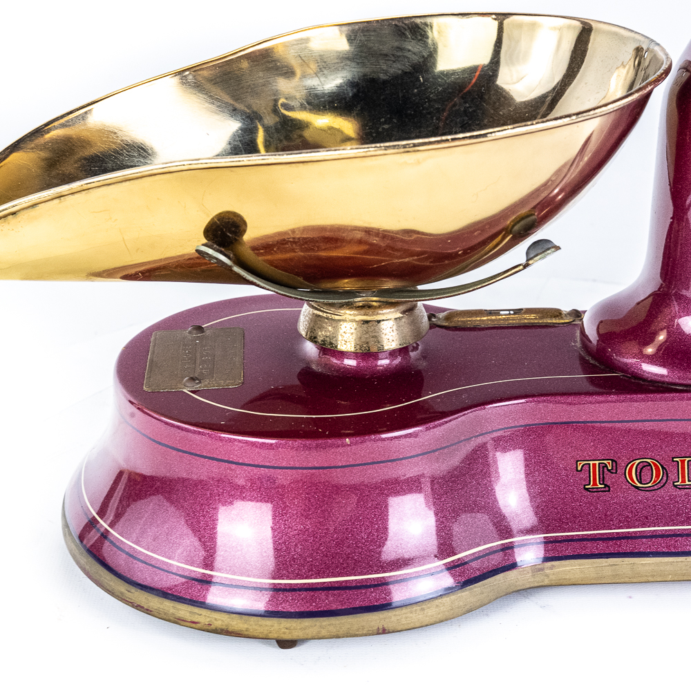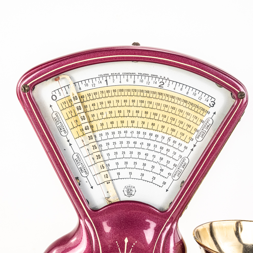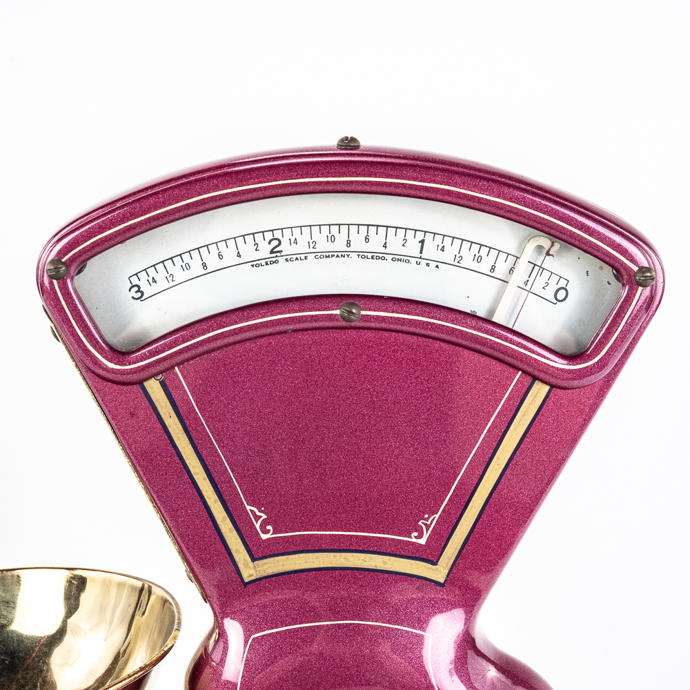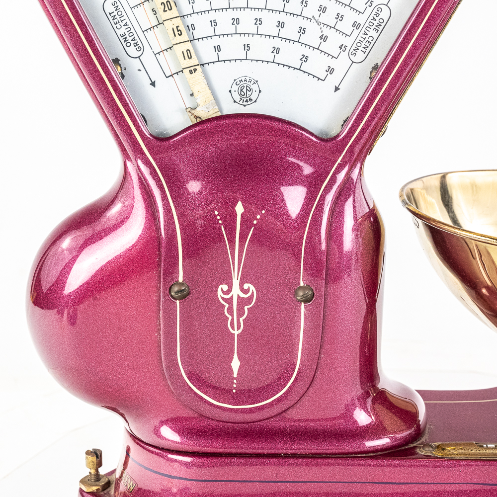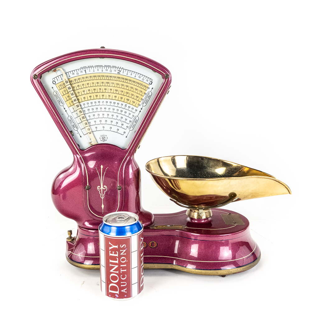 Mint, restored condition. Works correctly. Purple metal flake with pinstriping. Great accent piece for your kitchen counter or soda fountain.