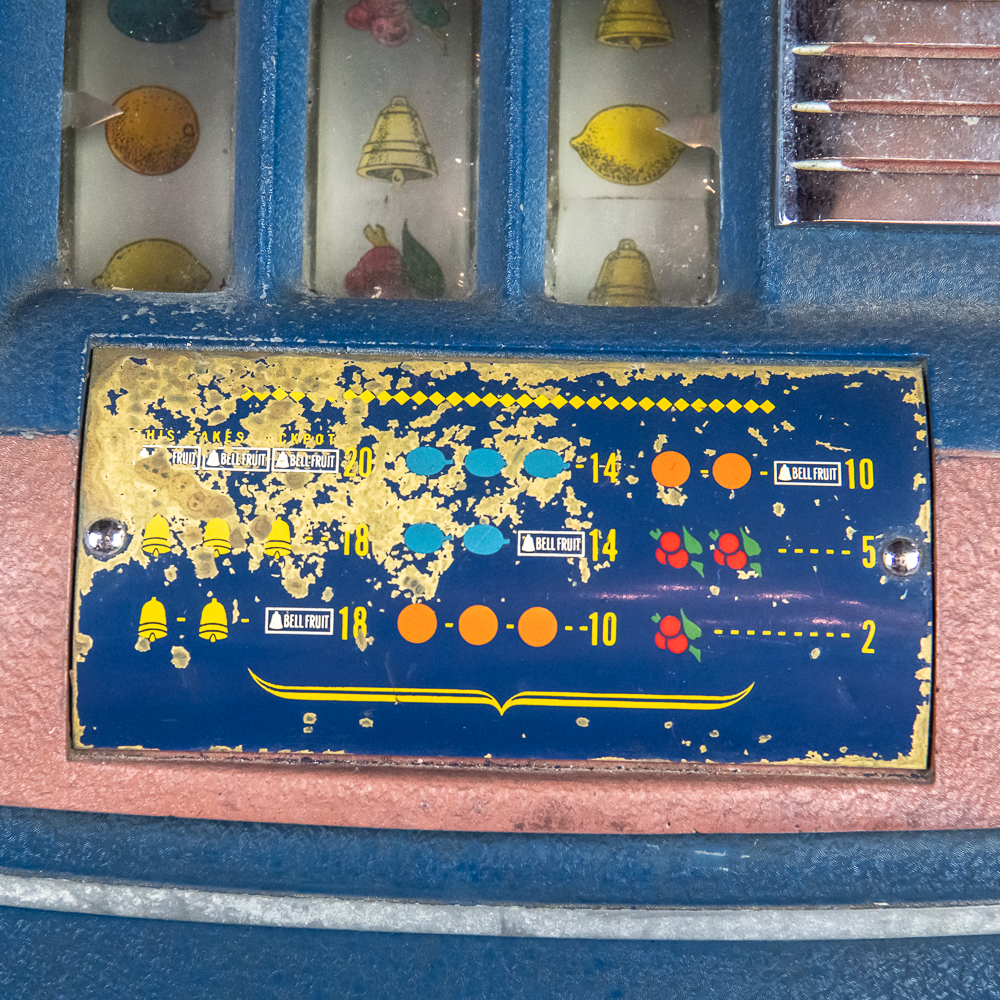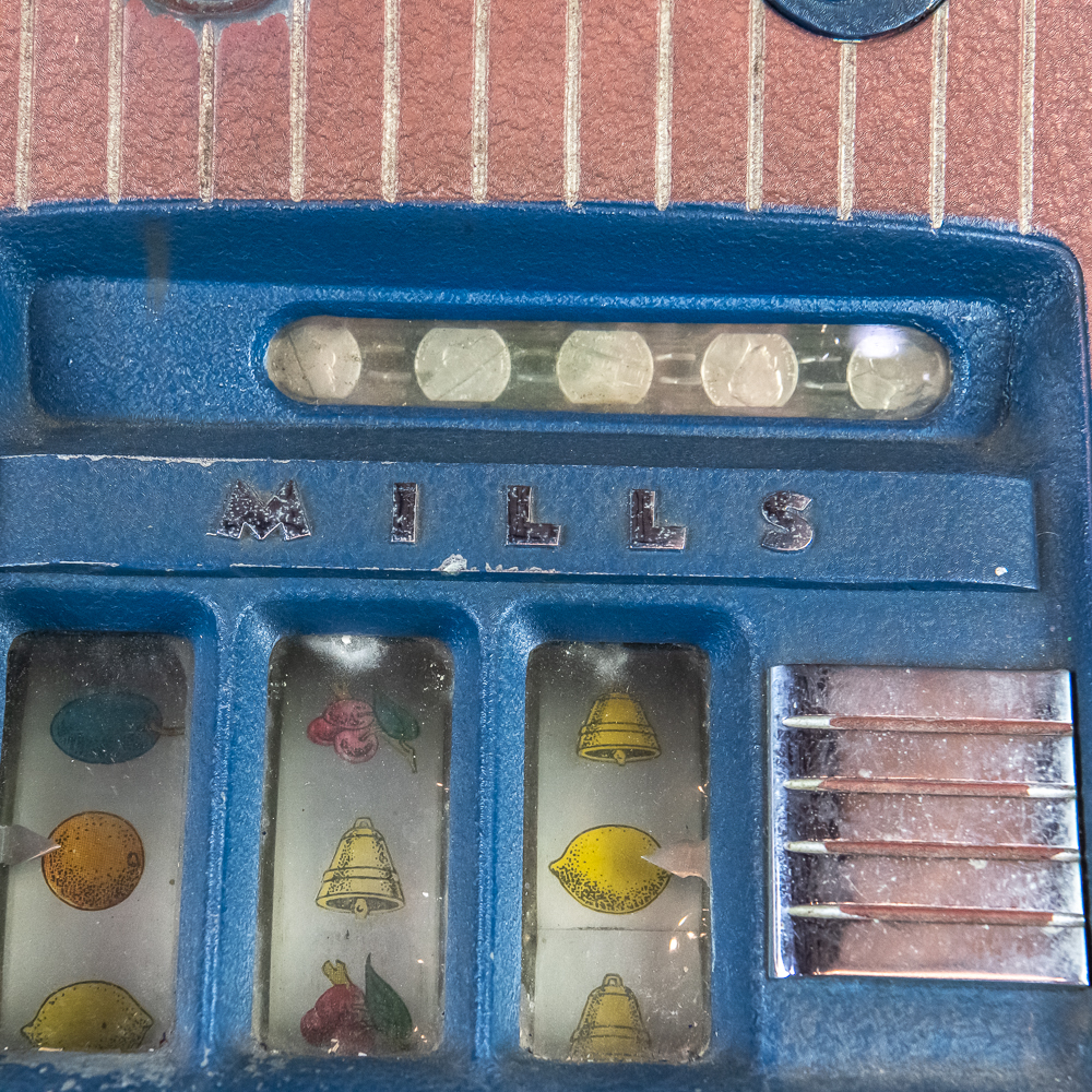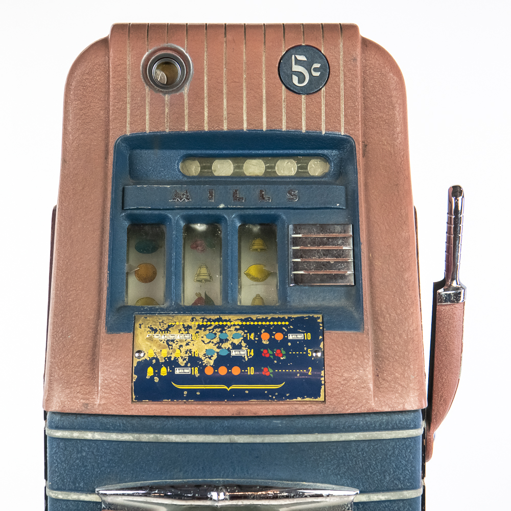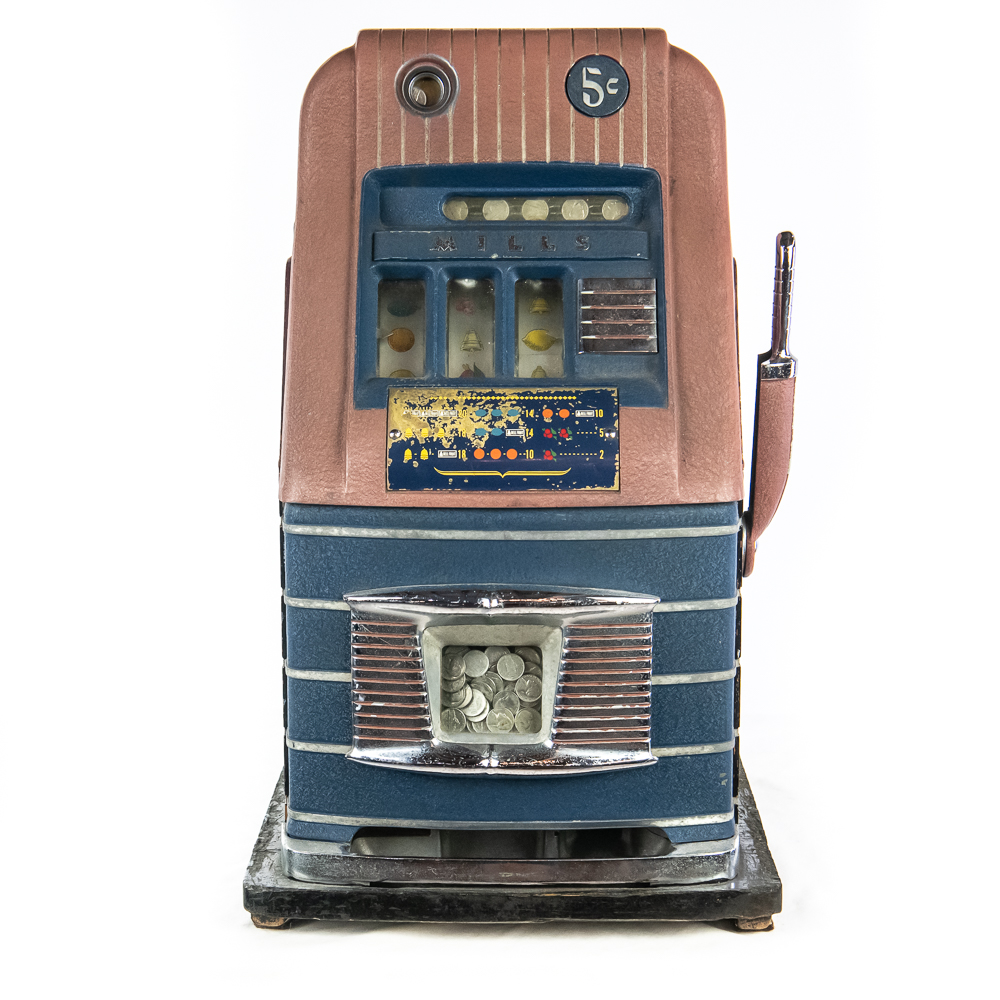 Original 3 reel, front jackpot, original back door, lock but no key. Machine shows some light wear with some light paint chips and scuffs. Overall a nice looking machine that works as it should. 15″ D X 16″ W X 27″ H