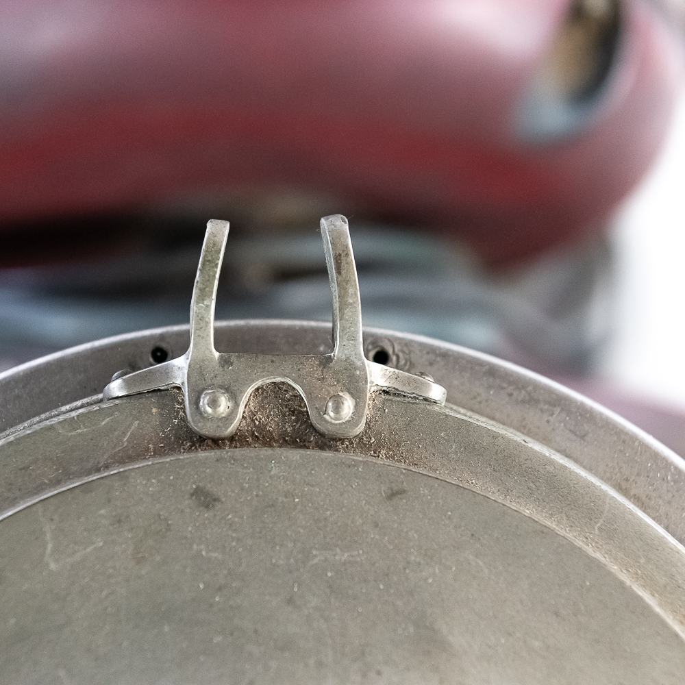 Circa 1940’s cast aluminum carousel horse most likely from a San Antonio Roller Works or a Mangles carousel. All we know is that it came off of a carousel that was parted out in southern Illinois in the 1970’s. The horse is a jumper with very nice paint. Comes mounted on a pole and a steel diamond plate base. Comes with a pair of stirrups but no straps or bridle.
