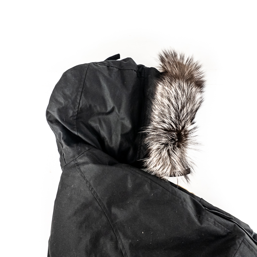 Hard to find Canada Goose & Earnest Sewn Chilliwack down bomber jacket. Perfectly accented with real fox fur trimmed hood . Limited edition of only 300 made; in excellent like new overall condition (extremely clean example) size 2XL. A real beauty that you will appreciate in the upcoming winter months; stop fearing winter. Don’t feel like freezing this winter? stop wearing that beat up jacket and get into some HIGH GRADE QUALITY!! A Must have and great gift idea. Please use photos to judge condition and bid accordingly.