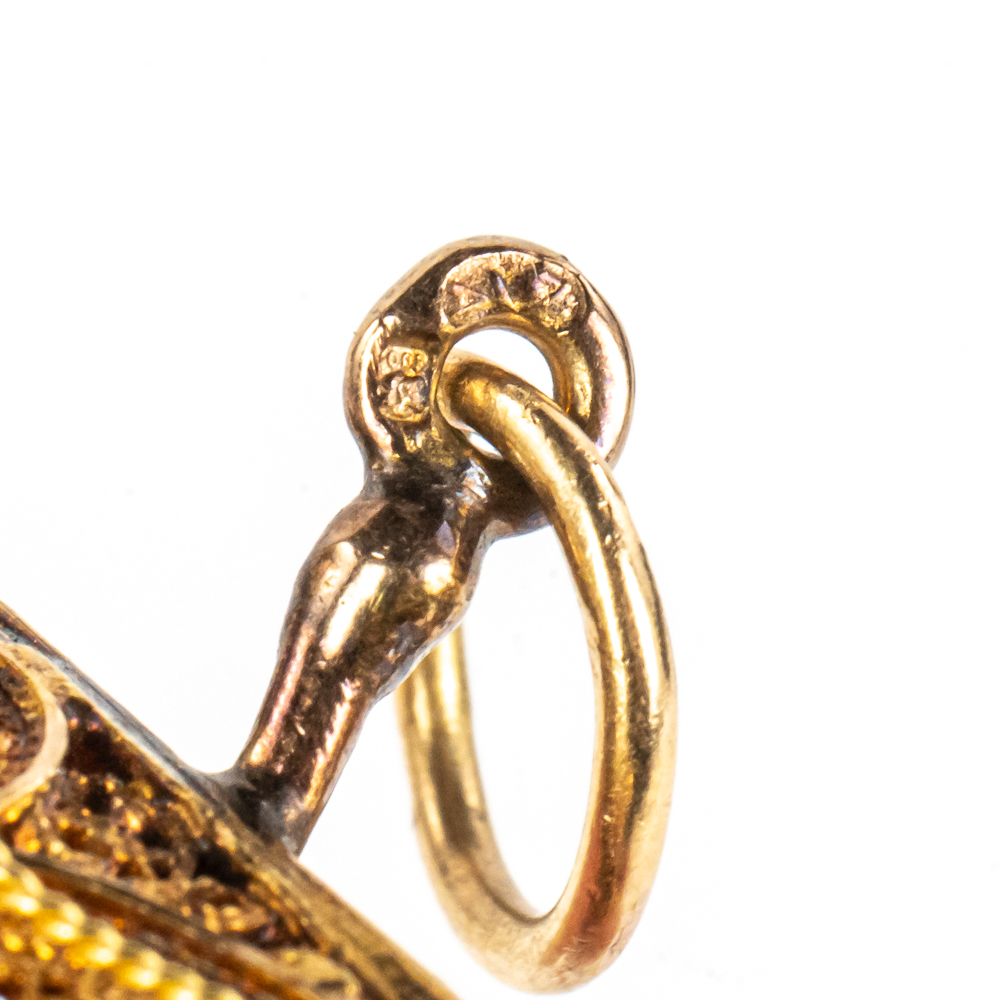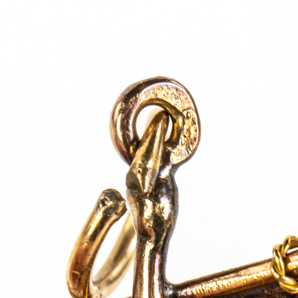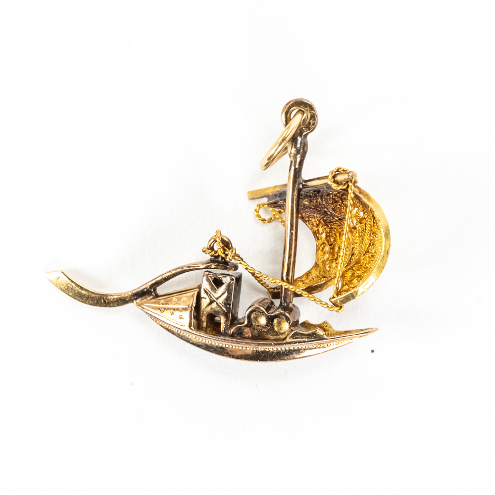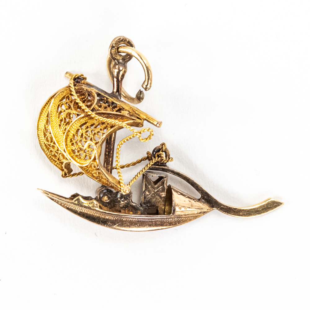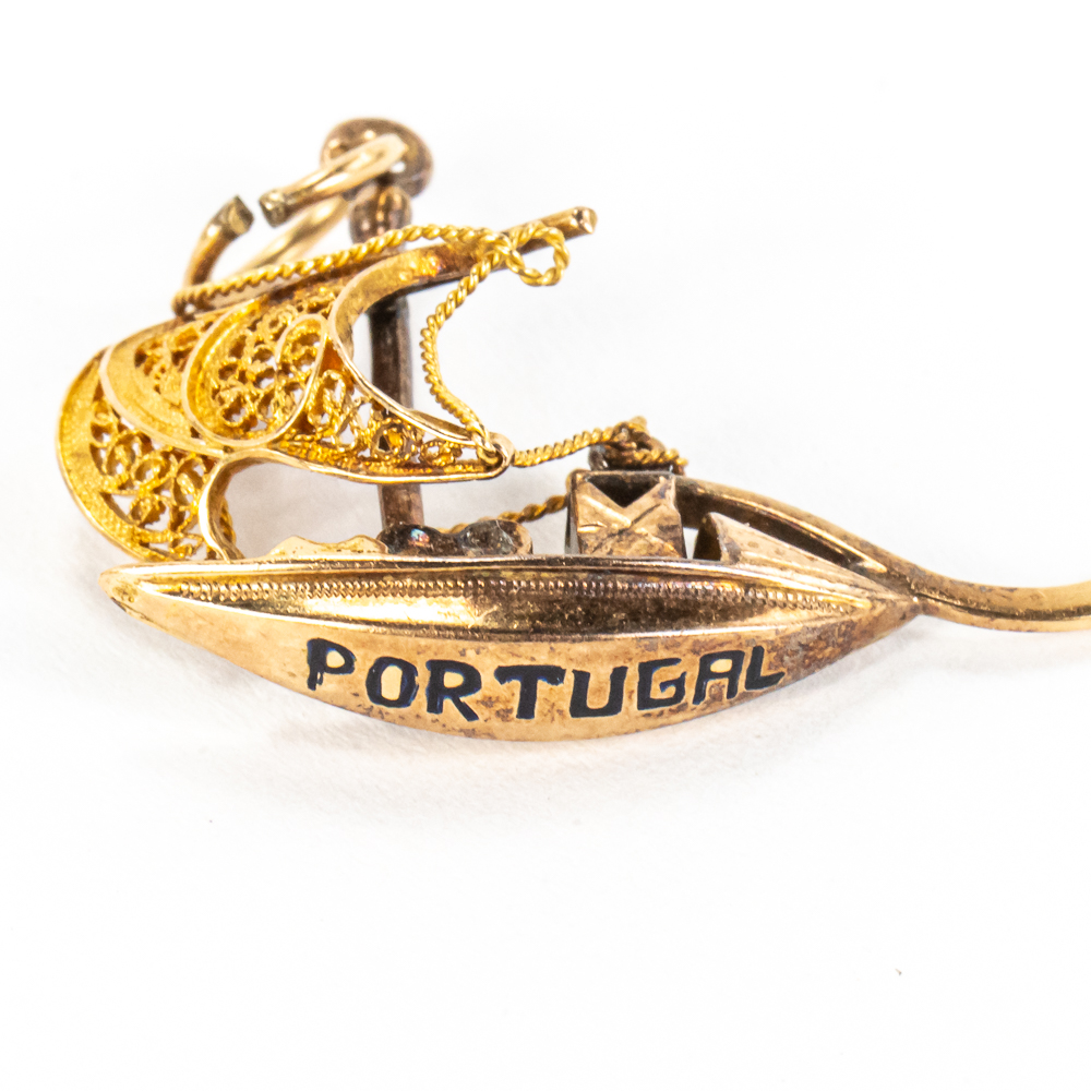 Ornate and unmarked 14k yellow gold high relief 3-D Portuguese Galleon Ship Charm Pendant. Stunning craftsmanship; presents extremely well. Very good overall condition with minor discoloration. Only mark is “Portugal” on bottom. Roughly 1’t x 1.5″l, holds14k under the acid test; dissipates under 18k. Total weight of 4.4 lovely grams. Fantastic gift idea, perfect addition to your lineup. Please use photos to judge condition and bid accordingly.