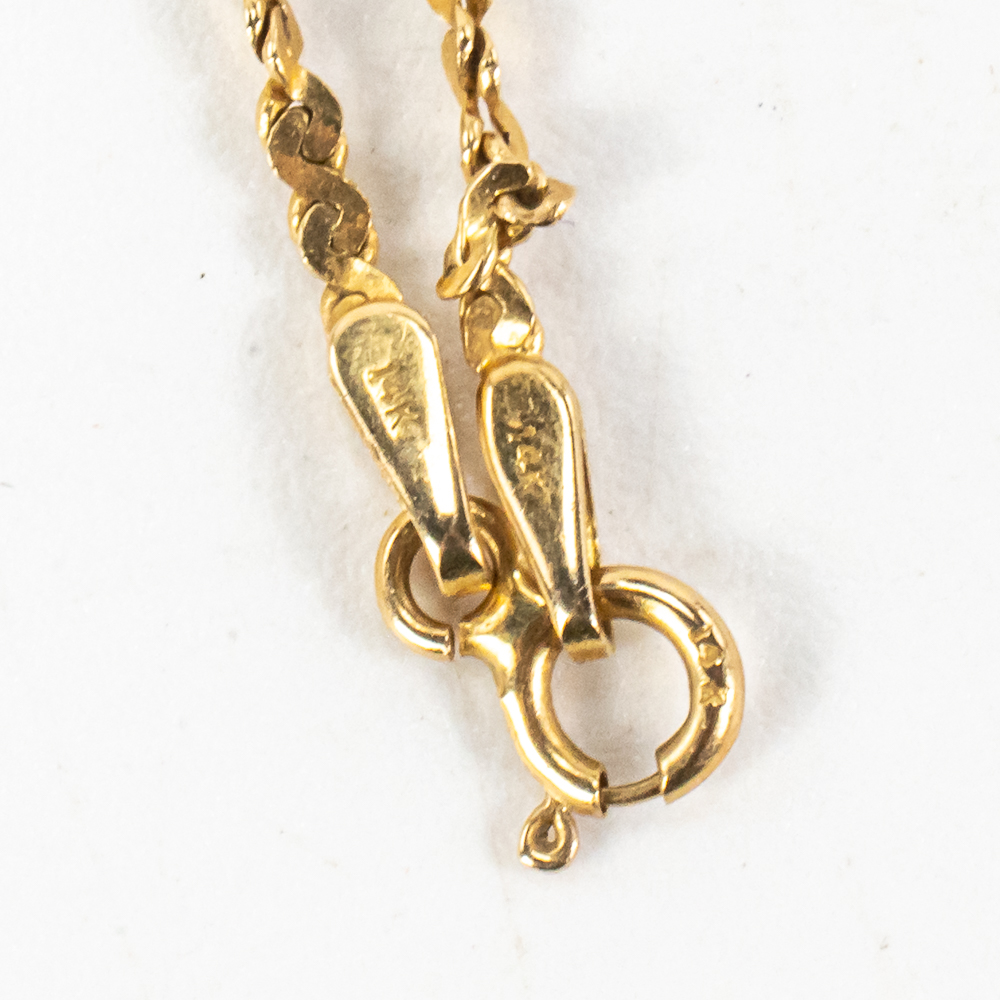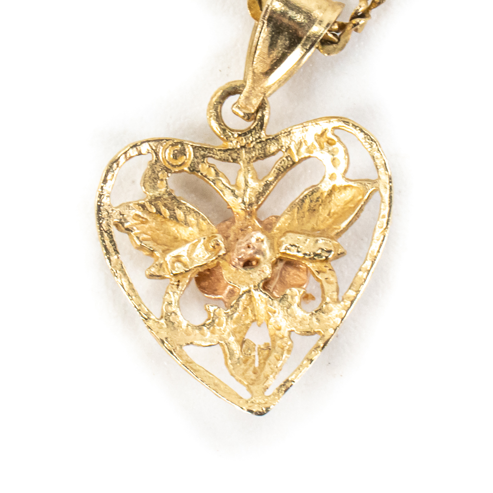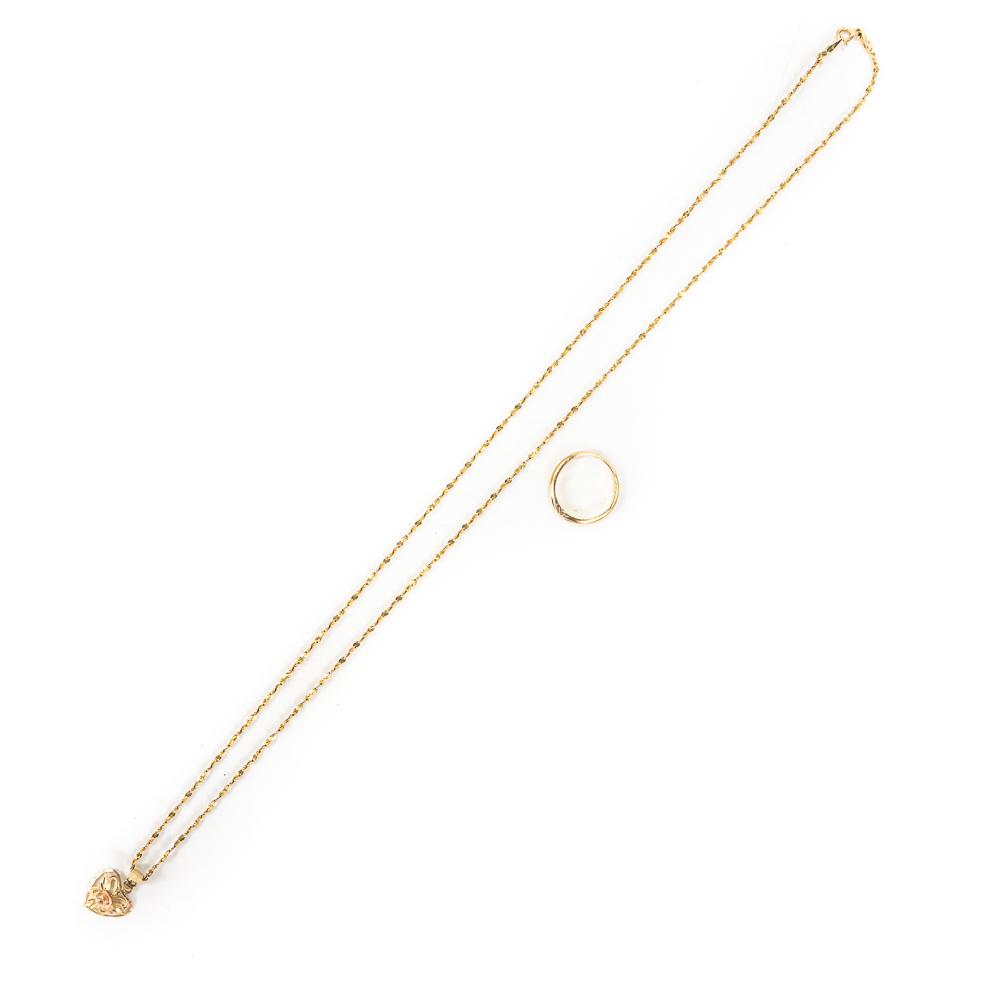 Attractive 14k yellow gold 24″ braided necklace perfectly accented with ornate heart pendant with rose gold center highlight; very good overall condition with a total weight of 5 lovely grams ALONG WITH 14k yellow gold engagement ring with lovely star etching with a total weight of 2 grams sized 5.5. Purchase worry free item is stamped and tested. Perfect addition to your collection, fantastic gift idea. Please use photos to judge condition and bid accordingly.