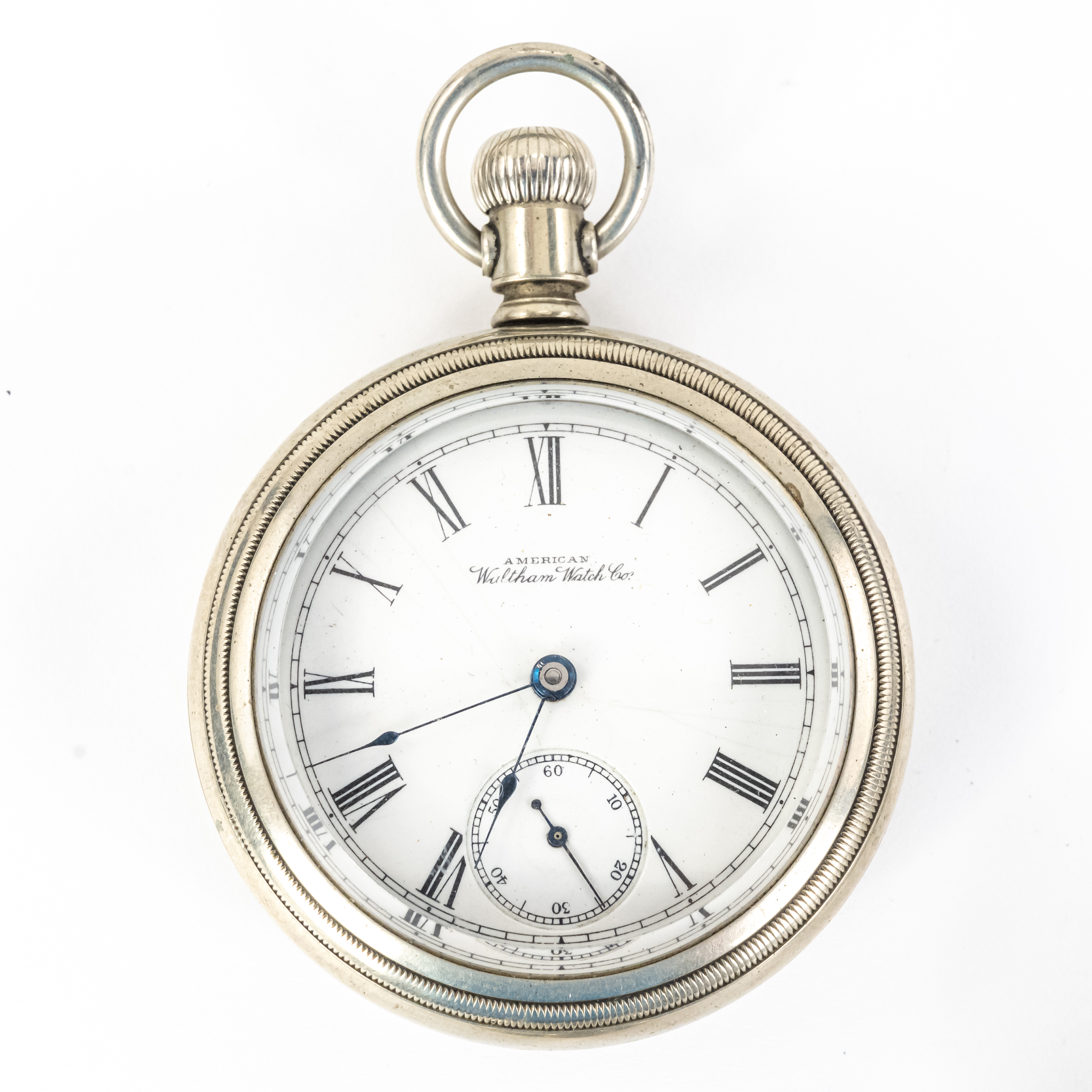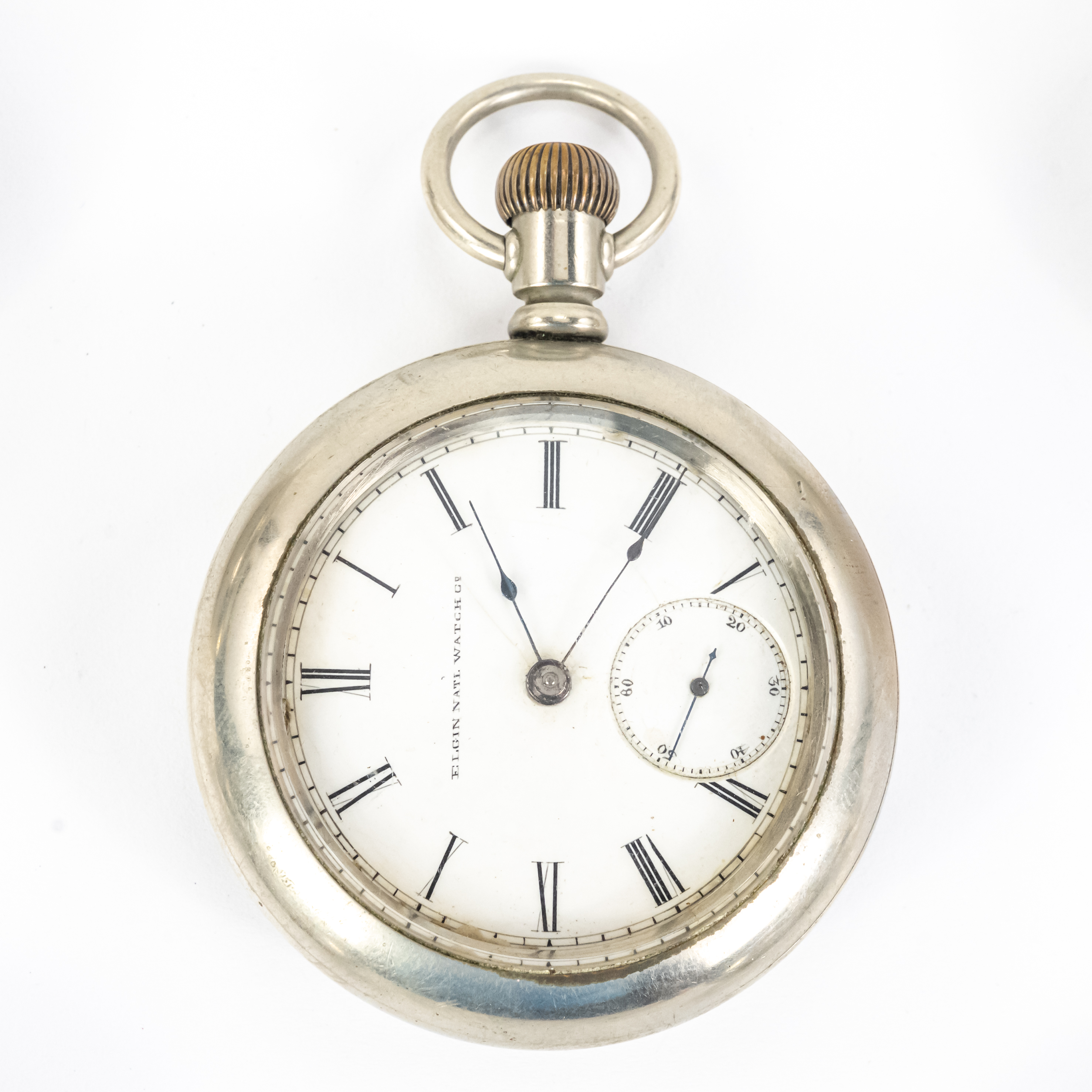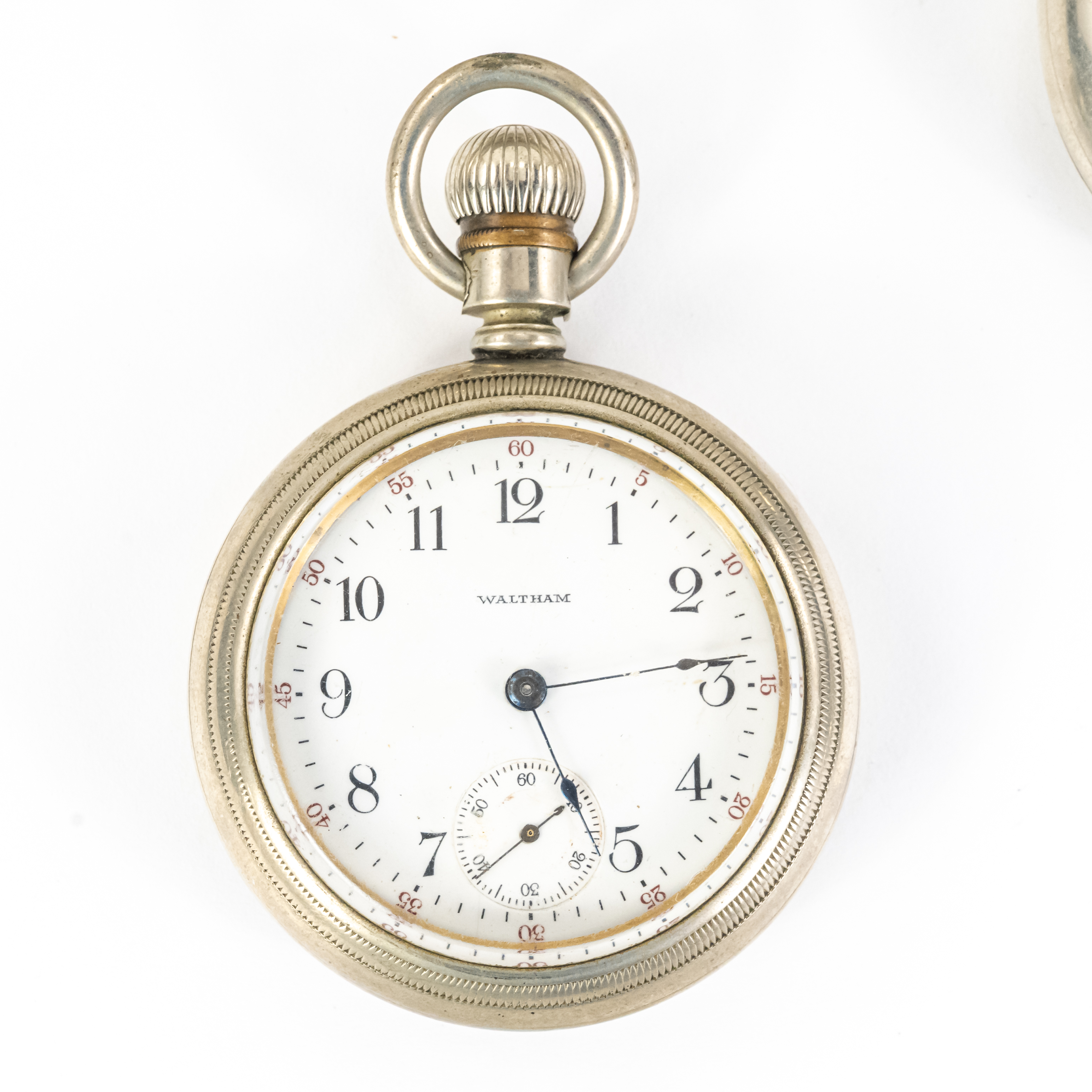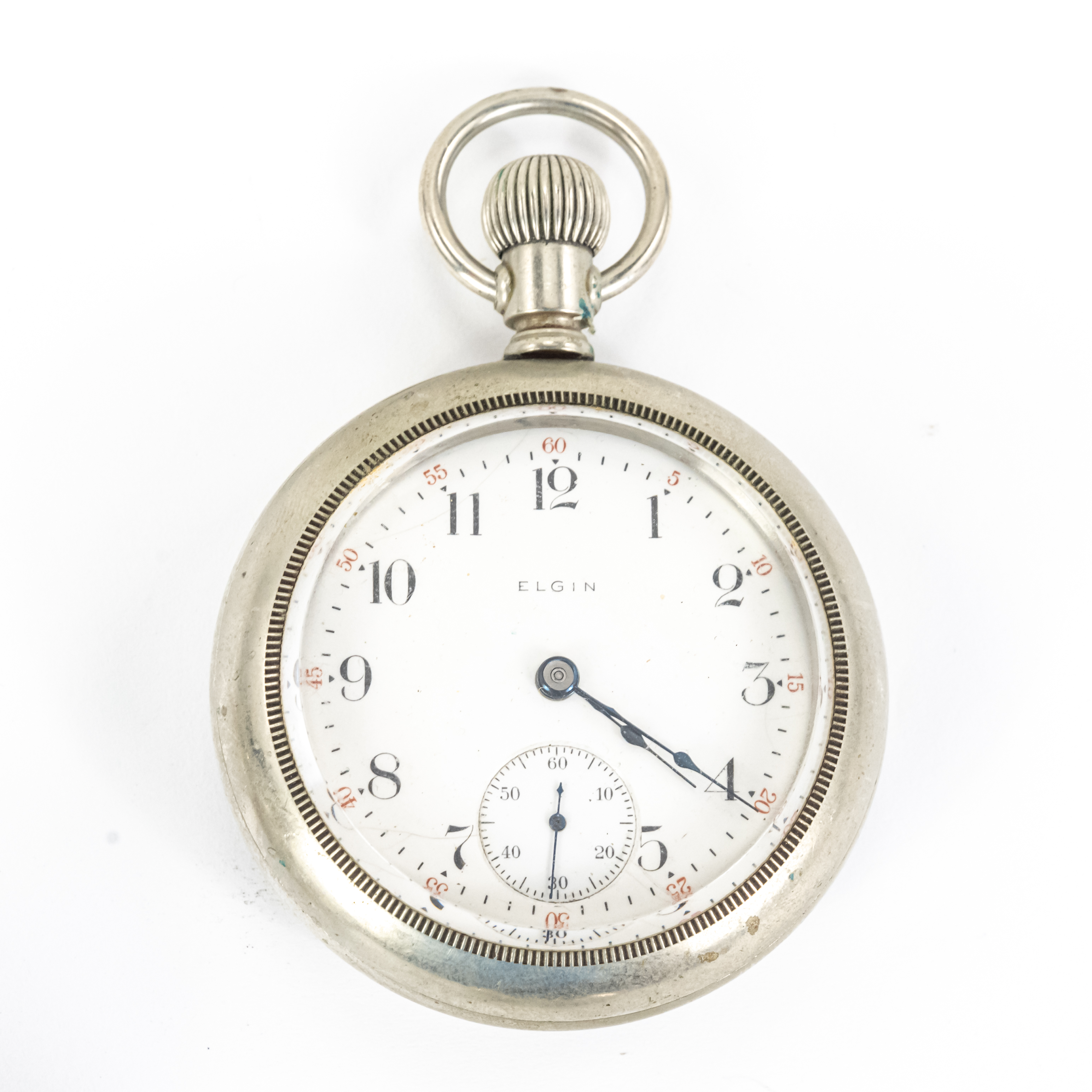 Collection of (5) assorted vintage silver tone open faced Men’s pocket watches manufacturers including Elgin, Elgin National, Edgemere, American Waltham & Waltham. Perfect additions to your collection, assorted conditions please use photos to judge condition and bid accordingly.