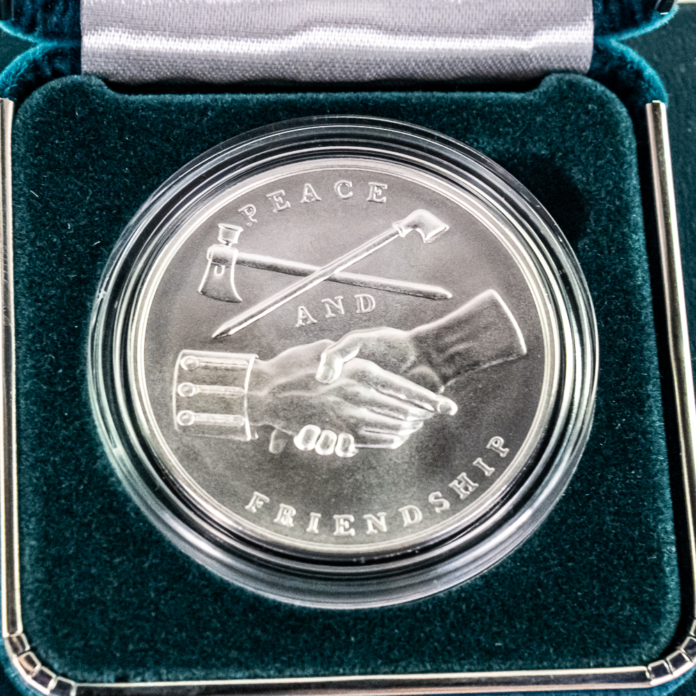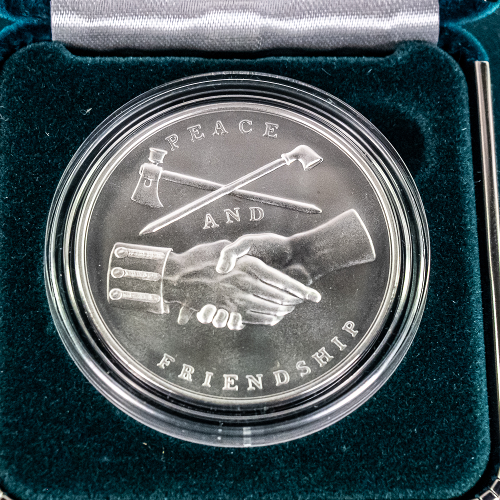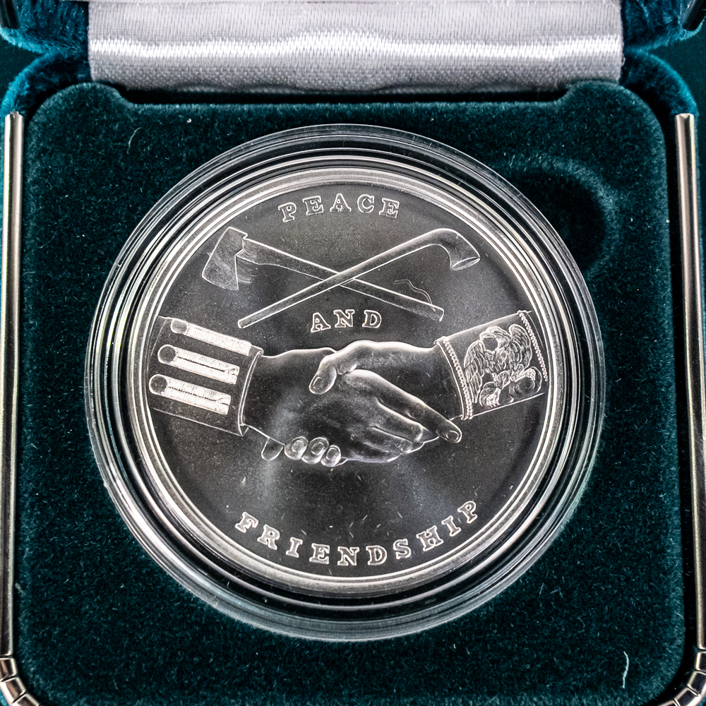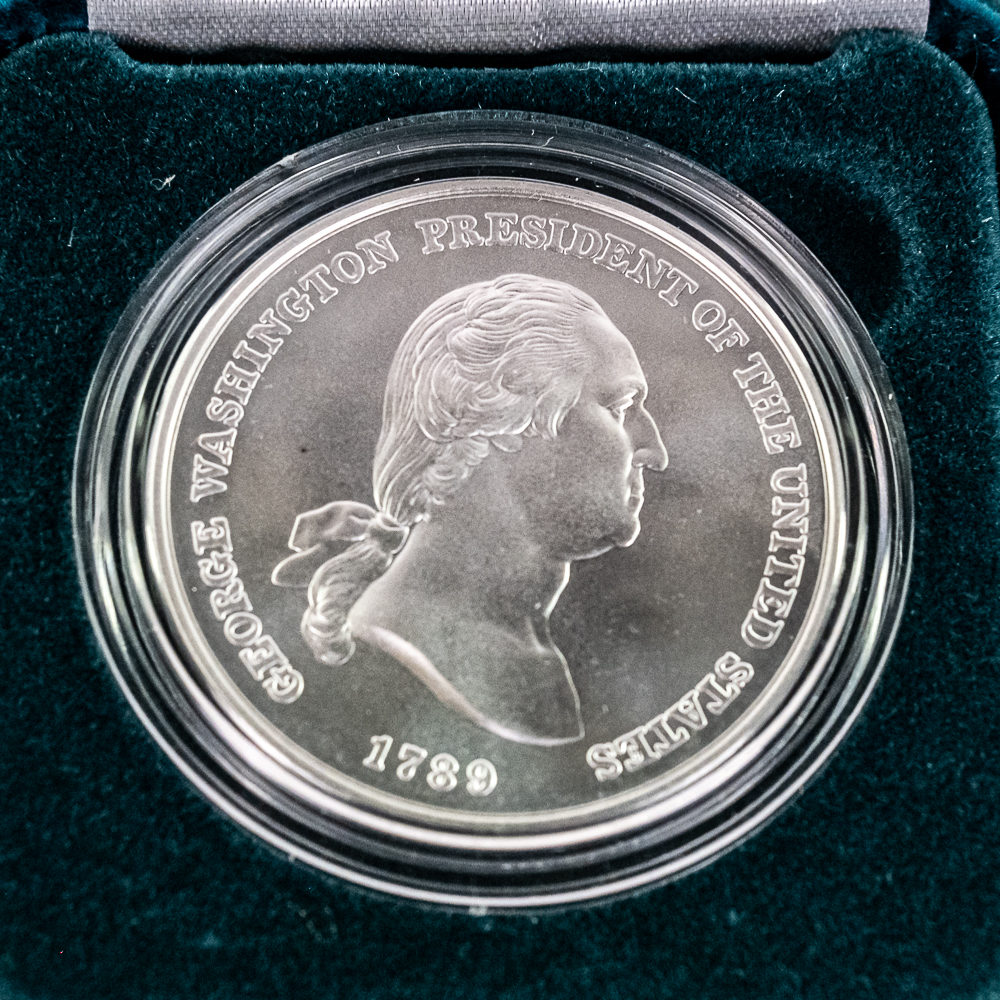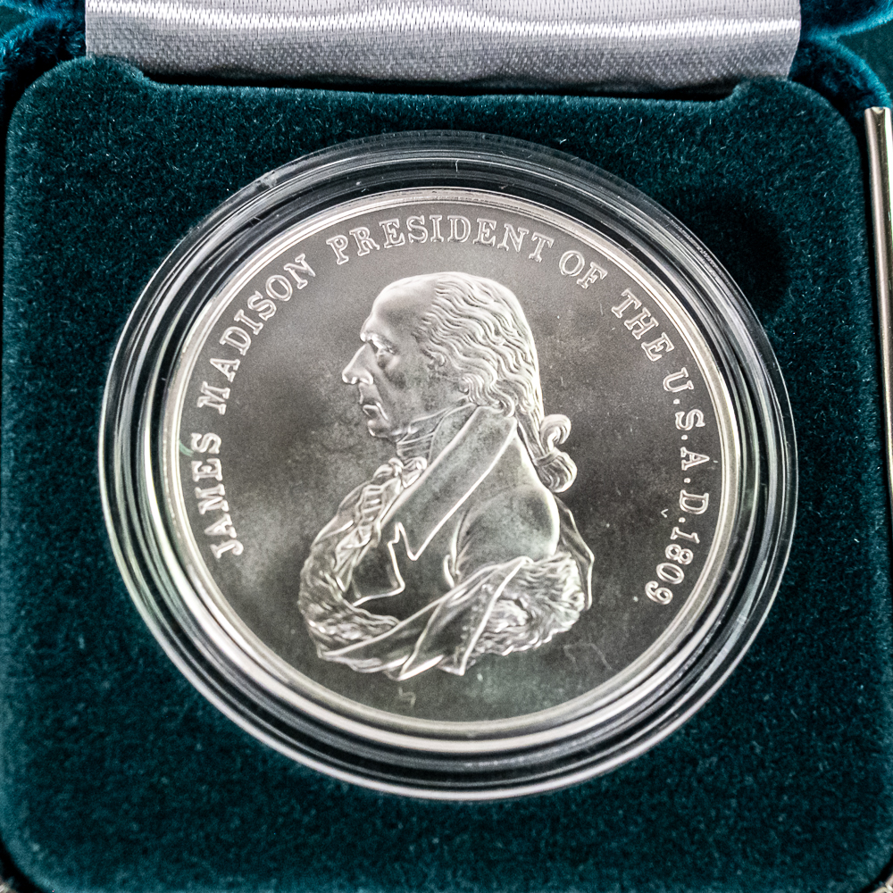 Collection of (5) assorted United States Mint Presidential Silver Medals including George Washington, John Adams, John Quincy Adams,Thomas Jefferson & James Madison uncirculated Commemorative Silver Medals; each still showcased inside original governmental packaging. Perfect addition to your collection, please use photos to judge condition and bid accordingly.