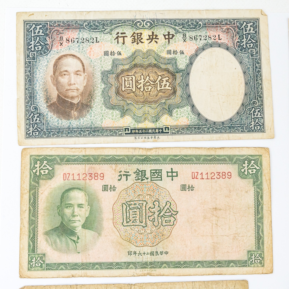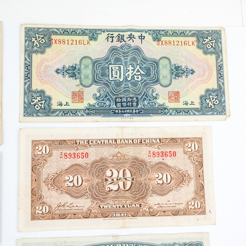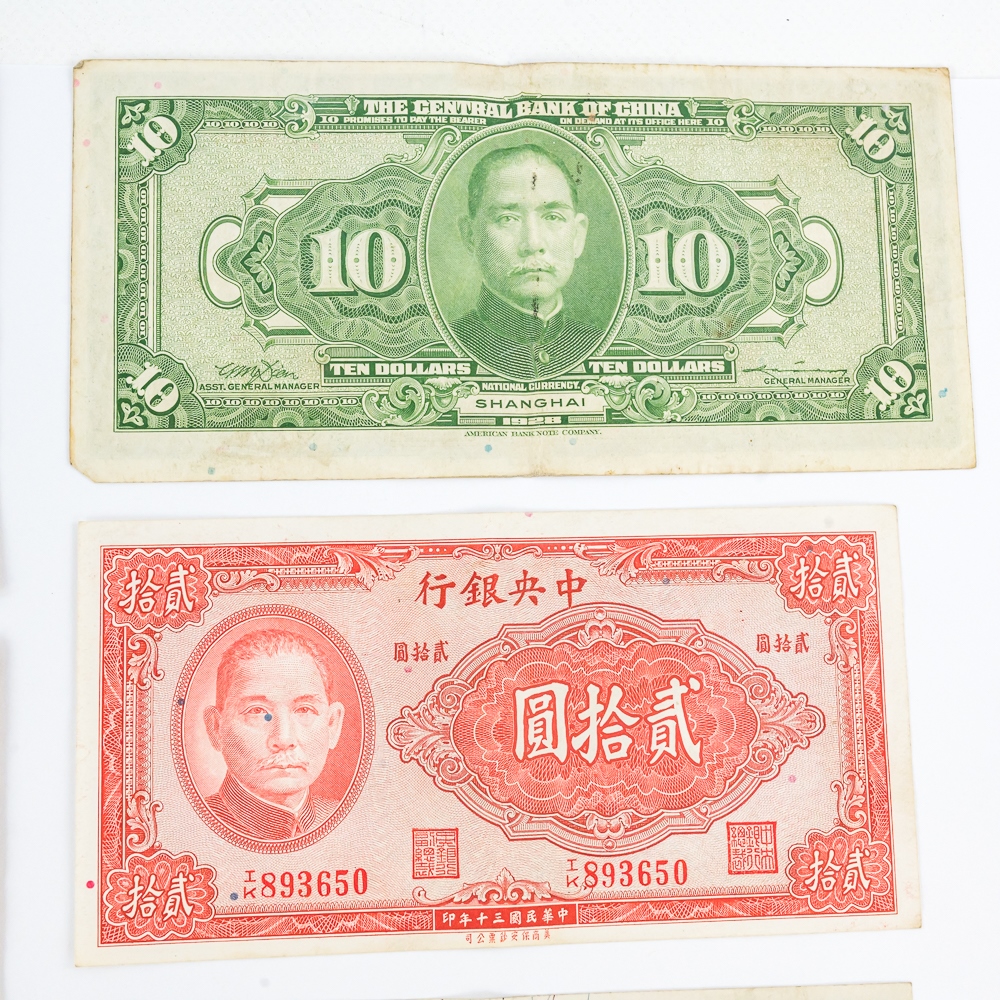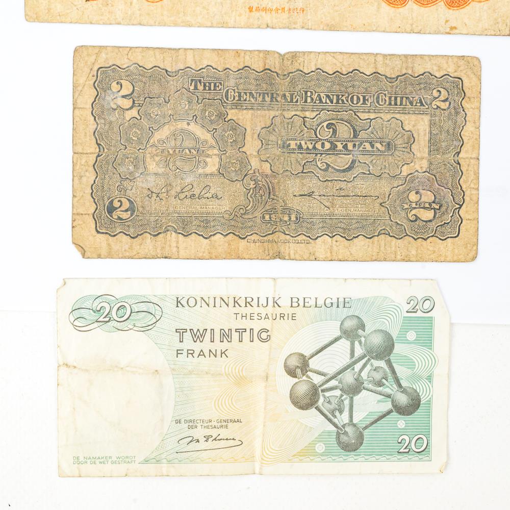 Nice collection of various foreign collector bills including 1936 50 Yuan, 1942 Farmers Bank of China 10 Yuan, 1928 Central Bank of China 10 Yuan, 1964 Vingt 20 Franc and many others. Please use photos to judge condition and bid accordingly.