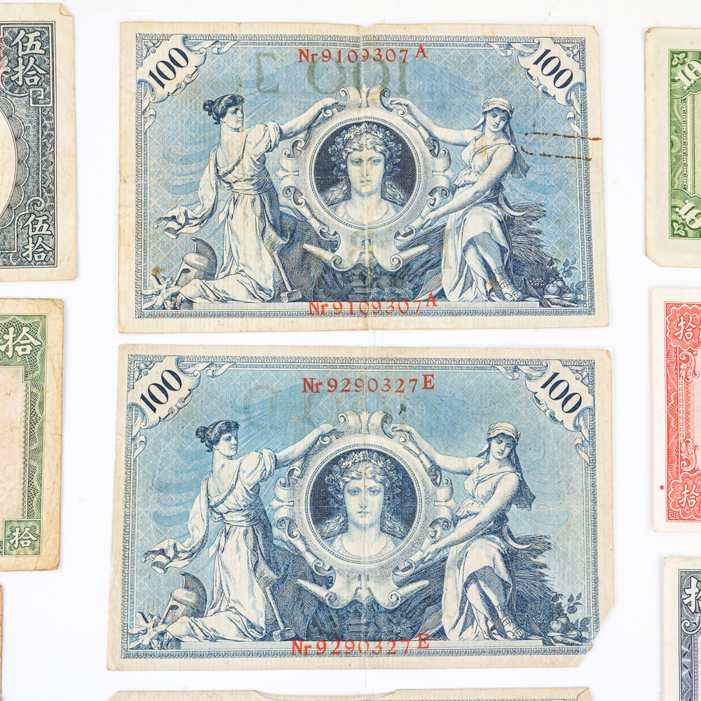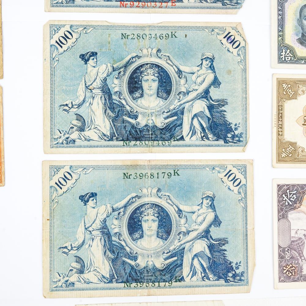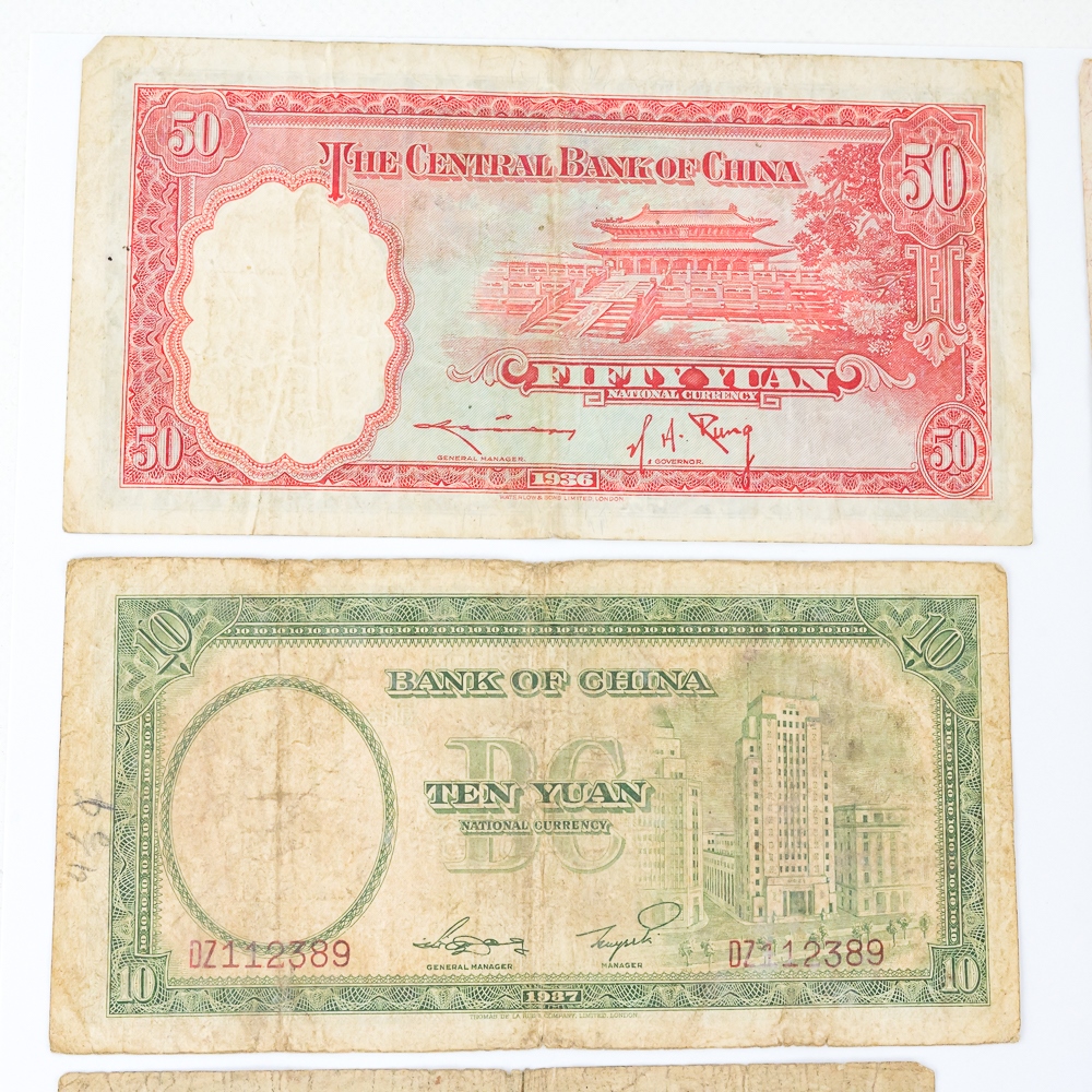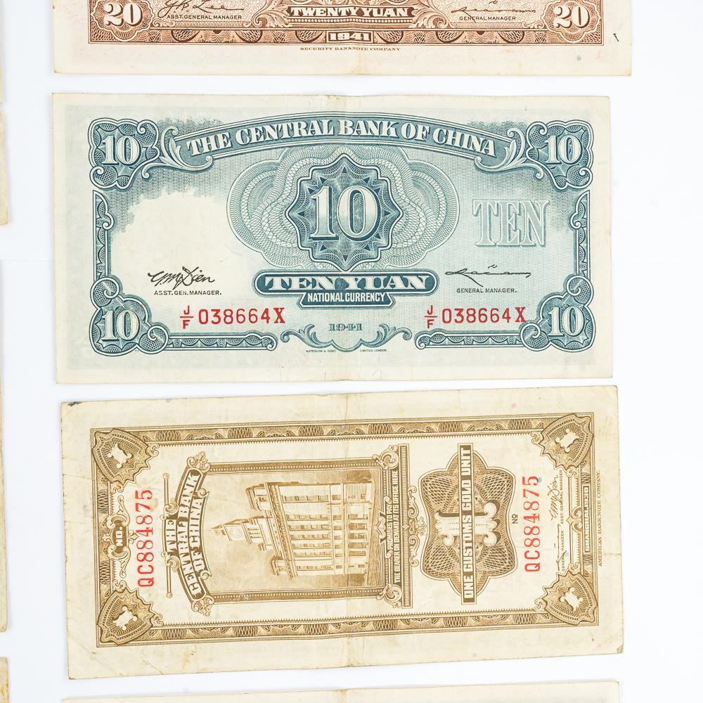 Nice collection of various foreign collector bills including 1936 50 Yuan, 1942 Farmers Bank of China 10 Yuan, 1928 Central Bank of China 10 Yuan, 1964 Vingt 20 Franc and many others. Please use photos to judge condition and bid accordingly.