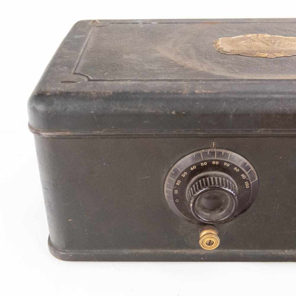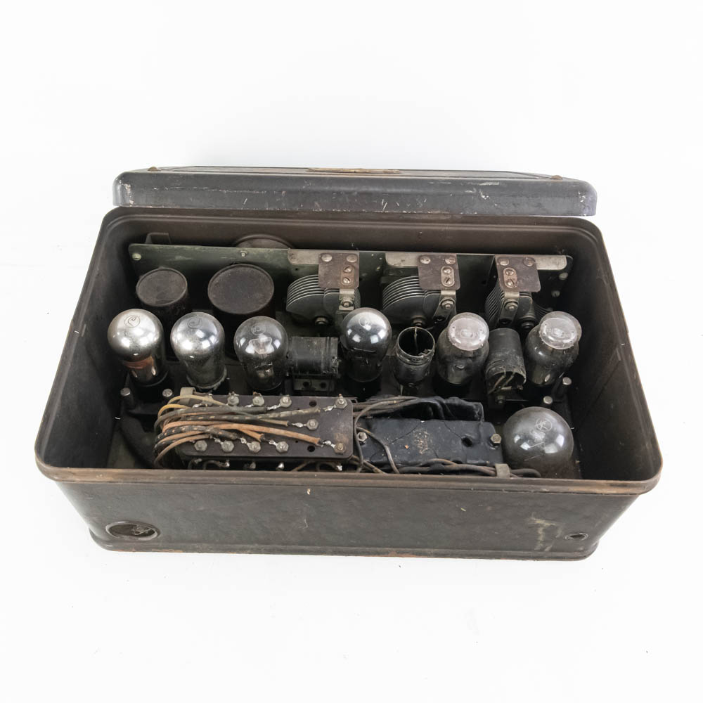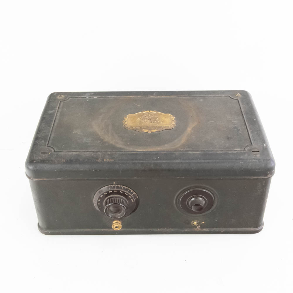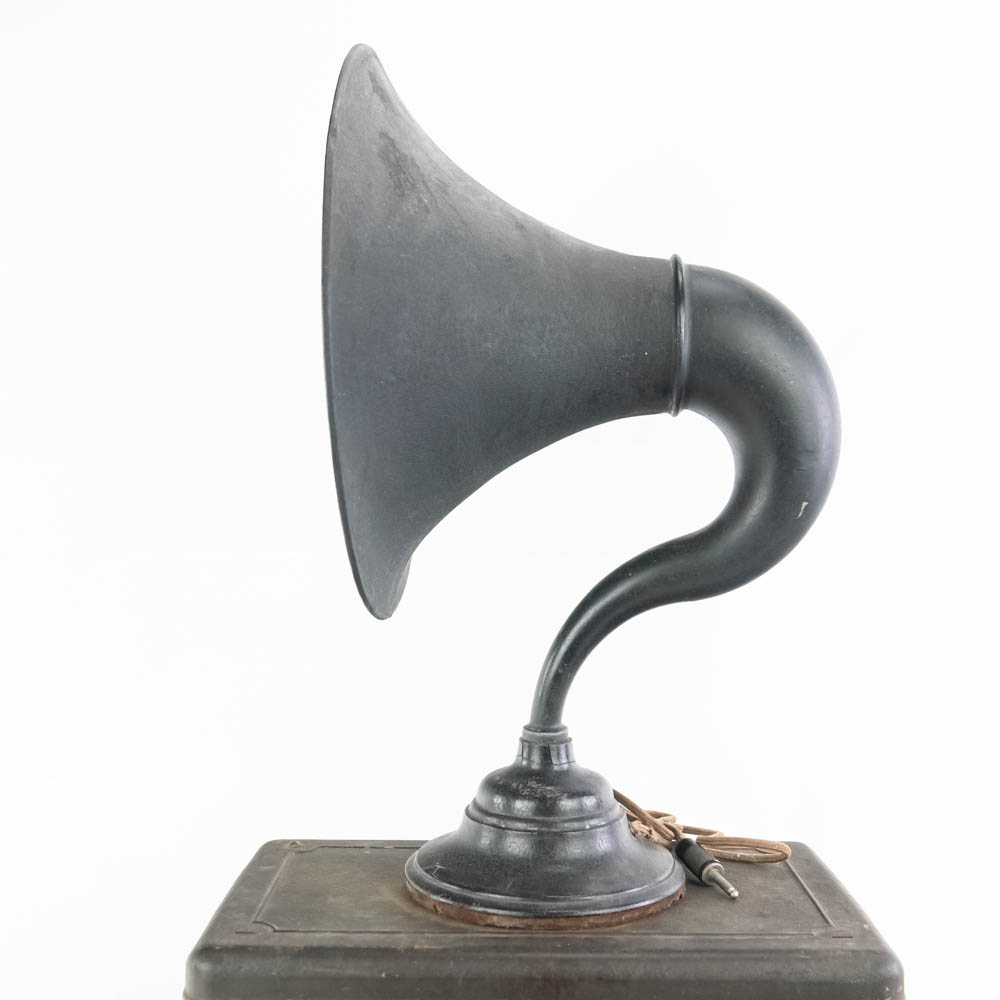 1920s Atwater Kent model 40 “breadbox” tube radio; untested dials spin rear wire cut (7″t 10″d x 17.5″l) along with 22.5″t Magnavox horn speaker on base; base shows a couple cracks. Perfect tough of class to your home or office, please use photos to judge condition and bid accordingly.