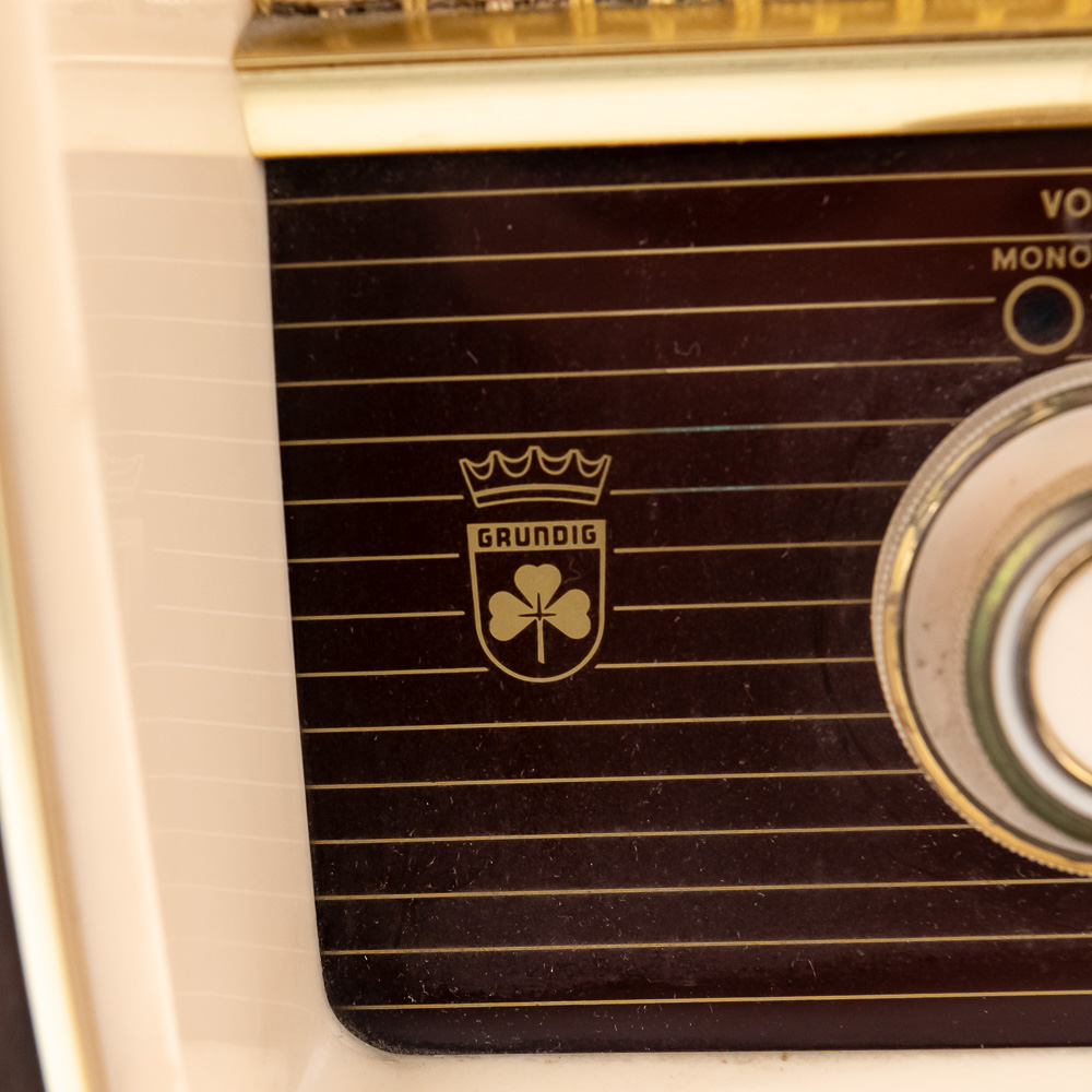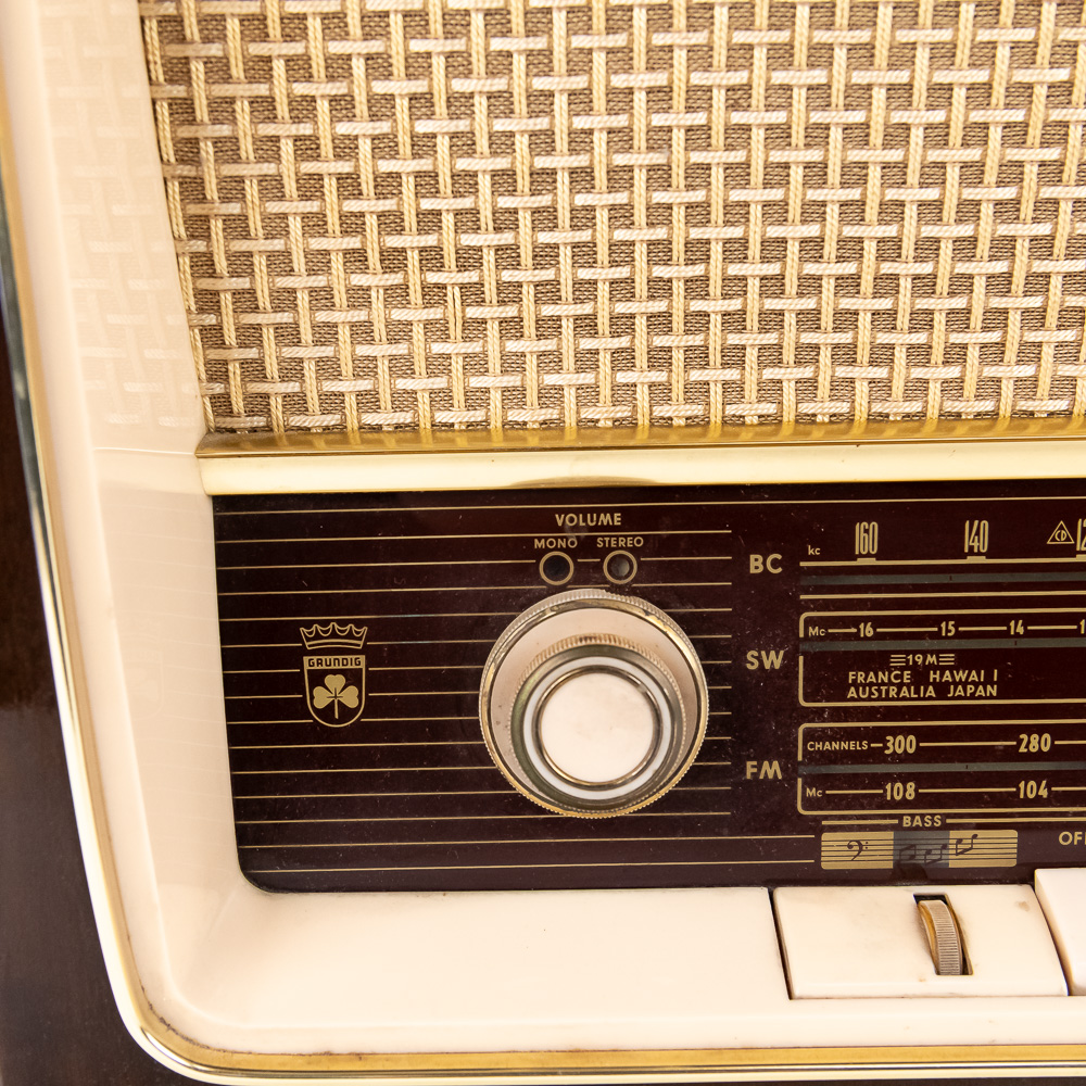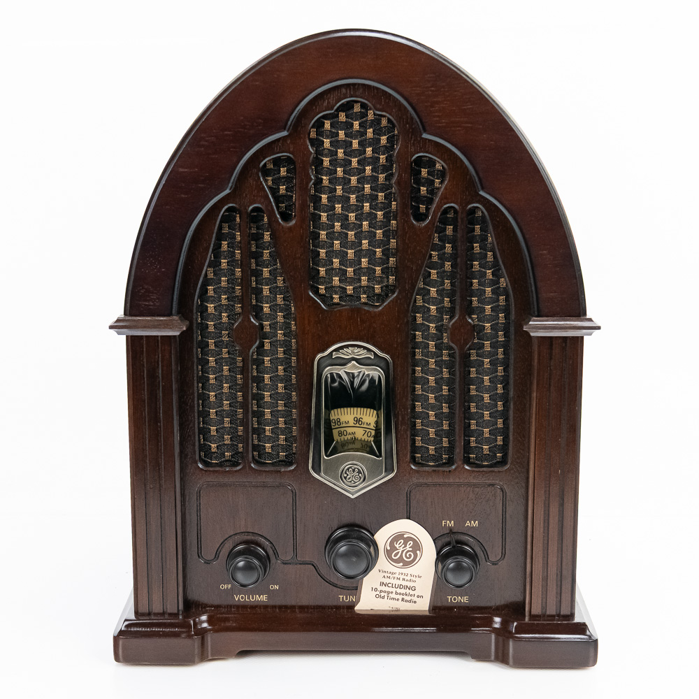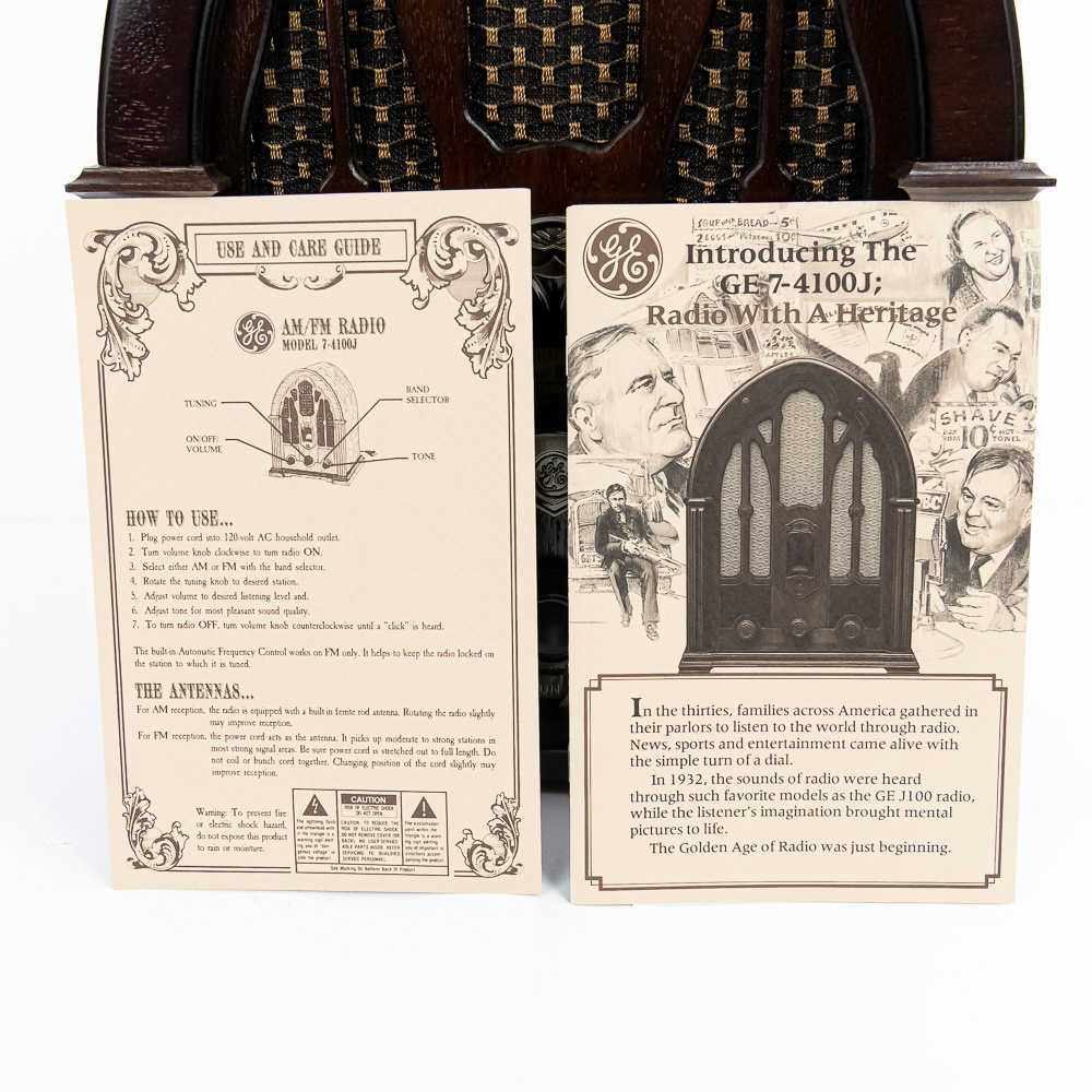 Collection features vintage Grundig 4606 U Stereo (14″ x 9.5″ x 22, some cracks near upper corner) & 1930s inspired 15″ GE 7-4100J AM FM radio with instructions. Very good to good overall condition, perfect additions to your home or office. Please use photos to judge condition and bid accordingly.