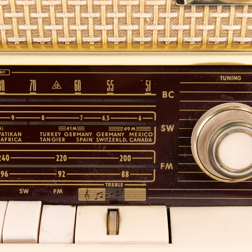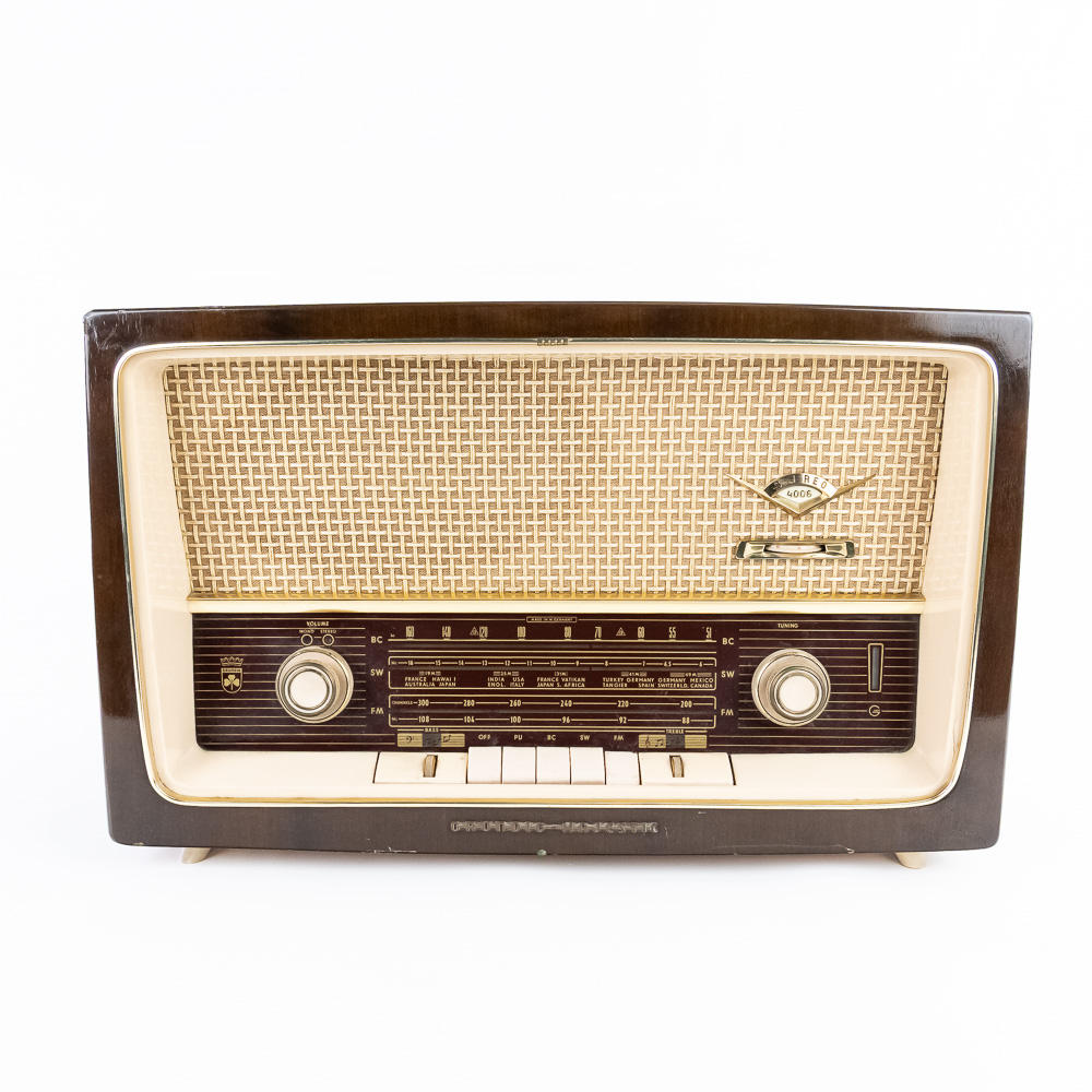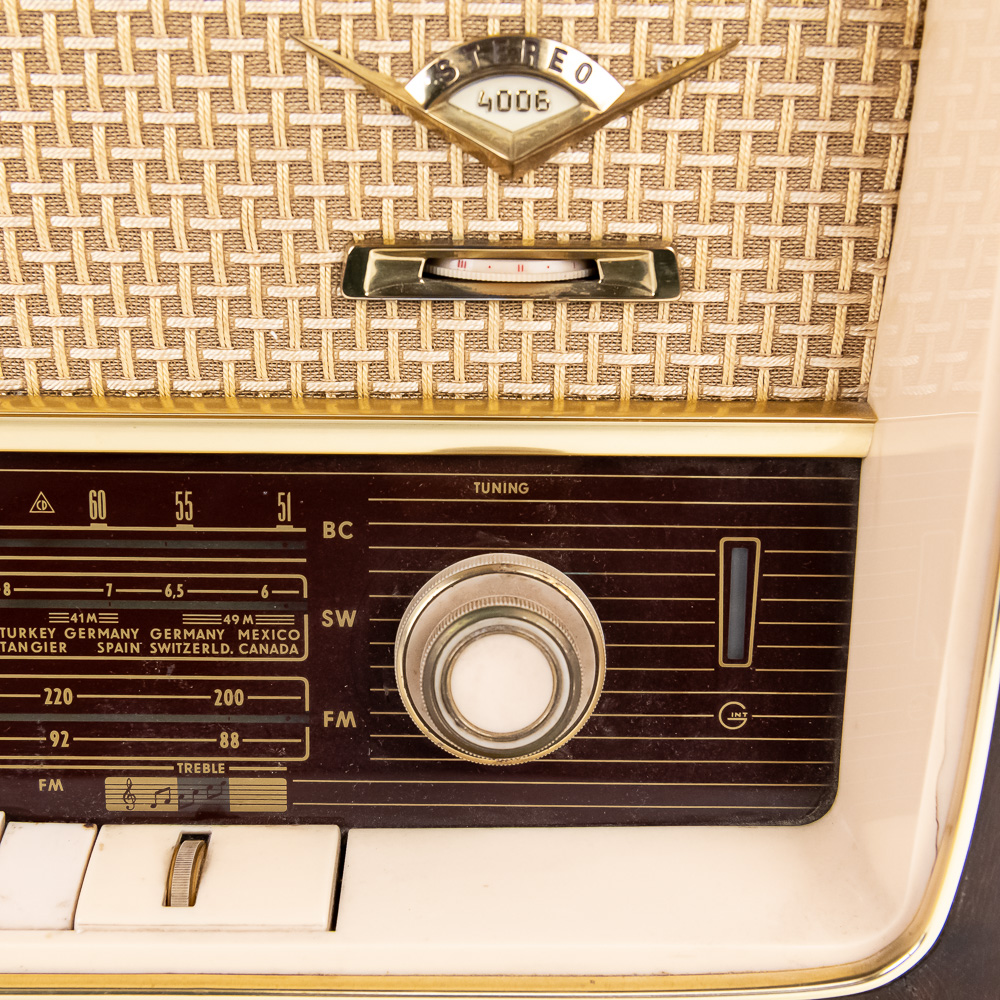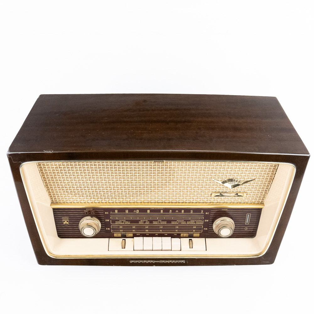 Collection features vintage Grundig 4606 U Stereo (14″ x 9.5″ x 22, some cracks near upper corner) & 1930s inspired 15″ GE 7-4100J AM FM radio with instructions. Very good to good overall condition, perfect additions to your home or office. Please use photos to judge condition and bid accordingly.