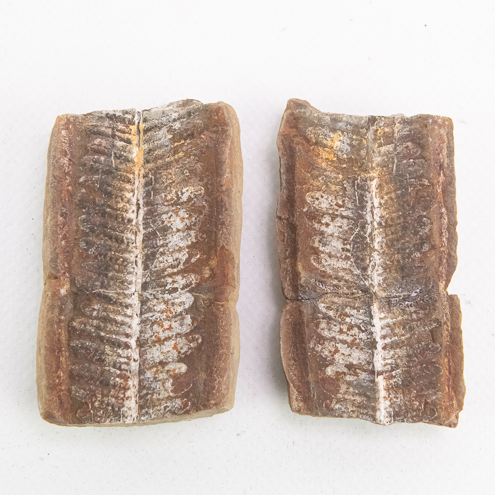 4 leaf fossil fragments from Illinois with the largest measuring 5″ X 3″. See photos. Includes a soft cover book on Leaves and Stem Fossils by Raymond Janssen