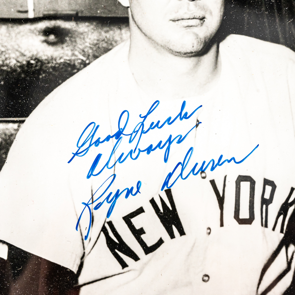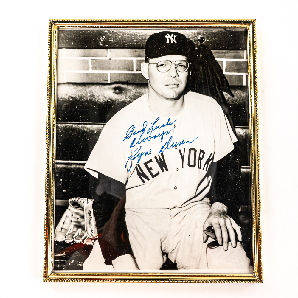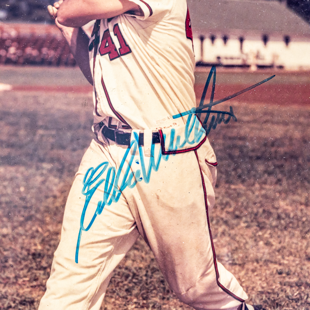 Collection features vintage Milwaukee Braves Eddie Mathews & New York Yankee Ryne Duren autographed photo 8″ x 10″ framed photos along with 1983 Super Bowl Coke Bottle.