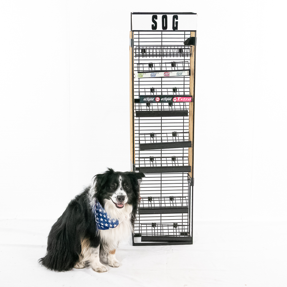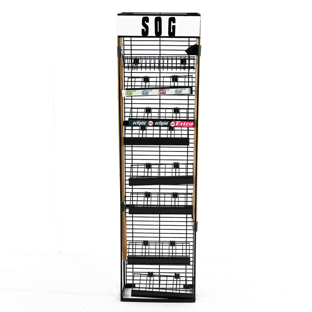 Cleverly re-purposed to display knives. Adjustable shelves. 54″ x 14 1/2″ x 6″
