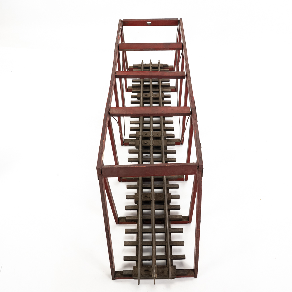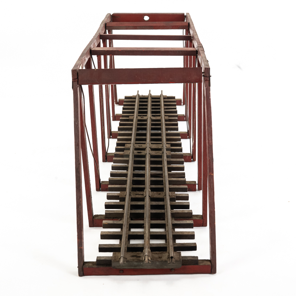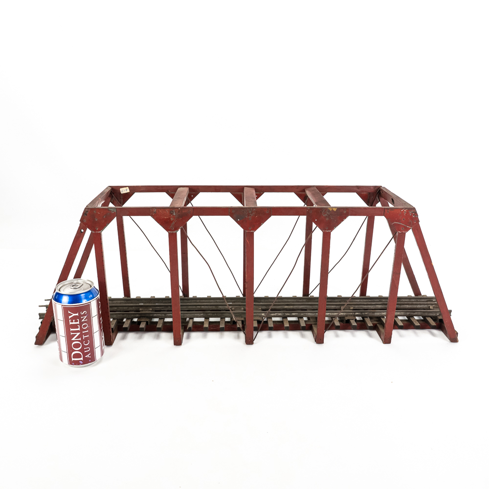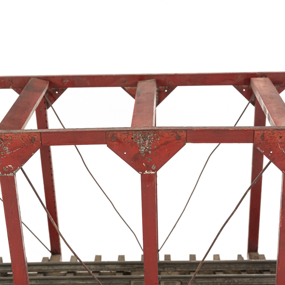 Vintage prewar American Flyer standard O gauge wooden trestle bridge 9″t x 7″w x 28″l. Good overall condition with age and wear. Missing American Flyer name plate, minor paint loss & oxidation. Perfect addition to your layout, please use photos to judge condition and bid accordingly.