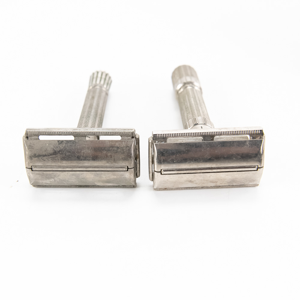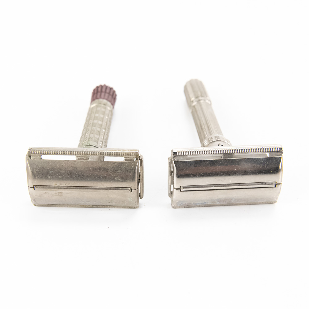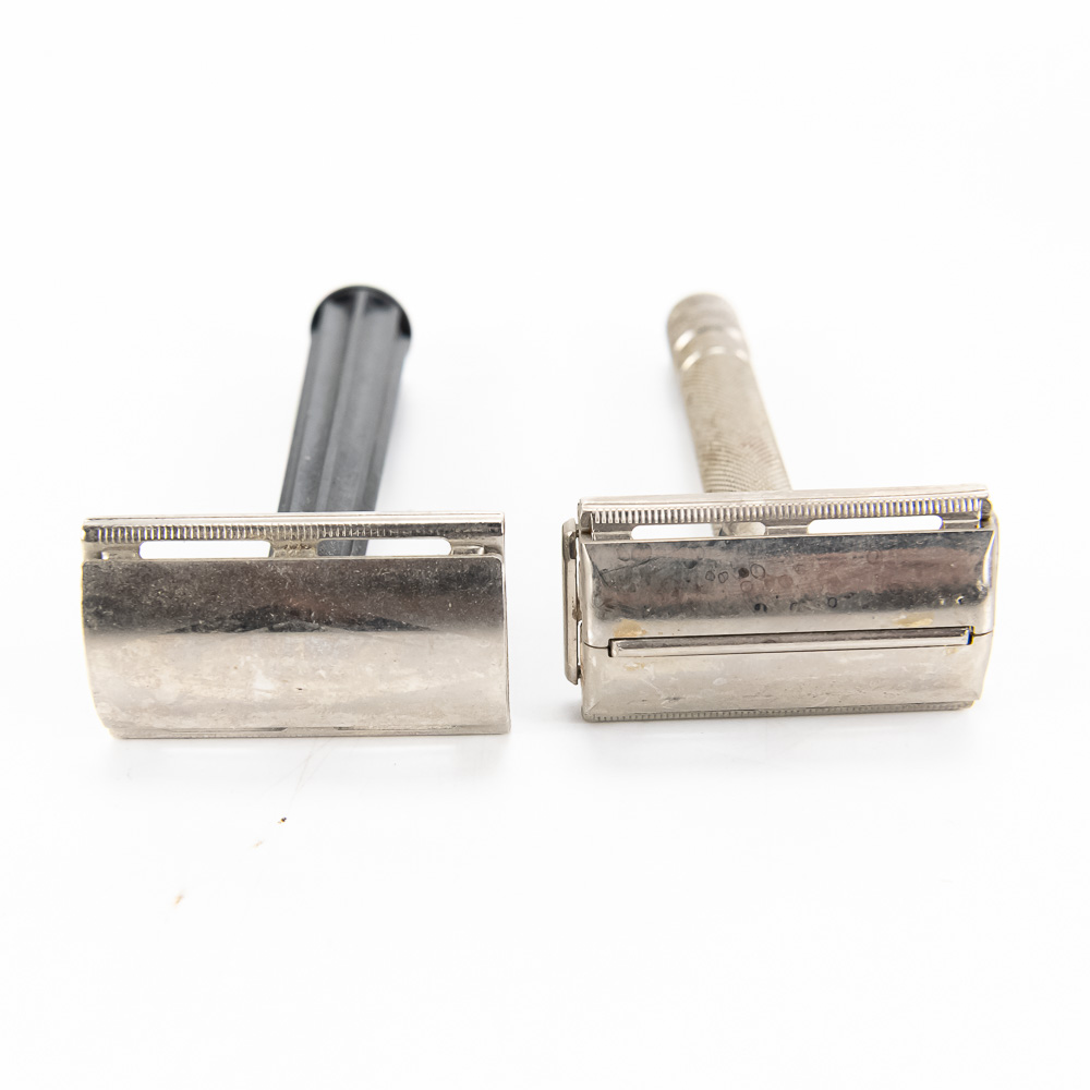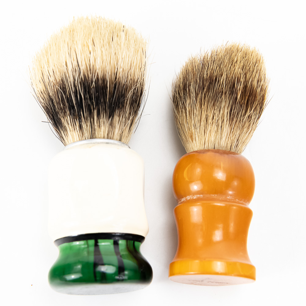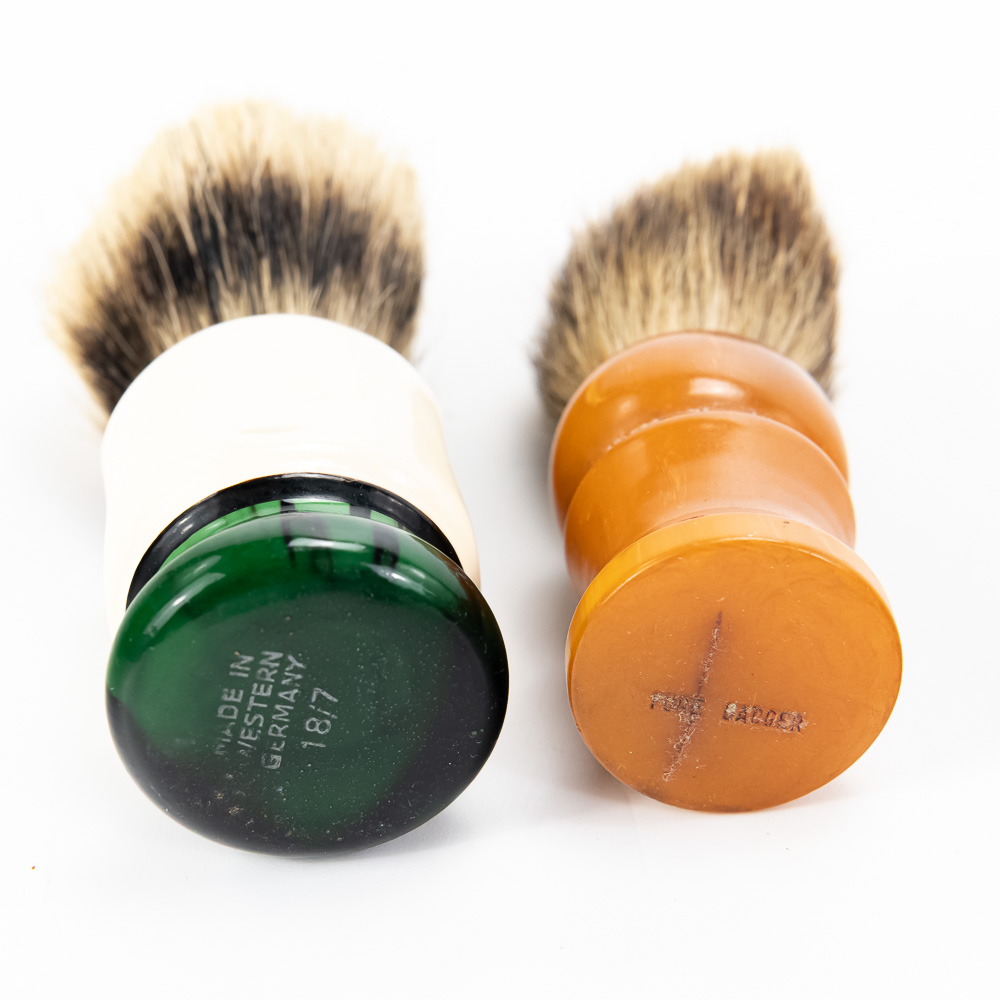 Vintage assortment of shaving related items featuring vintage razors, shaving cream brushes, razors many new in original box and “The New Gillette” razor with wood box and cardboard box (tattered missing a edge). Lots of fun, perfect addition to your collection, please use photos to judge condition and bid accordingly.