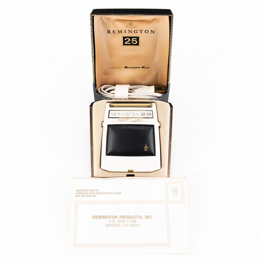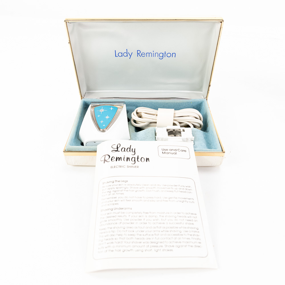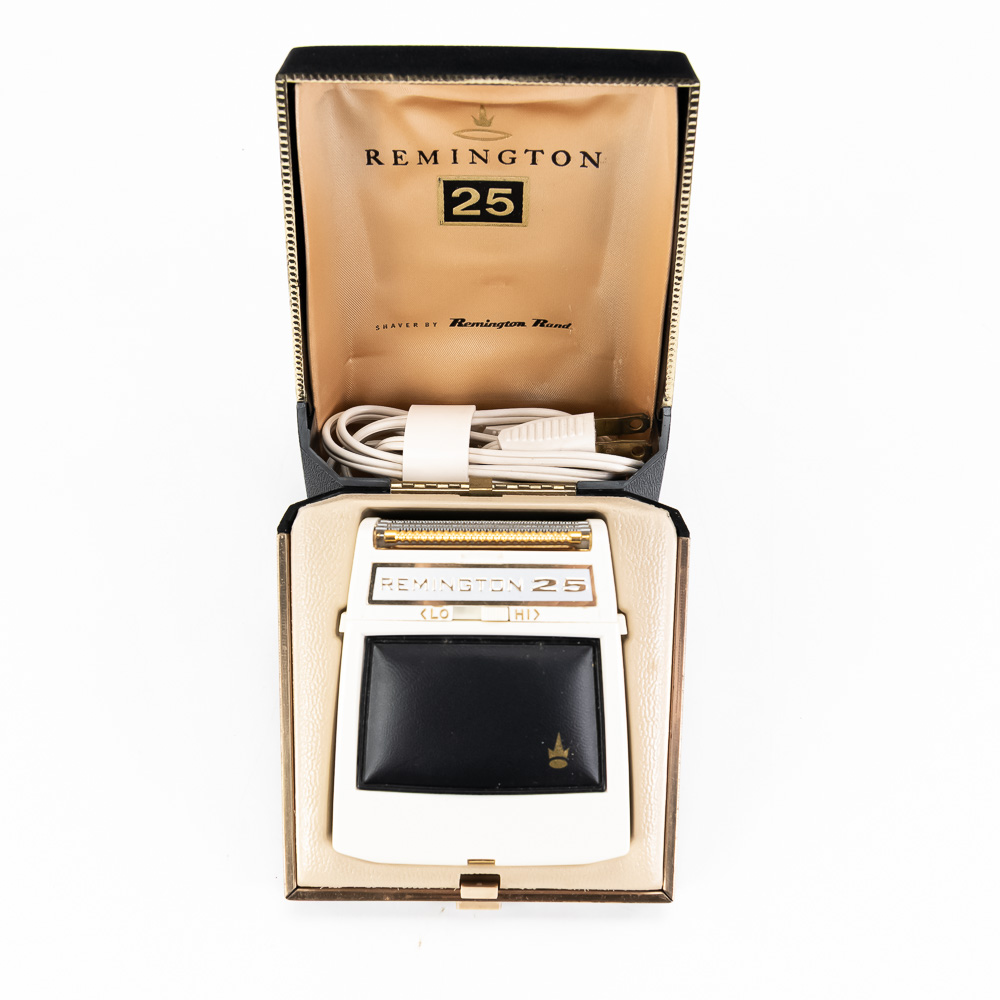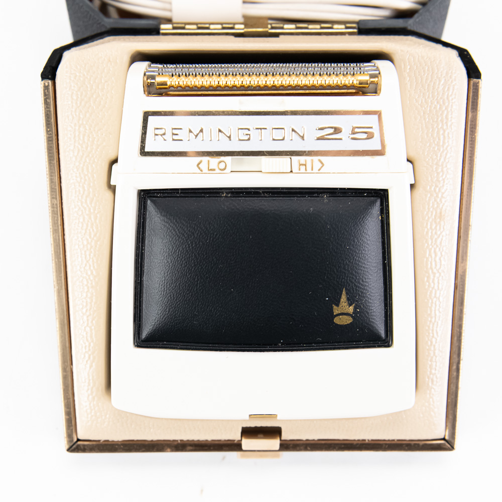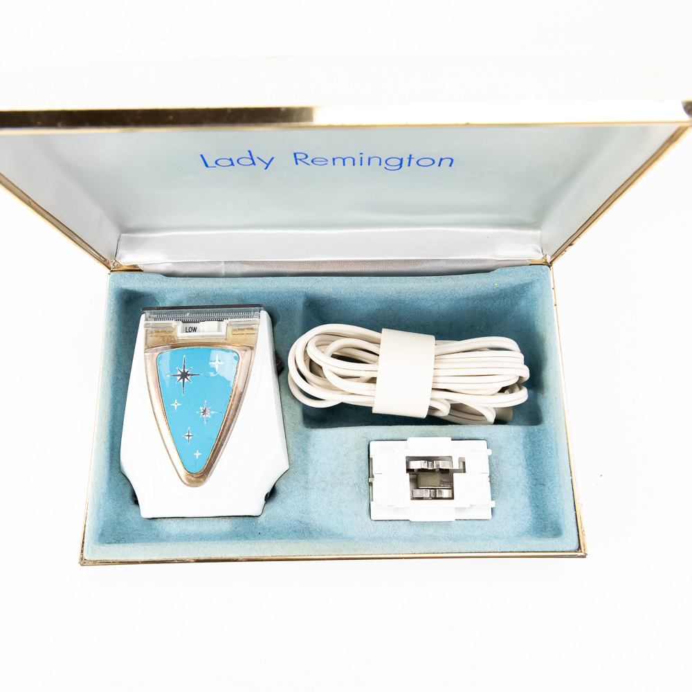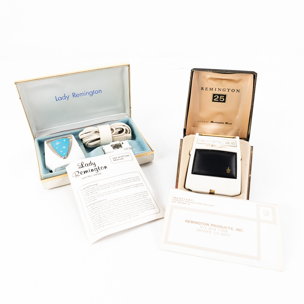 Shaving assortment includes like new Remington 25 & Lady Remington vintage electrical shavers both still featured inside original packaging. Perfect addition to your collection, please use photos to judge condition and bid accordingly.
