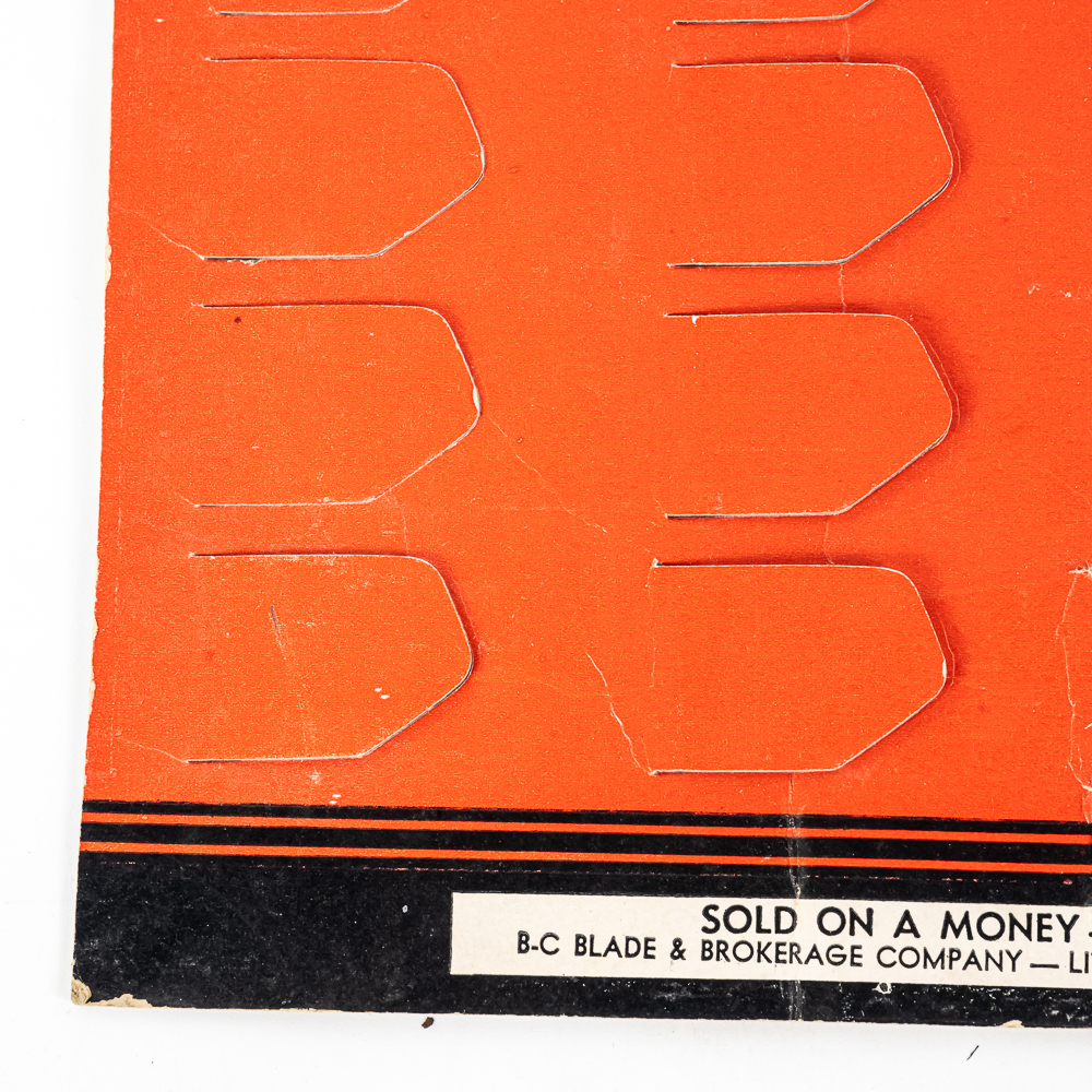 Vintage B-C Blade Razor Blade Display, Little Rock, AK, does NOT come with any blade boxes, good condition, shows minor wear, see photos, 10″ x 12 1/2″