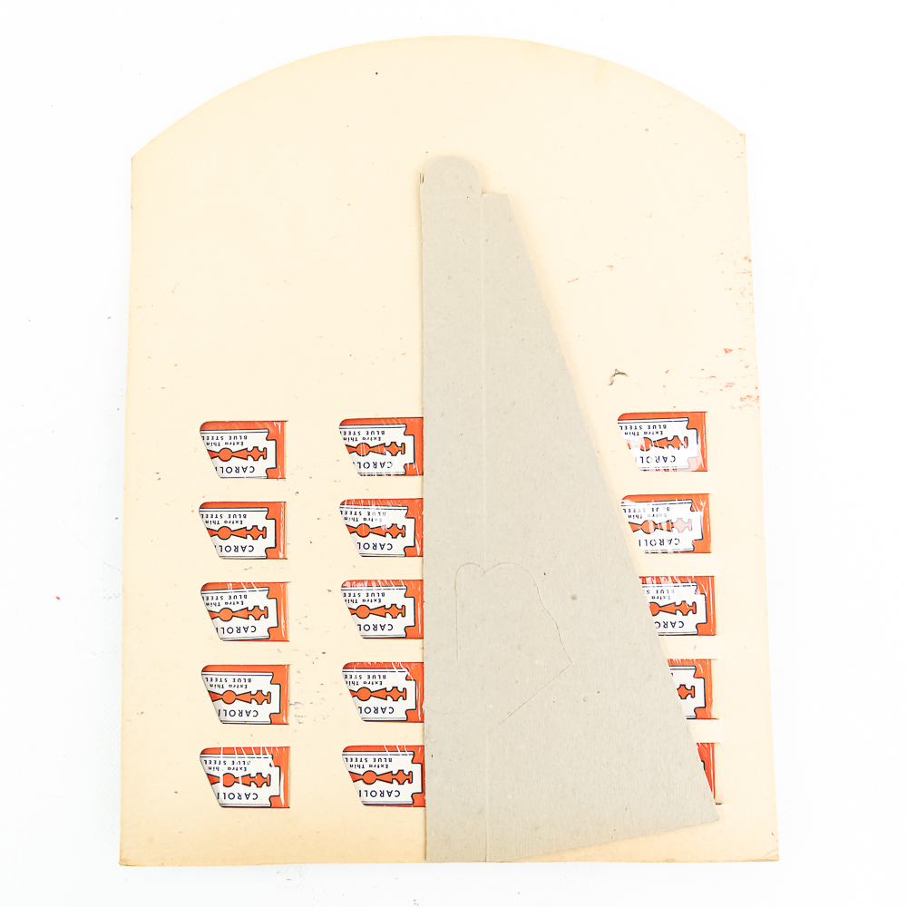 Vintage Carolina Razor Blade Display, Darlington, SC, comes with 20 blade boxes, good condition, see photos, 10 1/2″ x 13 3/4″