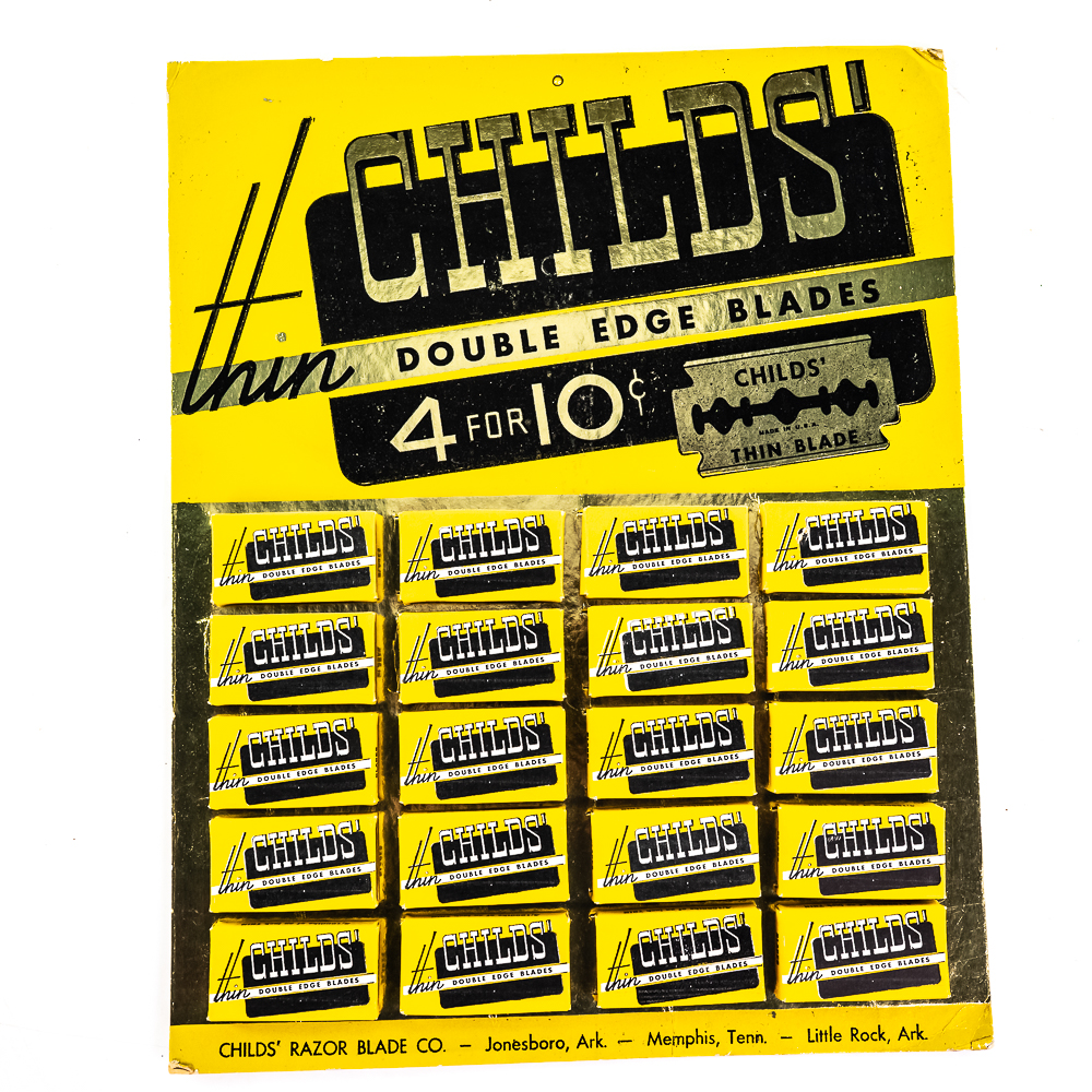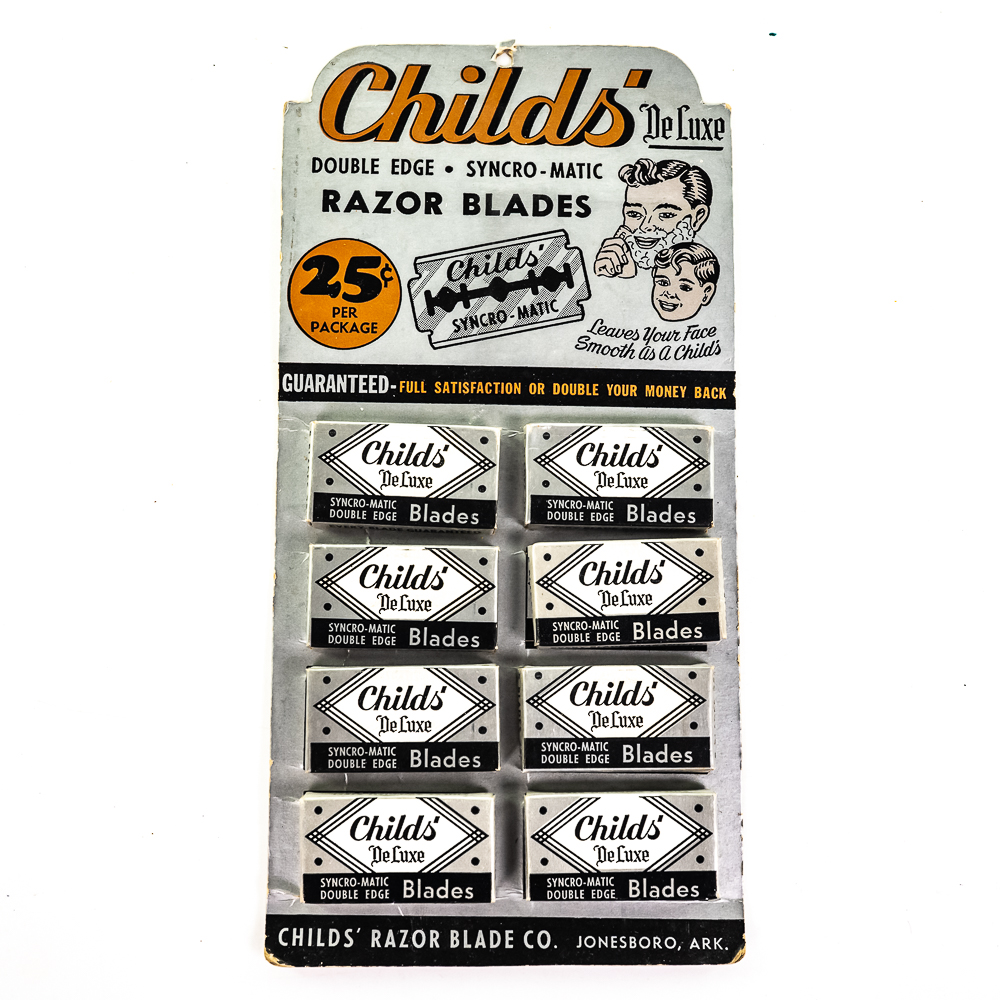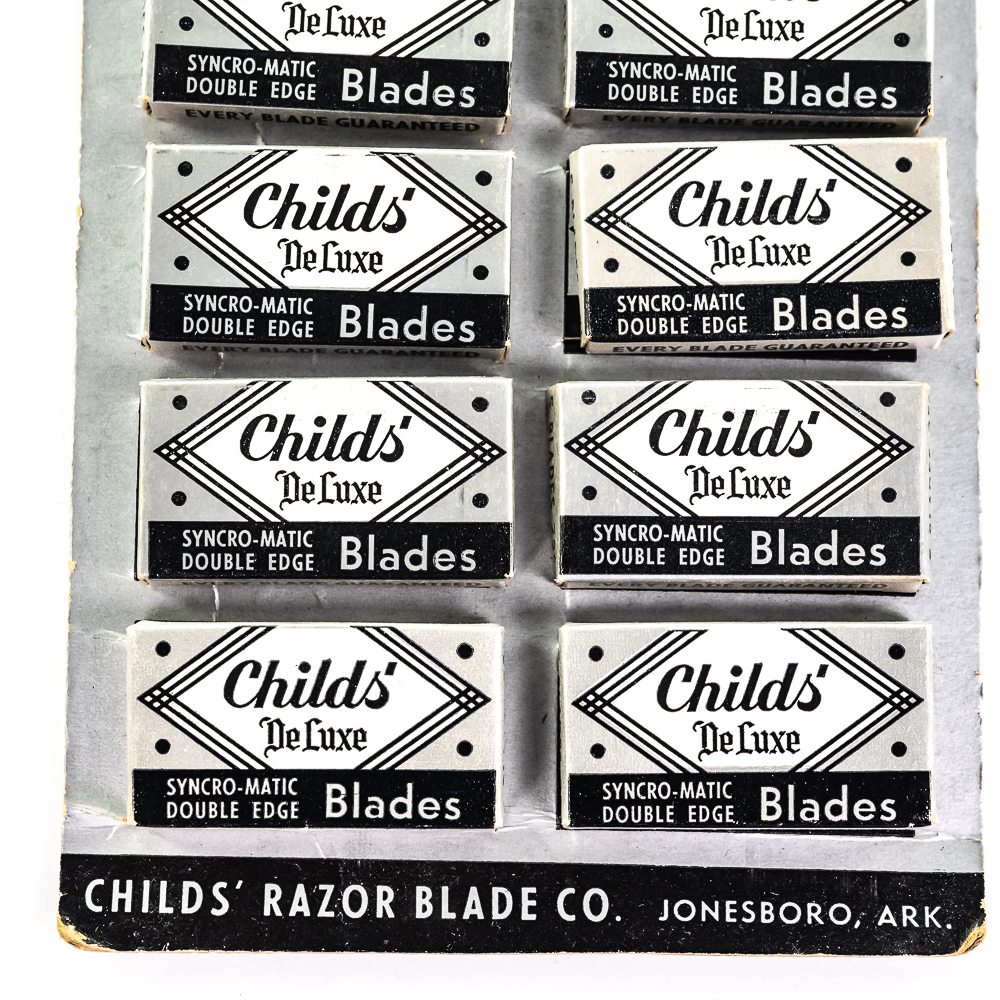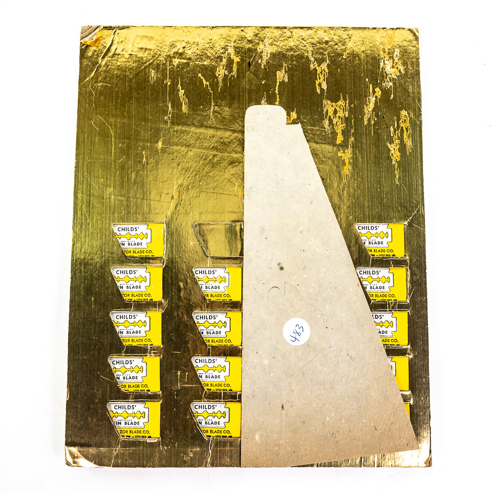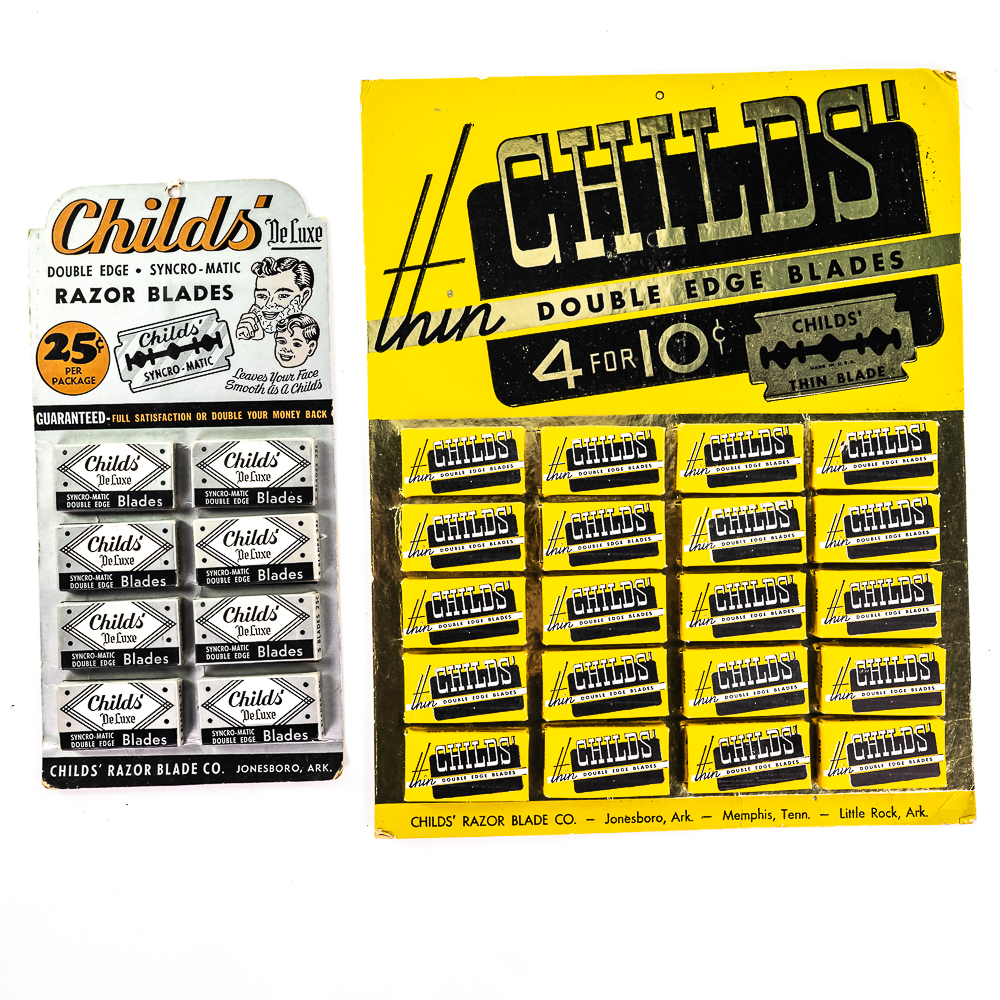 (2) Vintage Child’s Razor Blade Displays, Little Rock, AR, comes with 20 blade boxes, second one “DeLuxe” comes with 8 blade boxes, both show minor wear along edges, good condition, see photos, 10″ x 12 1/2″ and 5″ x 10″