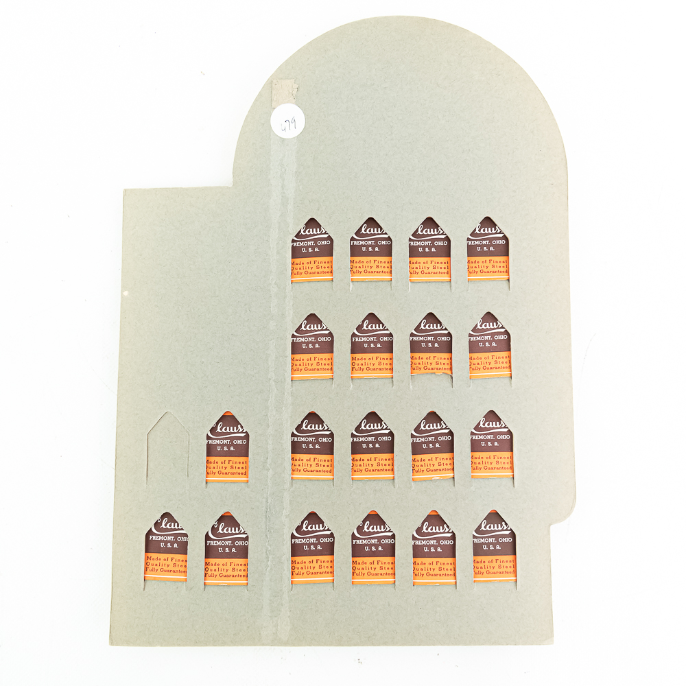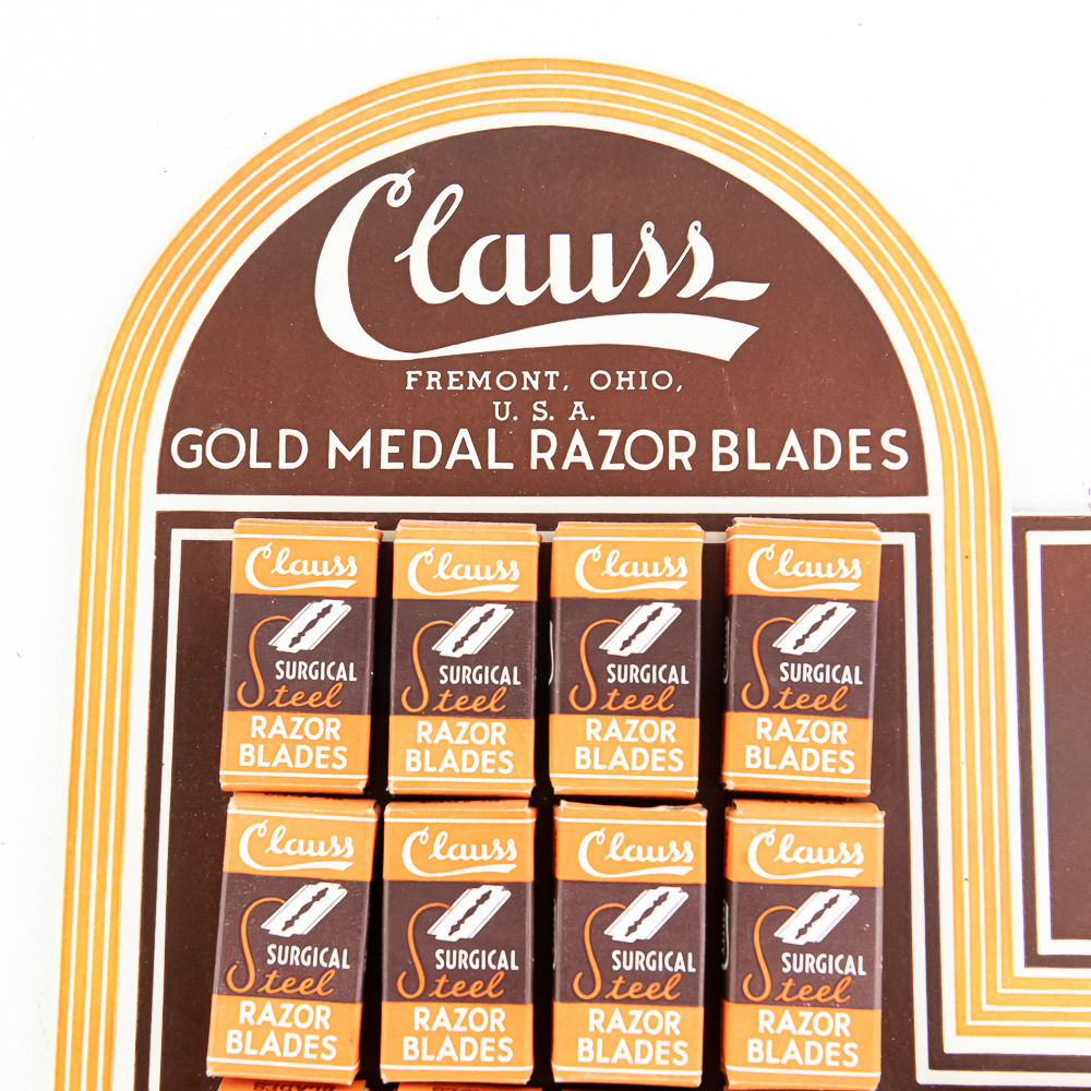 Vintage Clauss Razor Blade Display, Fremont, OH, comes with 20 blade boxes, good condition, see photos, 9 3/4″ x 13 1/2″